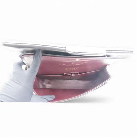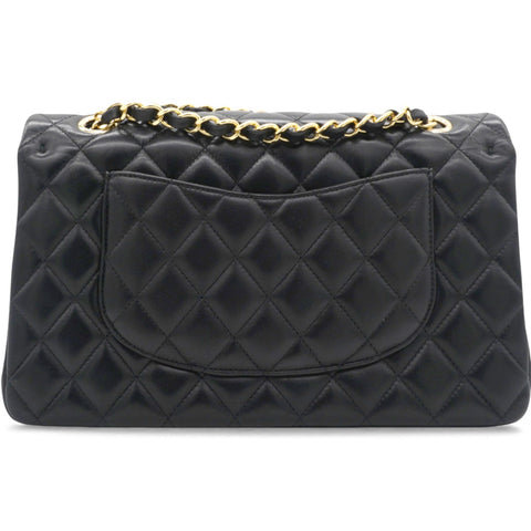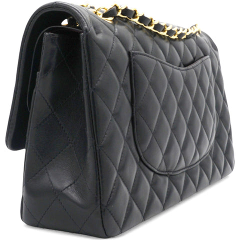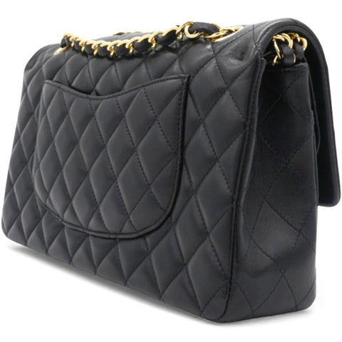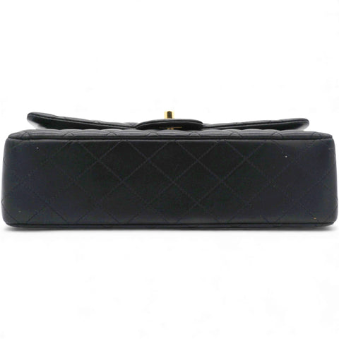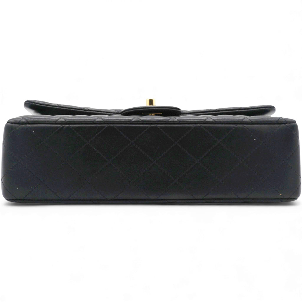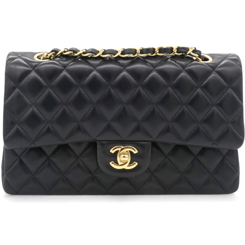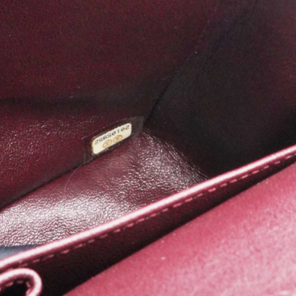 | This classic shoulder bag is crafted from black diamond-quilted lambskin leather, complemented by elegant gold-tone hardware. The front flap opens to reveal a rich burgundy leather interior, offering a timeless and luxurious finish. |