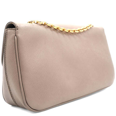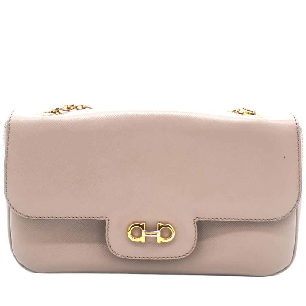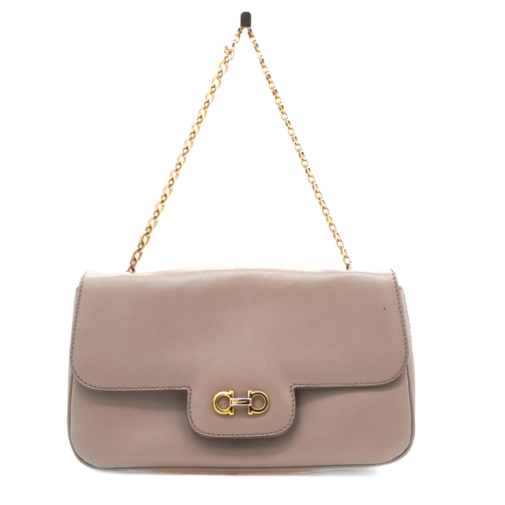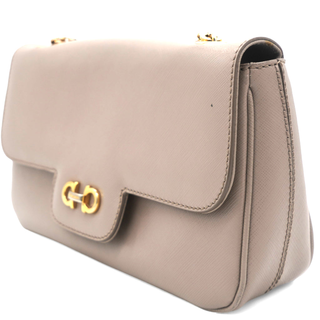 Metallic Beige Leather Gancini Flap Bag