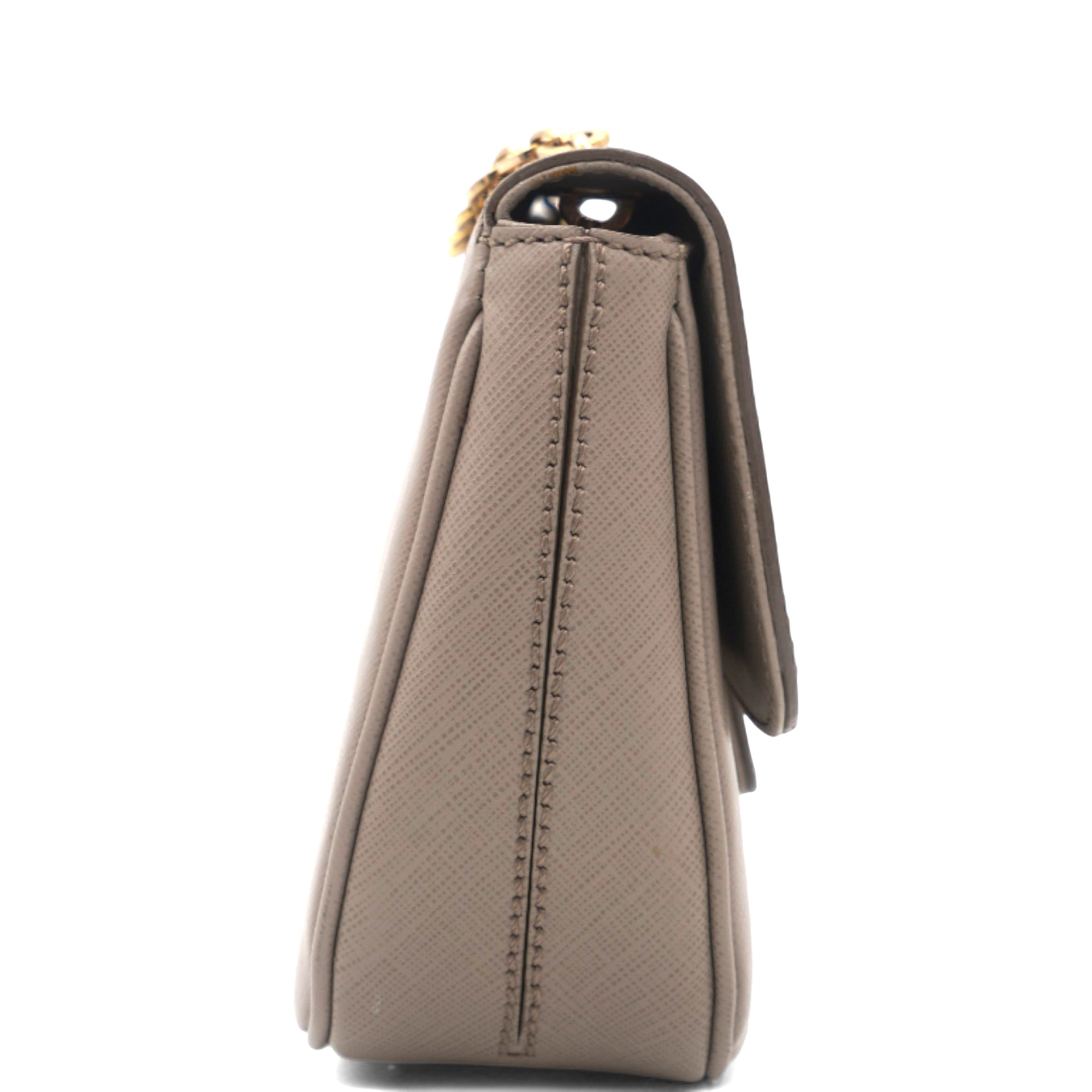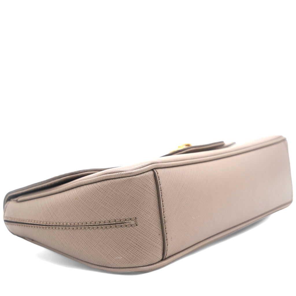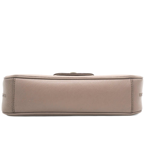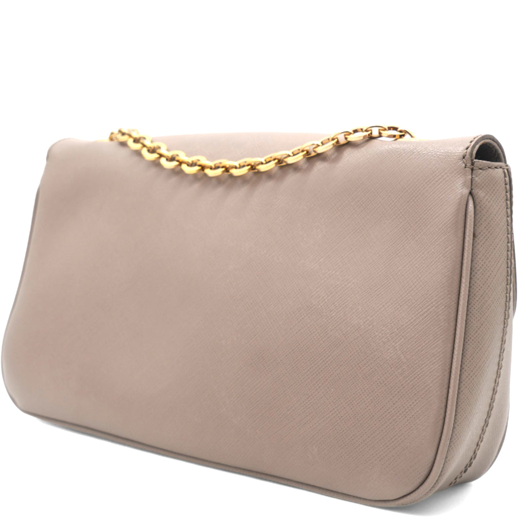 Metallic Beige Leather Gancini Flap Bag
