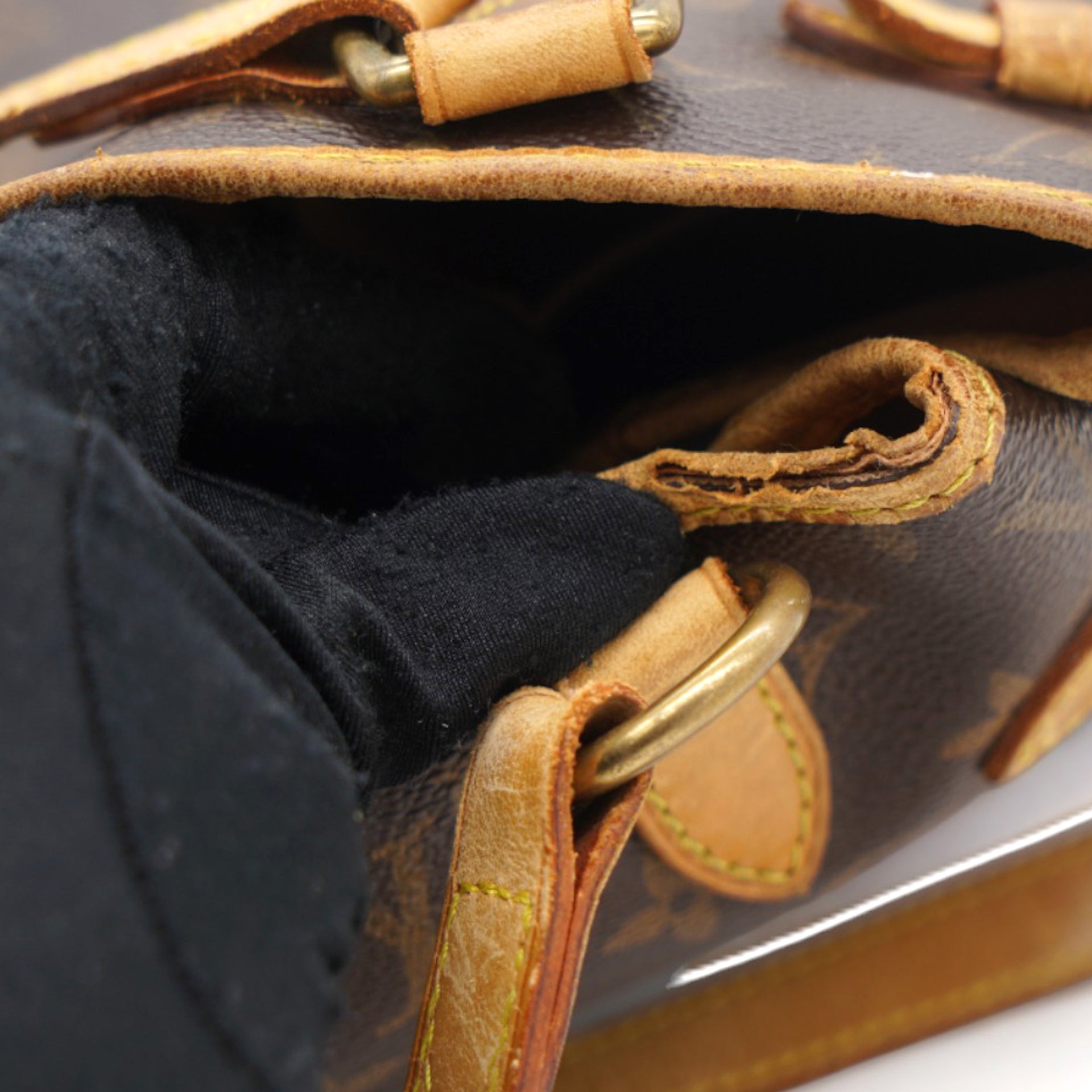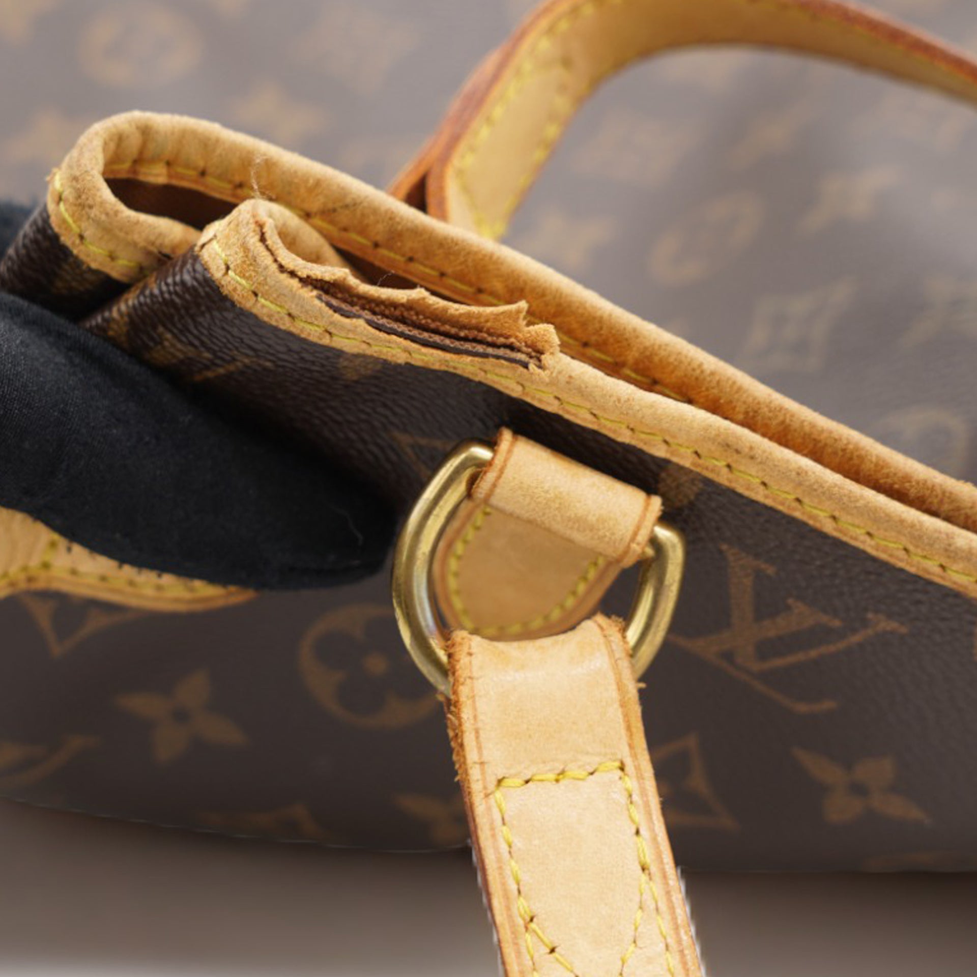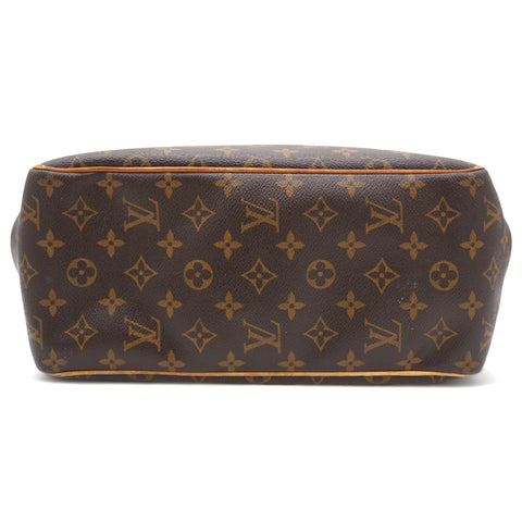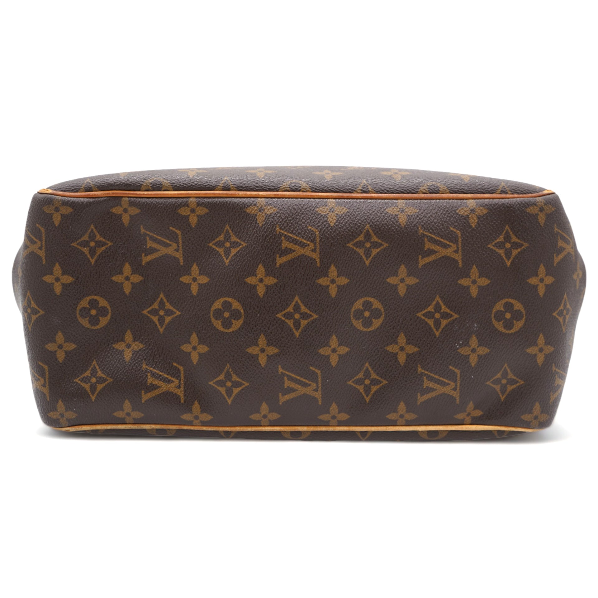 | This shoulder bag is beautifully crafted of classic Louis Vuitton monogram on toile canvas. The bag features signature natural vachetta leather, including side belts and long strap handles. The top is open to a cocoa-colored interior with zipper and patch pockets. |