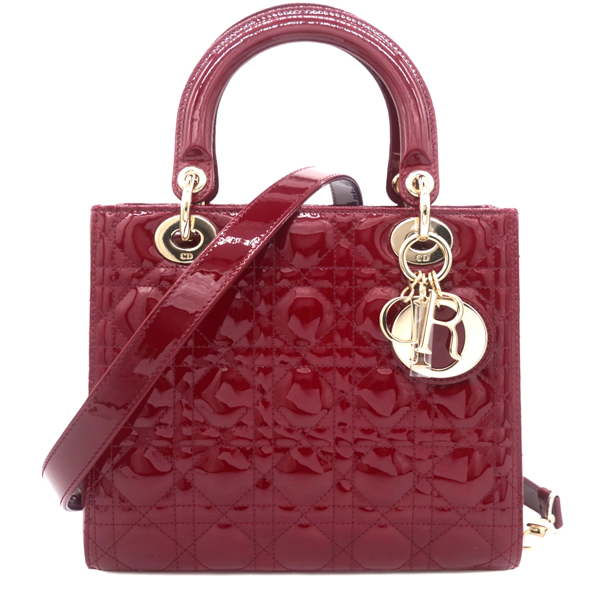 | The Lady Dior tote is a Dior creation that has gained recognition worldwide and is today a coveted bag that every fashionista craves to possess. This red tote has been crafted from leather and it carries the signature Cannage quilt. It is equipped with a fabric interior and two top handles. The gorgeous piece is complete with the classic Dior letter charms in gold. |