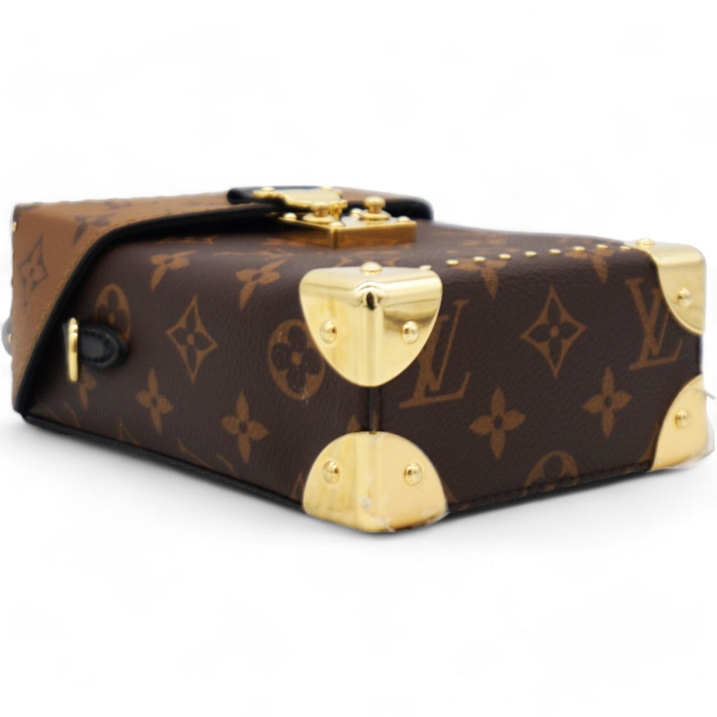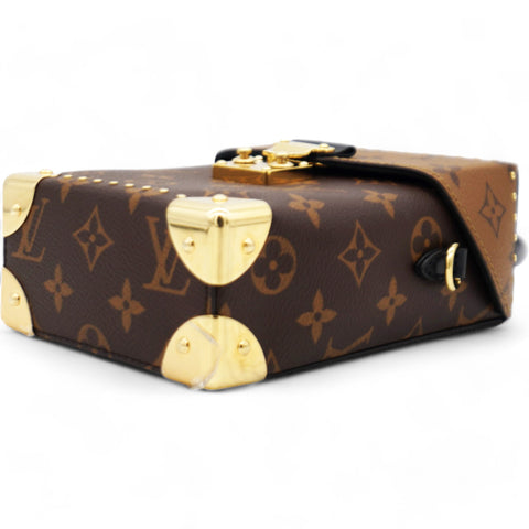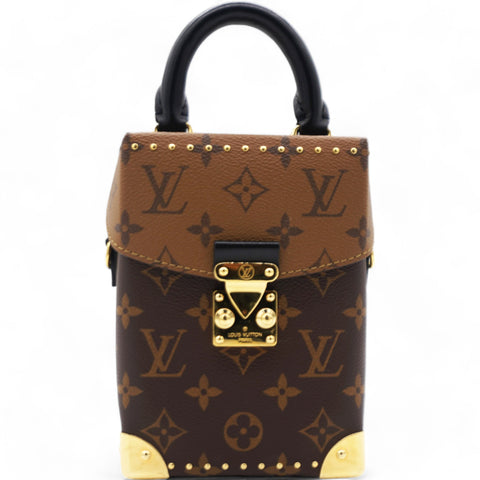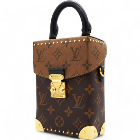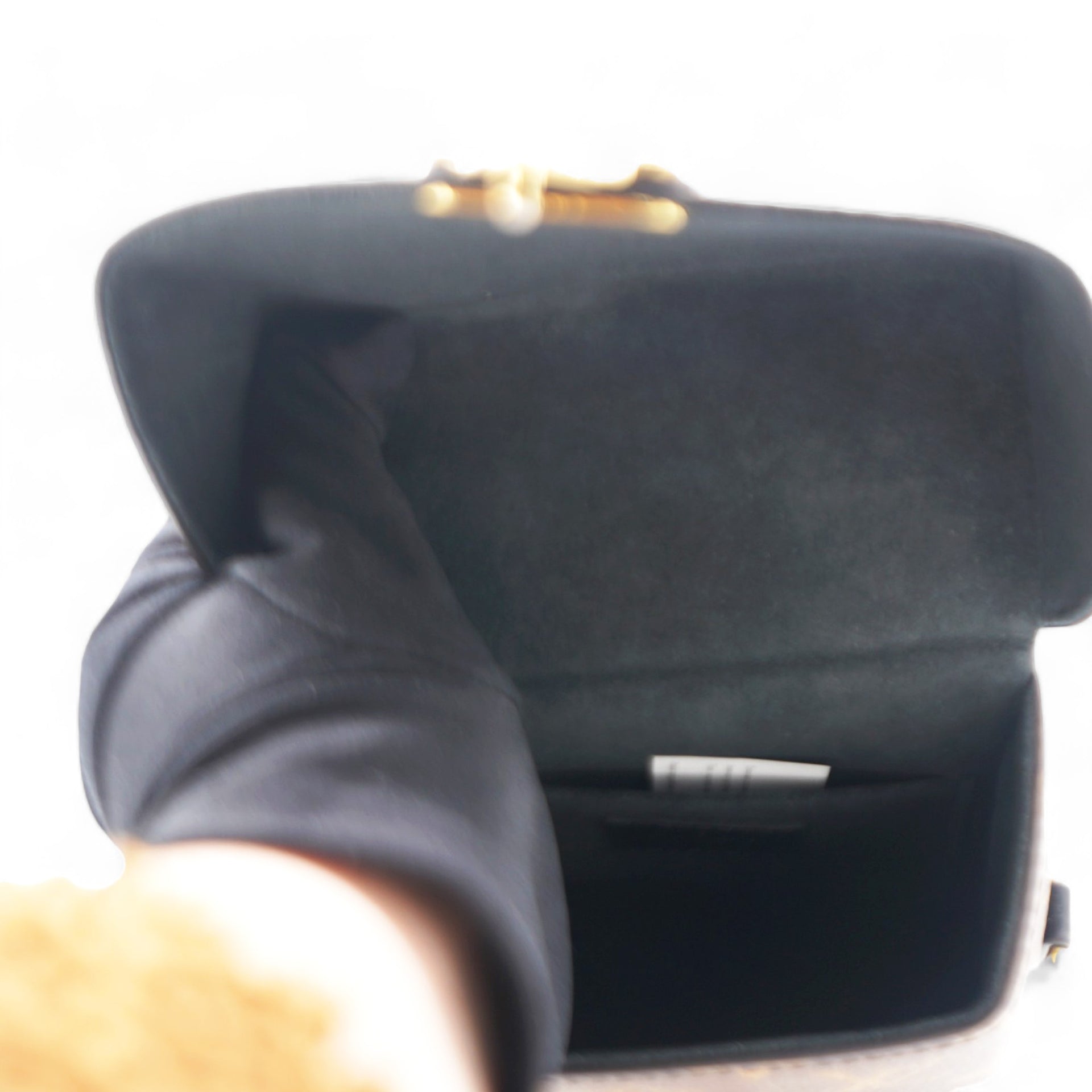 | This stylish camera bag is crafted of Louis Vuitton monogram on coated canvas. The bag features an optional leather cross-body shoulder strap, optional gold chain strap, a gold studded base with a polished gold press lock. This opens to a black microfiber interior with a patch pocket. |