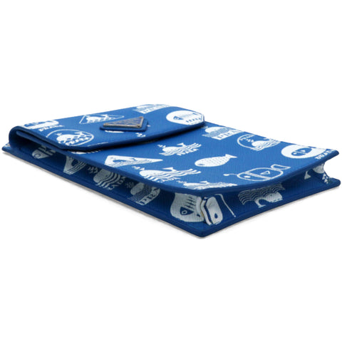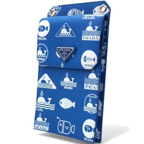 Saffiano Whale Printed Phone Holder Crossbody Bag in Blue Leather