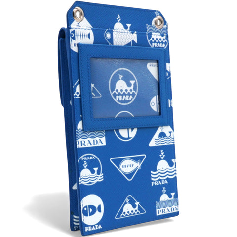 | A smart choice for everyday use, this phone holder from Prada exudes brilliance and outstanding craftsmanship. It is crafted from saffiano leather with whale and prints throughout, and comes with a leather strap and a nylon interior to hold your phone and other essentials. |