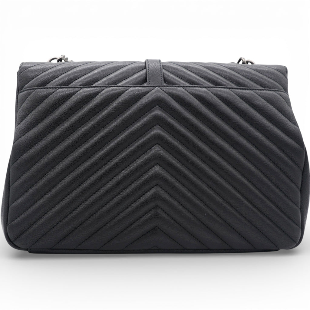 Sheepskin Matelasse Chevron Monogram Large College Satchel Black