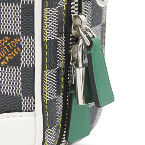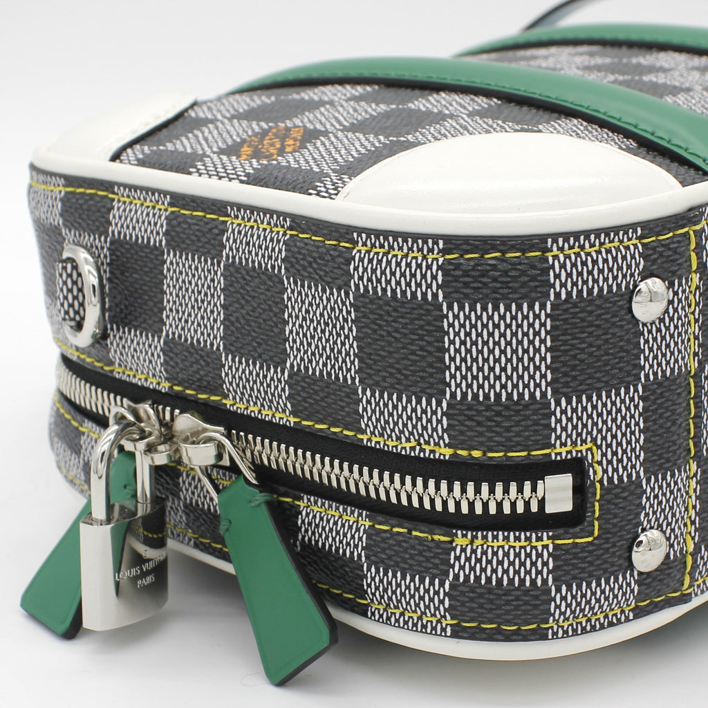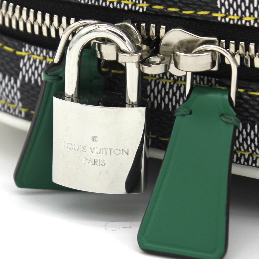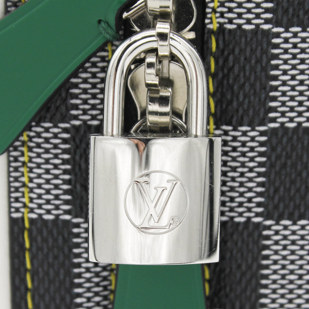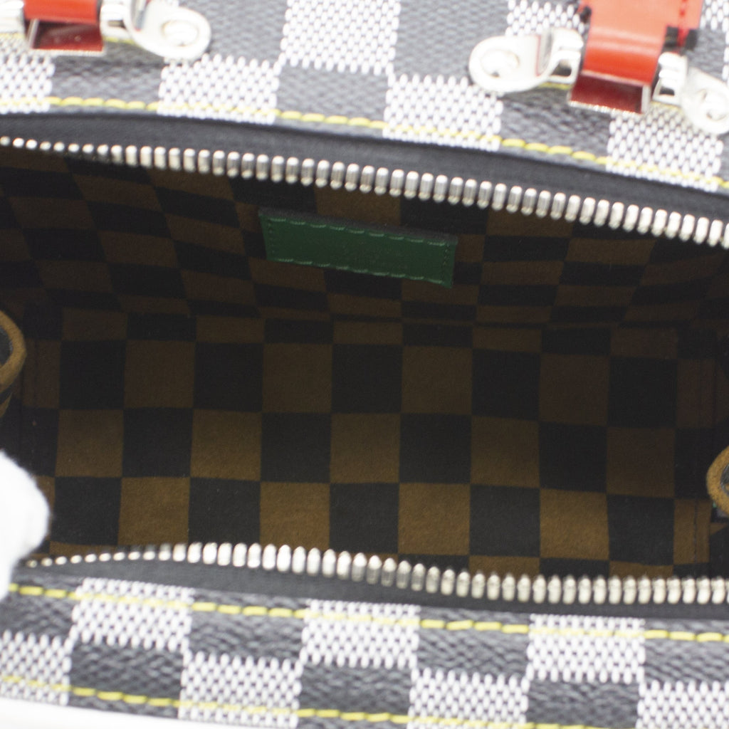 Exterior Material: Black-and-white Damier Coated canvas with silver-color hardware, keybell, padlock, leather handle for hand carry and removable leather strap. Interior Material: Black-and-brown damier coated canvas lining with one main compartment and flat pockets. Accessories: Dust Bag; Box Serial Number: RI13109 Bought Year: 2019 |