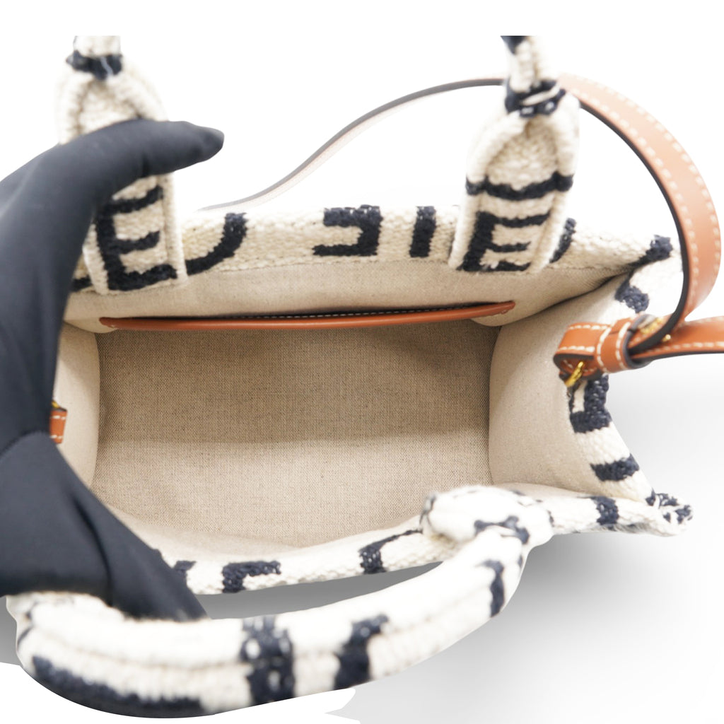 White/Black Canvas Fabric Cabas Thais Tote Bag