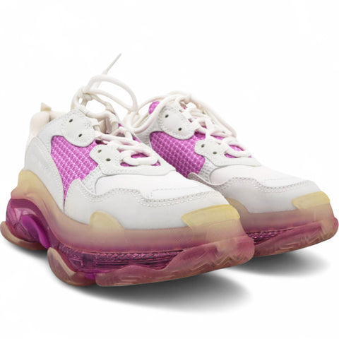 Fabric Mesh Clear Sole Womens Triple S Sneakers White Pink Size38