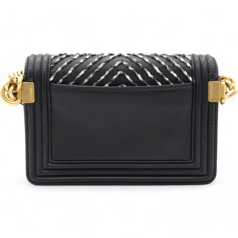 | This chic belt bag is crafted of leather. The bag features an embroidered chevron print with gold tone chain accents. It has an aged gold chain link belt with leather and an aged gold CC boy push lock. This opens to a pink fabric interior with a patch pocket. This is a perfect shoulder bag for day or evening with the timeless style of Chanel! . |