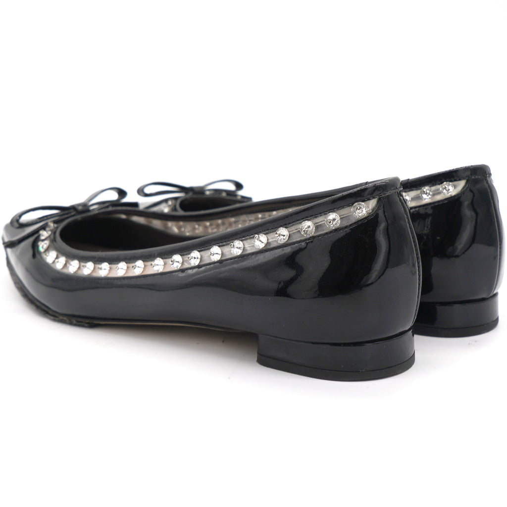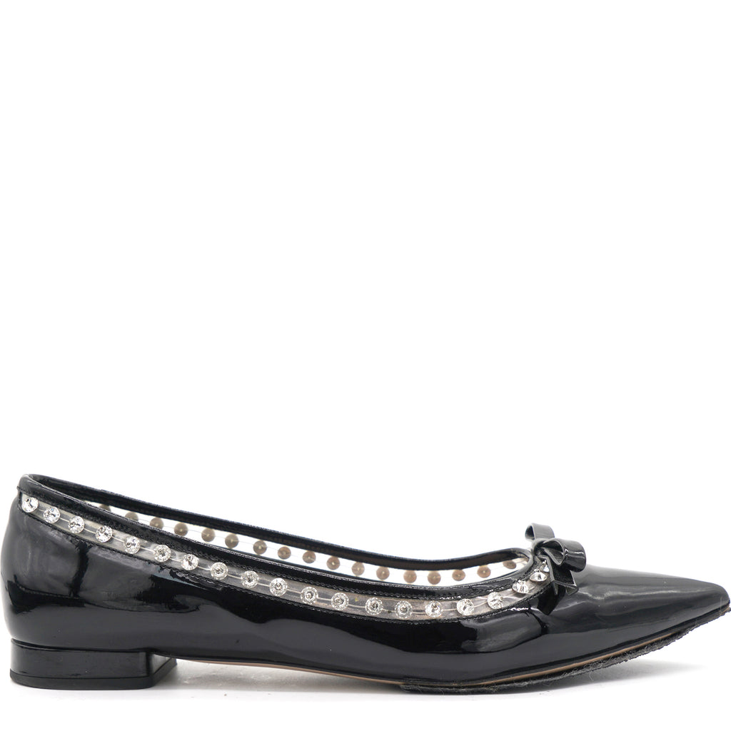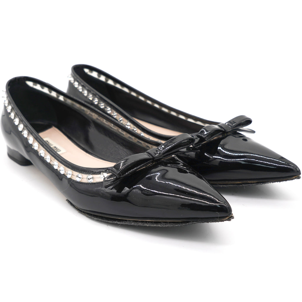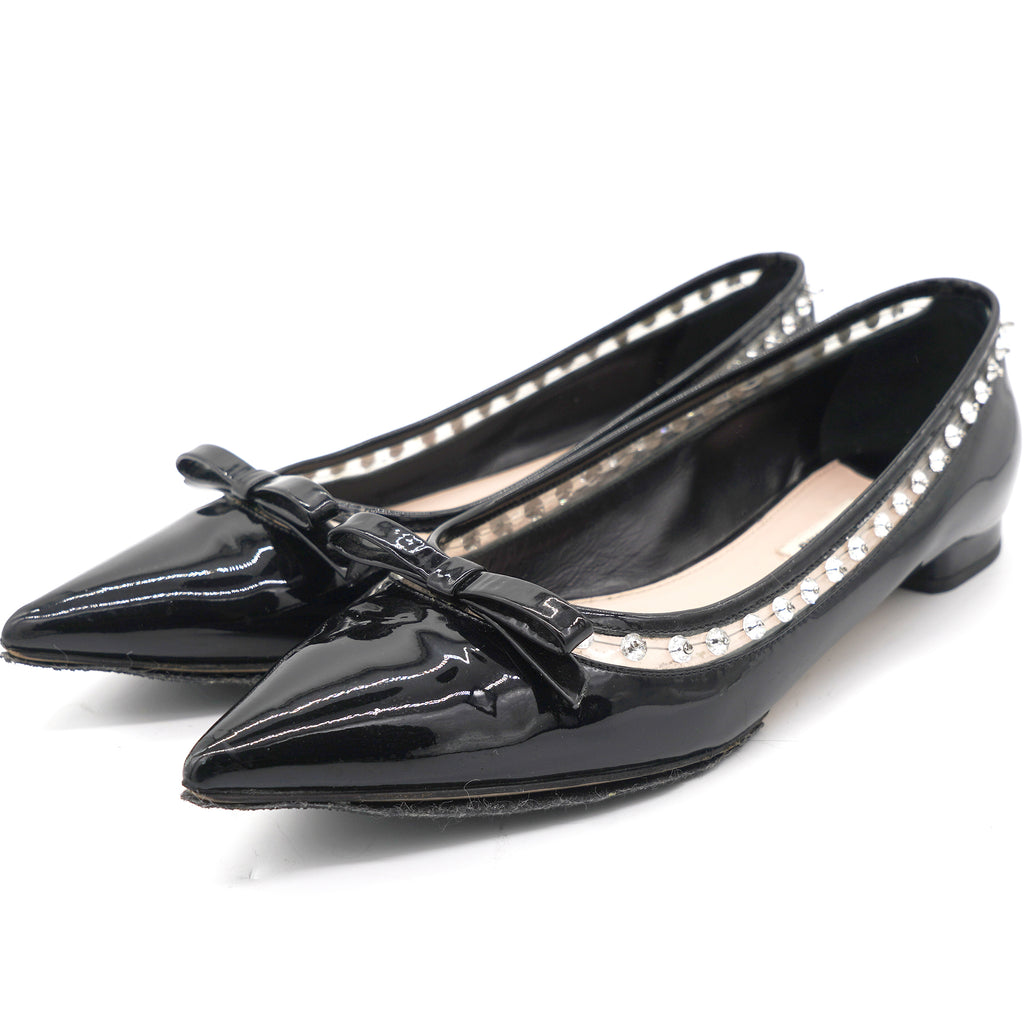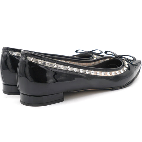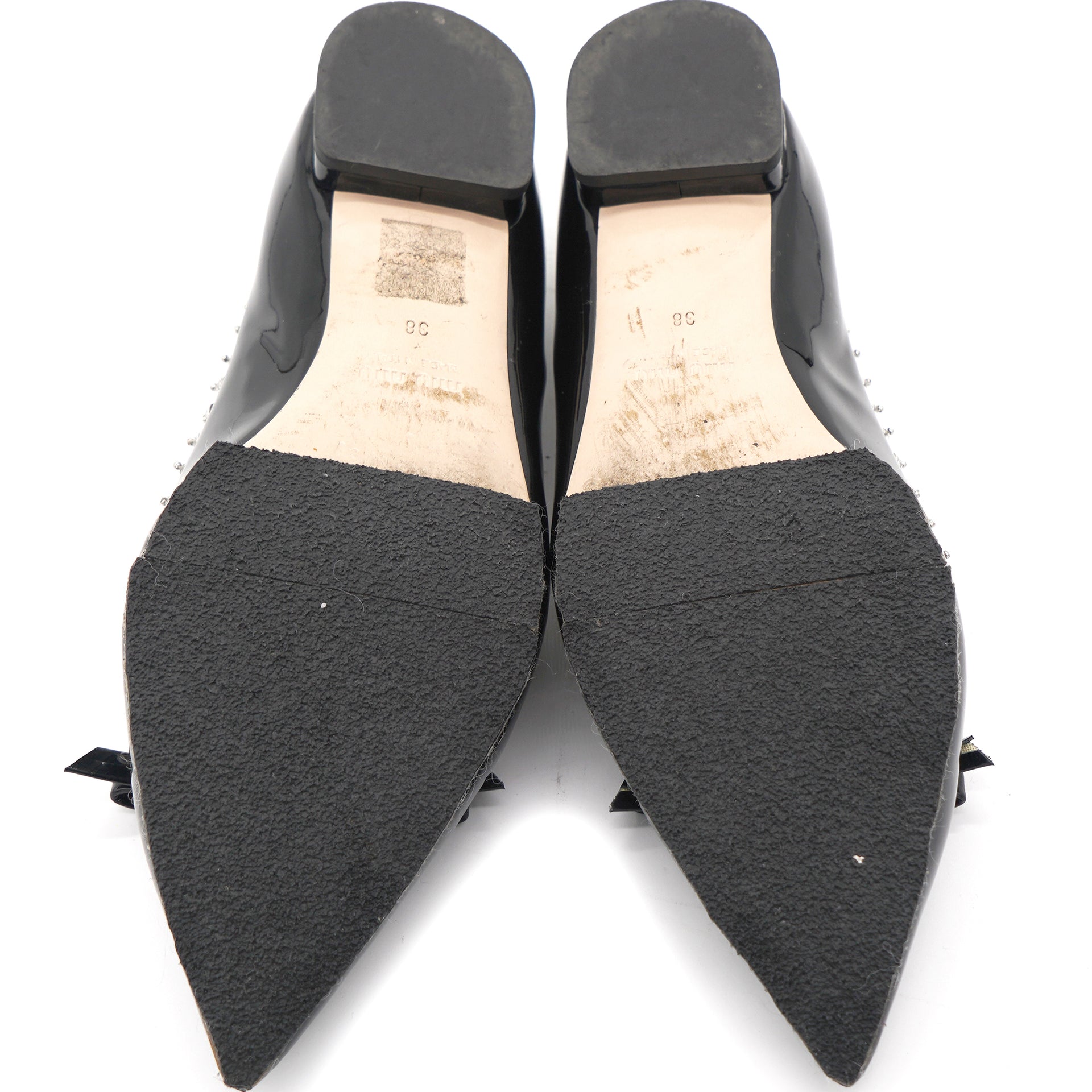 Black Patent Leather Studded Bow Pointed-Toe Flats 38
