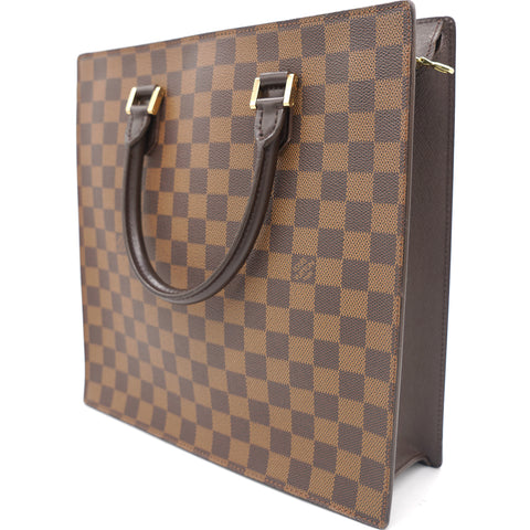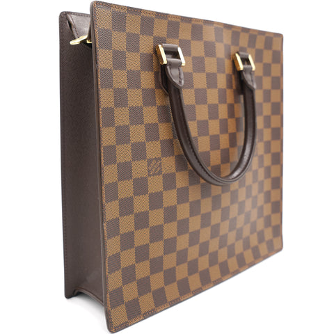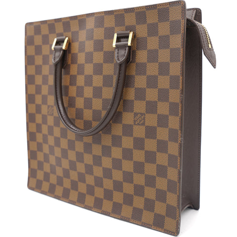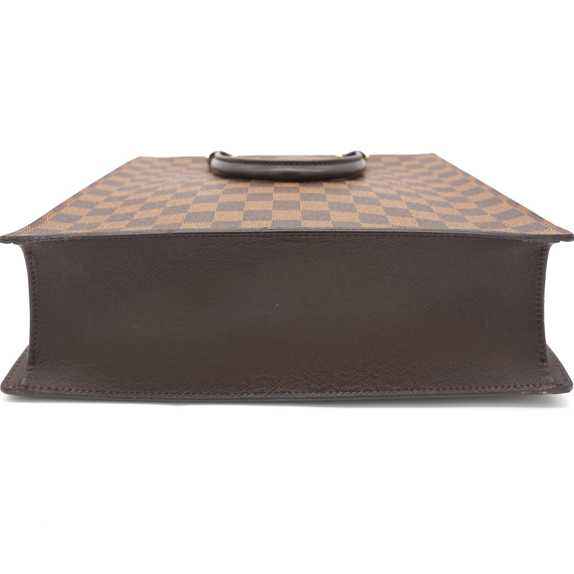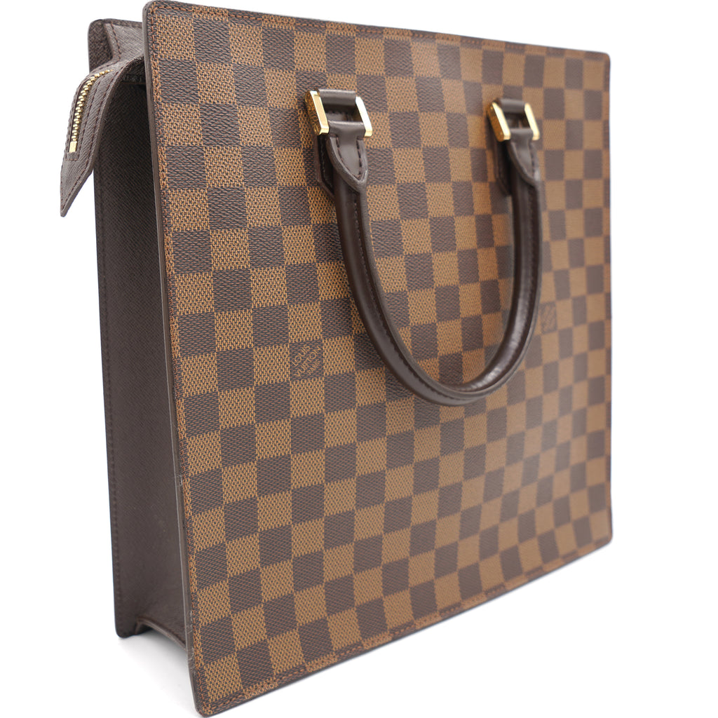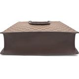It features a classic design that's perfect for carrying papers or large documents. It has two chocolate leather top handles and a spacious canvas lined interior.