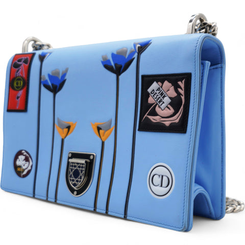 | This ultra-chic shoulder bag is crafted of supple lambskin leather. The bag features bold, ribbed embossed and stitched floral patchwork, a silver tone chain link and leather adjustable, waist length shoulder strap that can be doubled or worn long, a press lock and a front flap. The bag opens to a black leather interior with a compartment, patch pocket and zip pocket. This is a beautiful bag for day and night outings. |