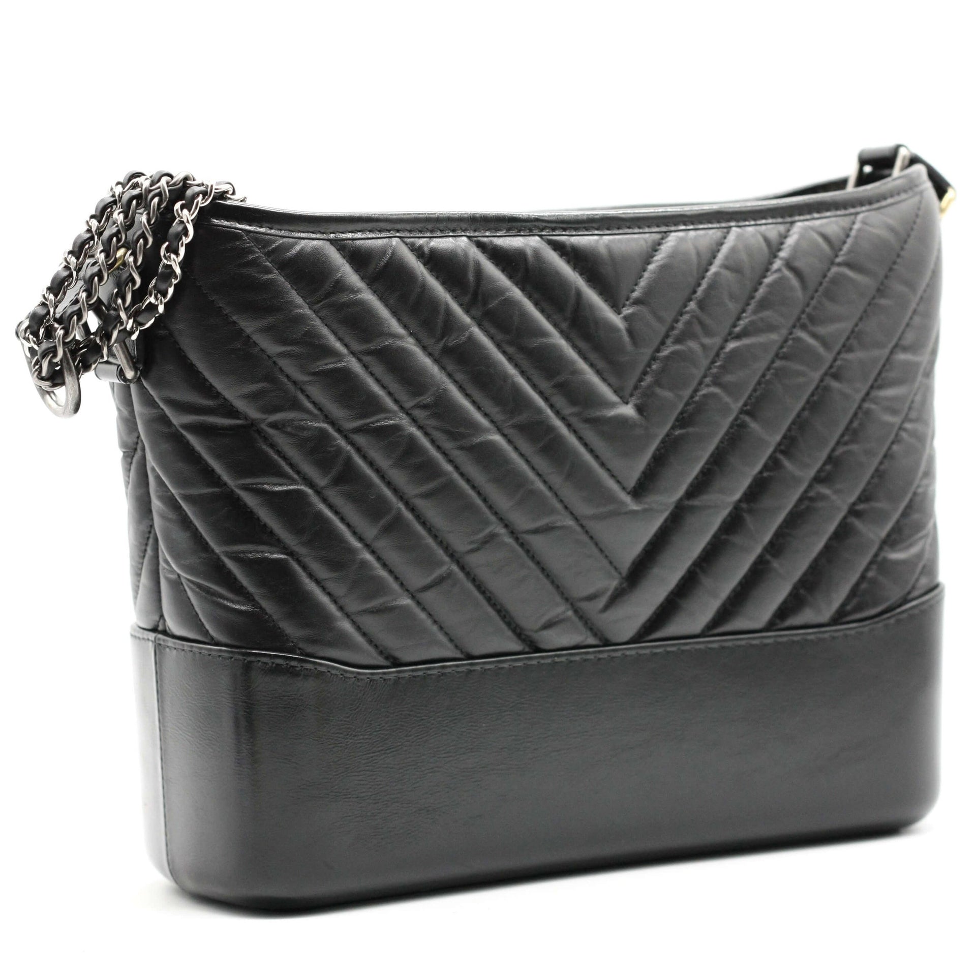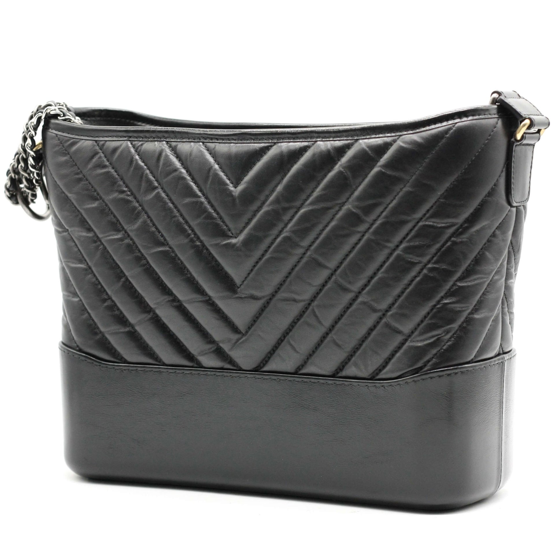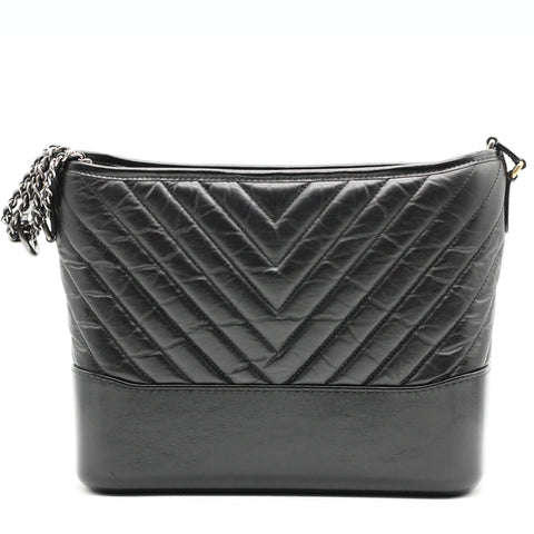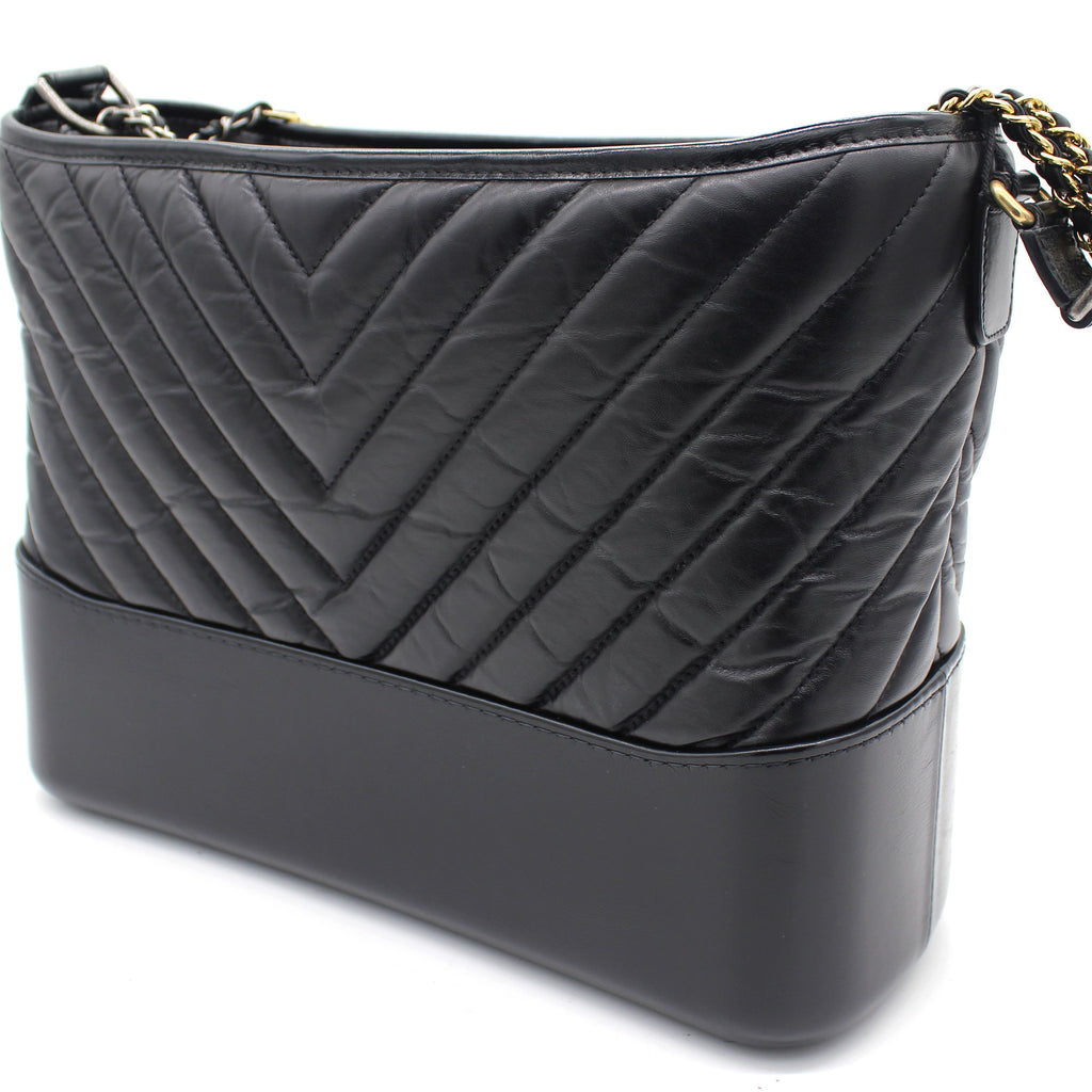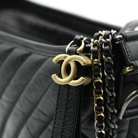 | This Chanel Aged Calfskin Chevron Quilted Medium Gabrielle Hobo features a sturdy base that provides structure for the quilted leather sides. The bag comes with a unique chain strap featuring two mini chain and leather handles with and leather shoulder pad. The interior is perfect for holding your daily essentials. |