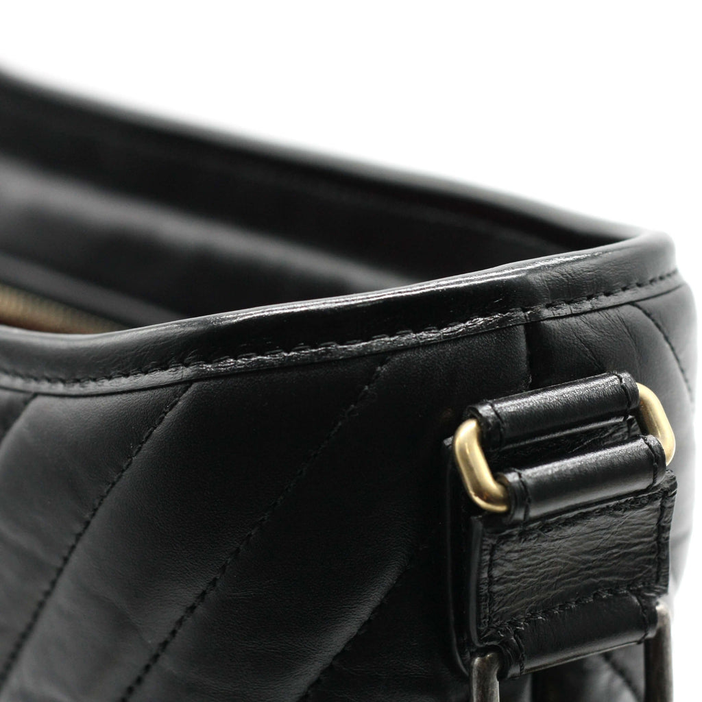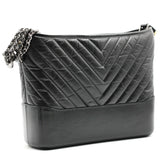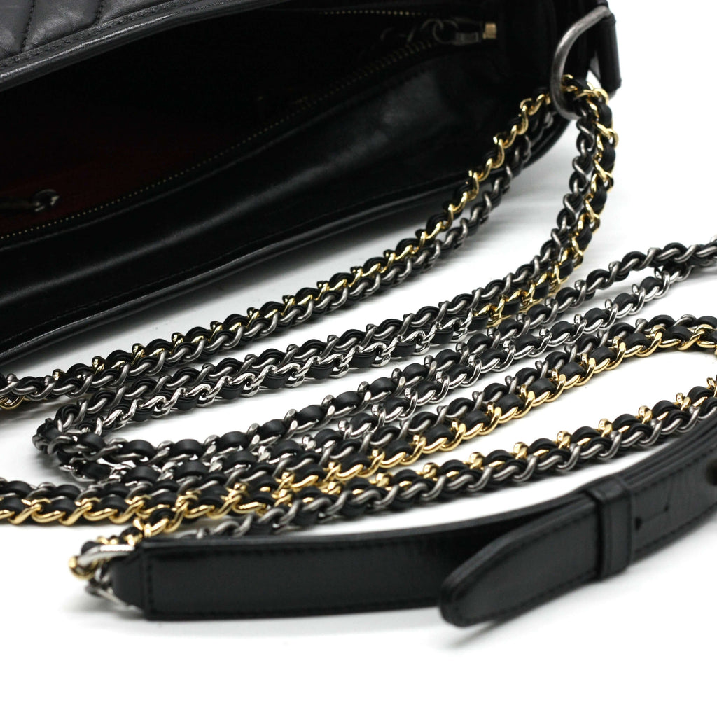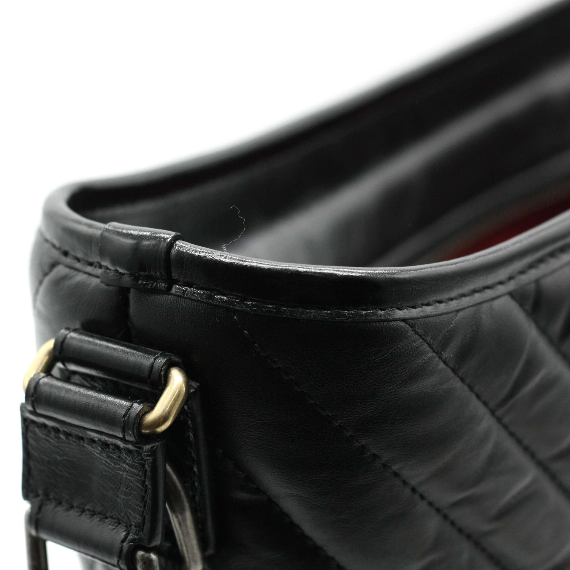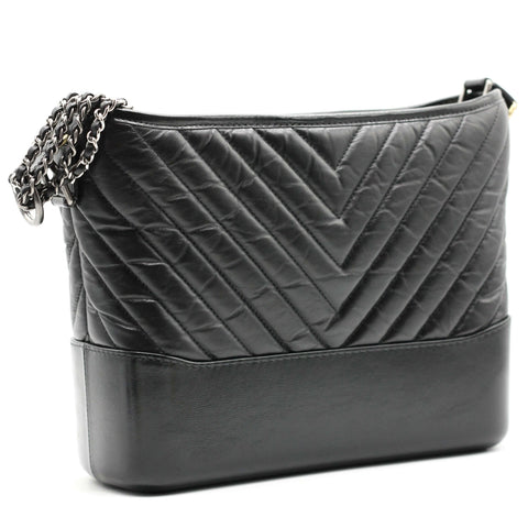 | This Chanel Aged Calfskin Chevron Quilted Medium Gabrielle Hobo features a sturdy base that provides structure for the quilted leather sides. The bag comes with a unique chain strap featuring two mini chain and leather handles with and leather shoulder pad. The interior is perfect for holding your daily essentials. |
