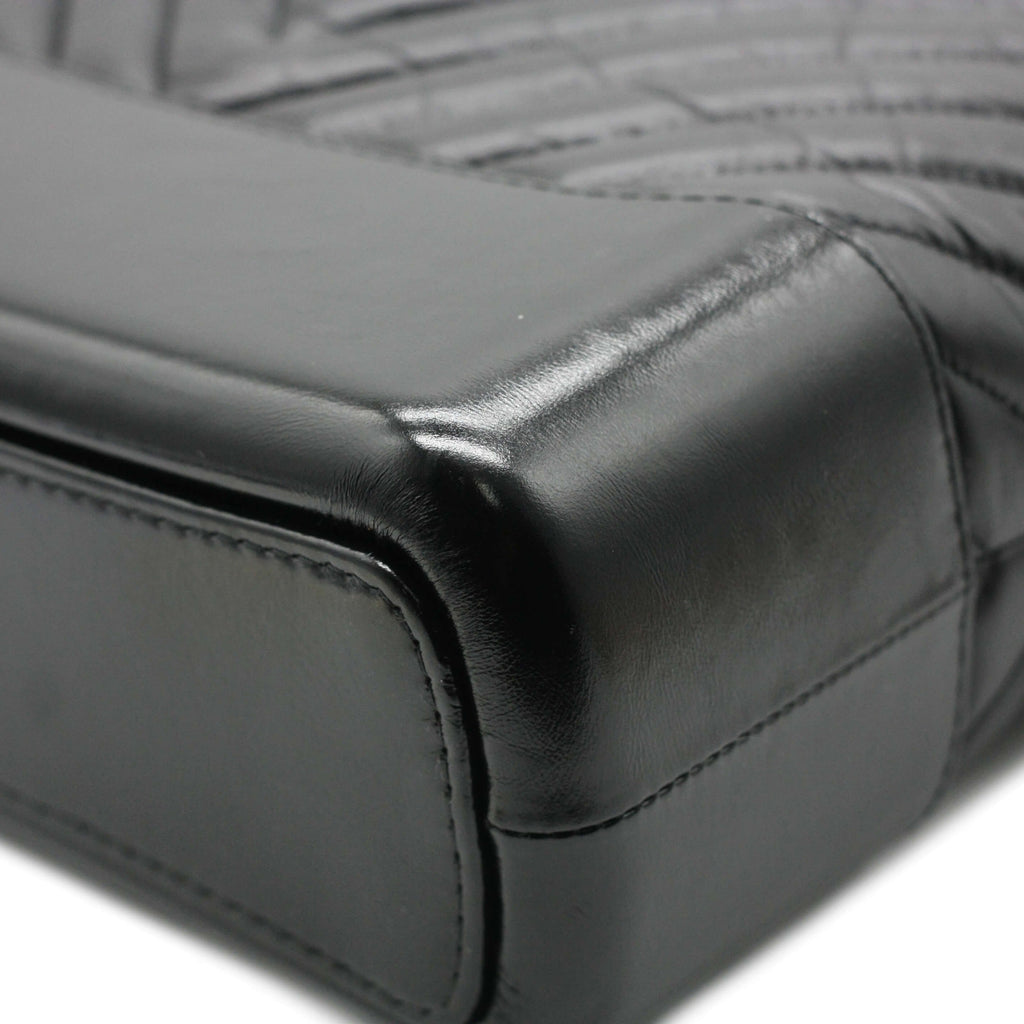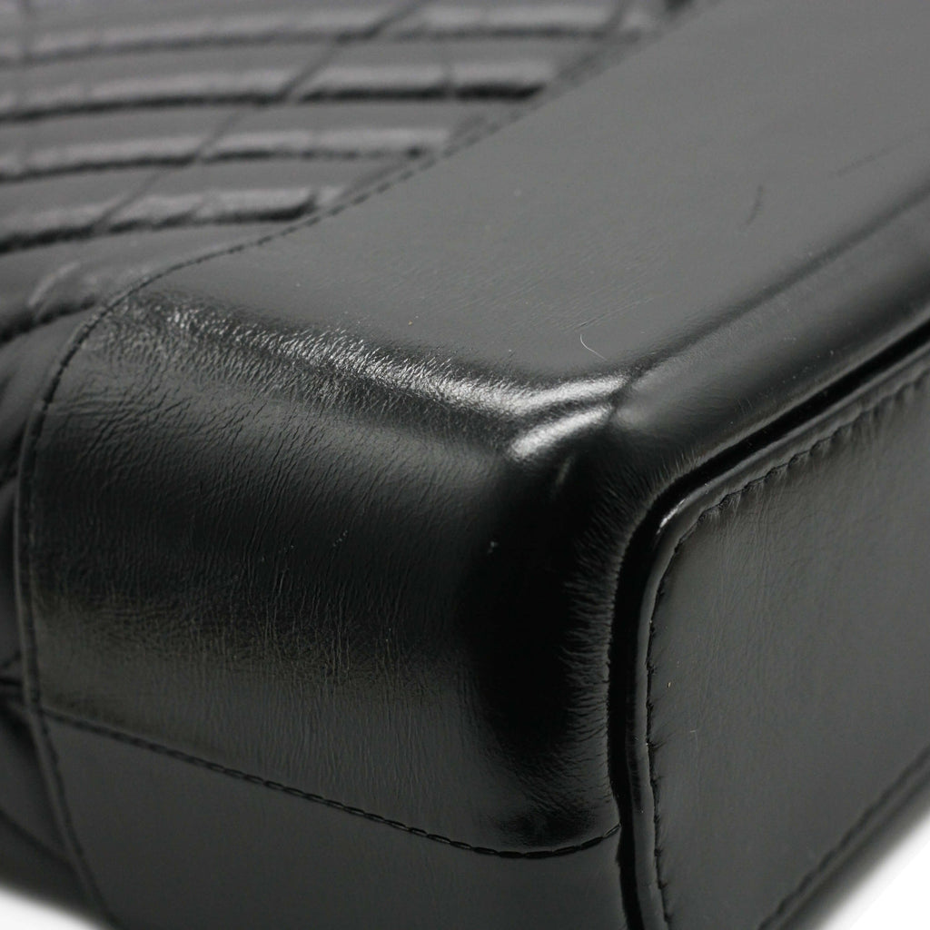 Exterior Material: Black chevron-quilted aged calfskin with sturdy smooth calfskin base, multitonal hardware, gradient gold to ruthenium chain-link leather threaded shoulder strap with shoulder pad, and zip closure at top featuring an aged gold CC logo. Interior Material: Red tonal lining with one main compartment, three interior pockets and one with zip closure. Accessories: Dustbag, Box, Authenticity Card Serial Number: 26435175 Bought Year: 2019 |