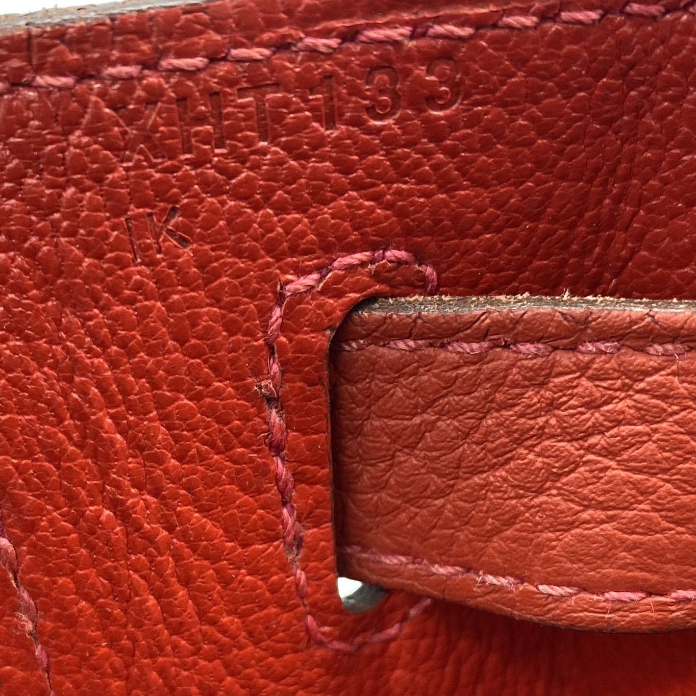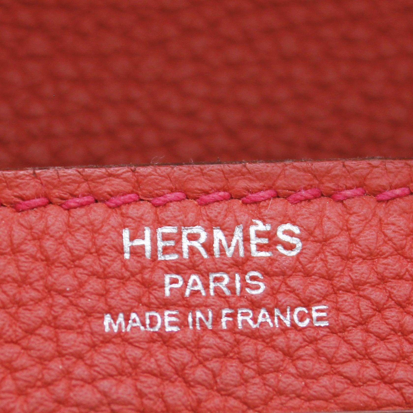 Exterior Material: Géranuim Togo Leather with silver-tone hardware with single top handles and an optional removable shoulder strap. Interior Material: Leather lining with 1 slip pocket and 1 zip pocket Accessories: FULL SET: Receipt; Dust Bag; Box