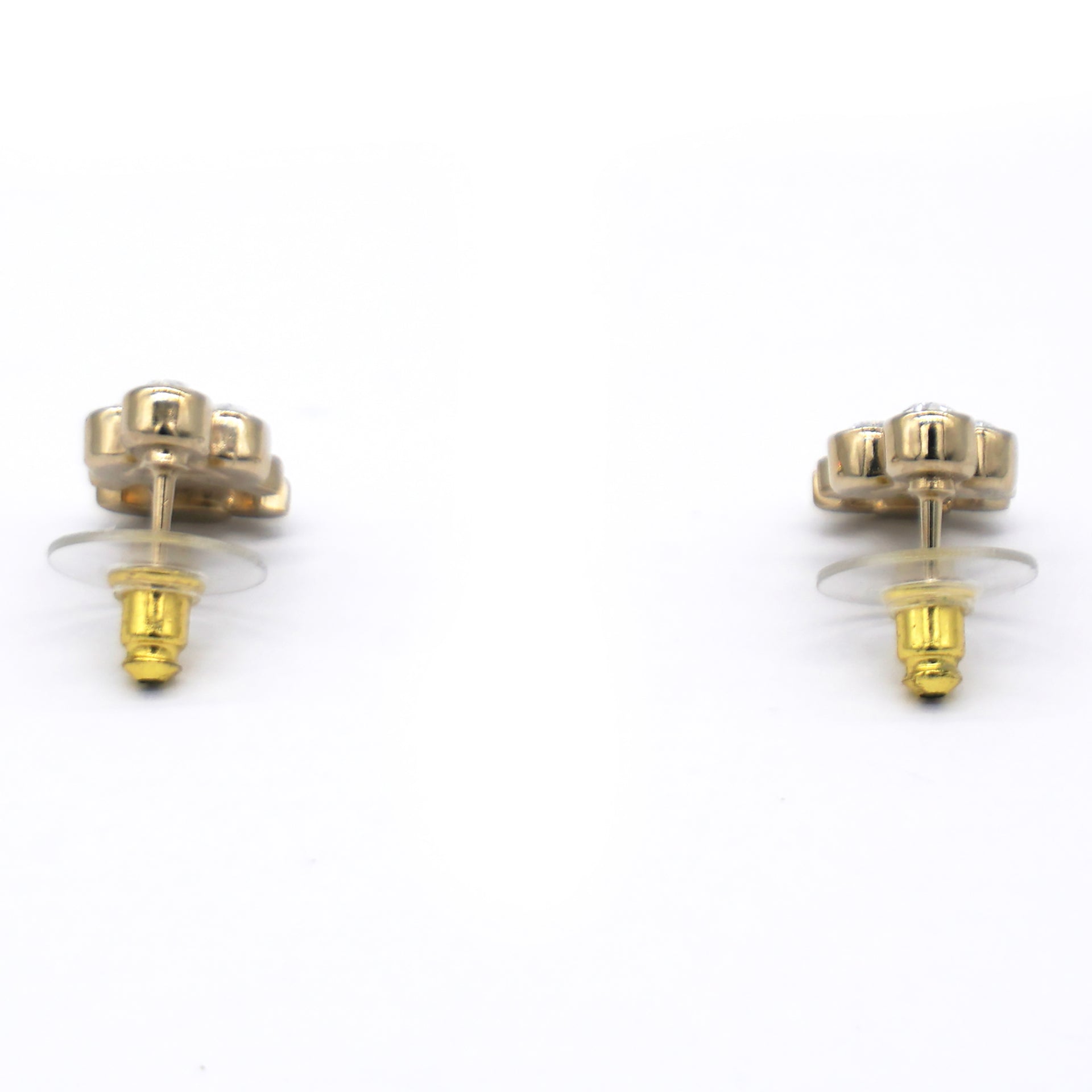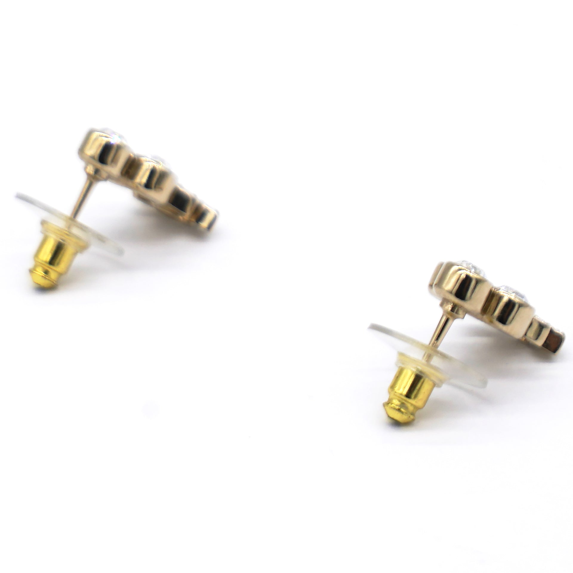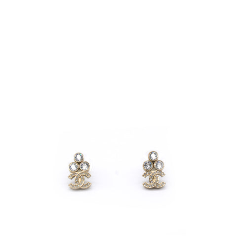 | Enhance your style with CHANEL's Gold 3 Round Crystal CC Small Piercing Earrings. The elegant design features three sparkling crystals set in durable gold, adding a touch of sophistication to any outfit. Elevate your look with these timeless and versatile earrings. |