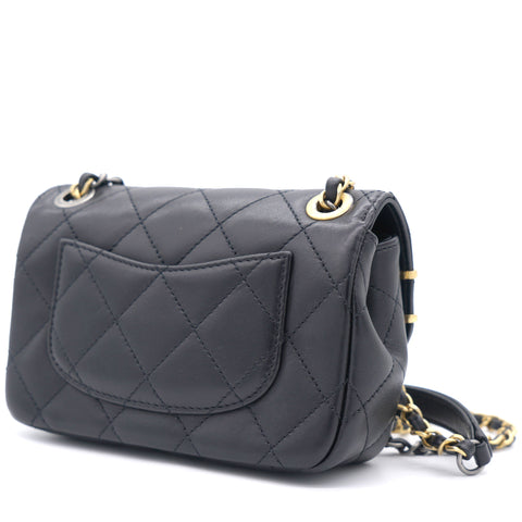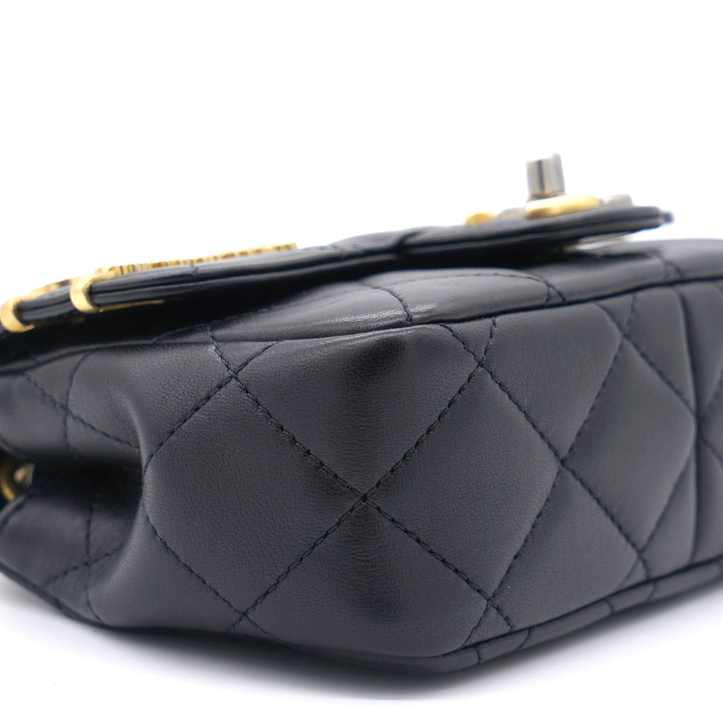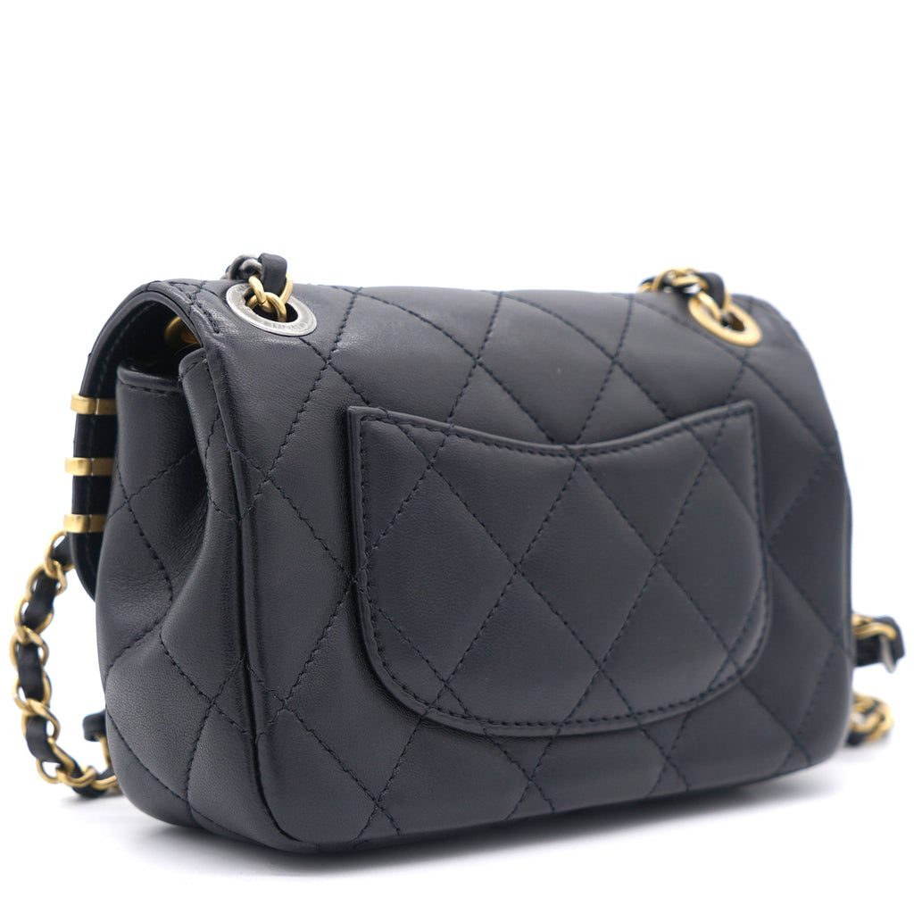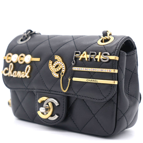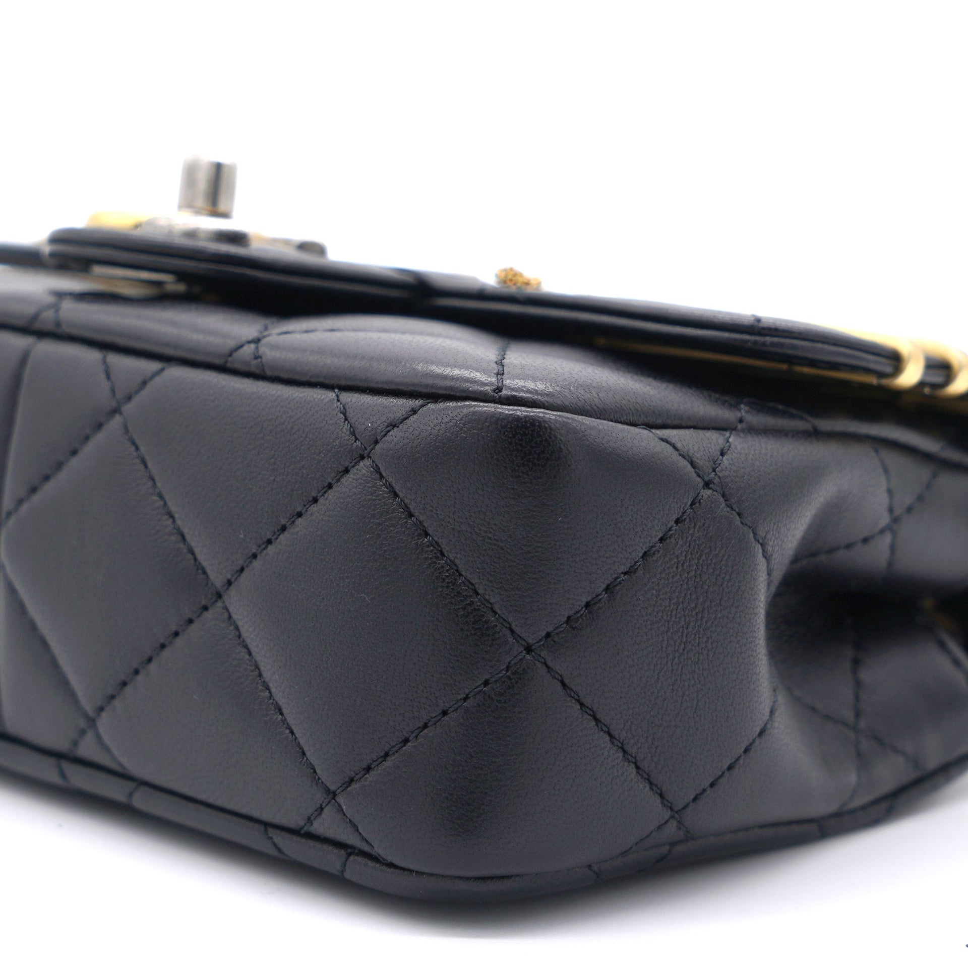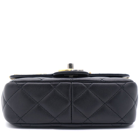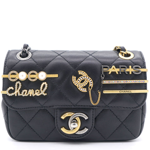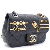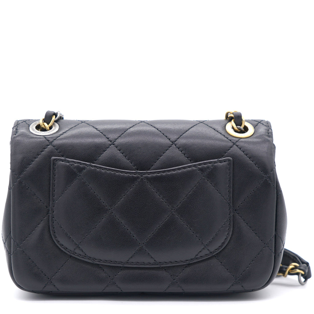 | This stylish clutch wallet is finely crafted of lambskin quilted leather. The bag features a large Chanel Interlocking CC logo in an aged gold and ruthenium chain link threaded with leather design, with a ruthenium and aged gold chain link shoulder strap threaded with leather. The CC turn lock opens to a contrasting gold leather with a flat pocket. |