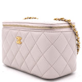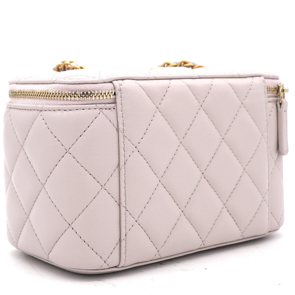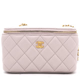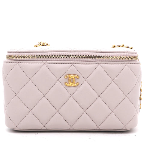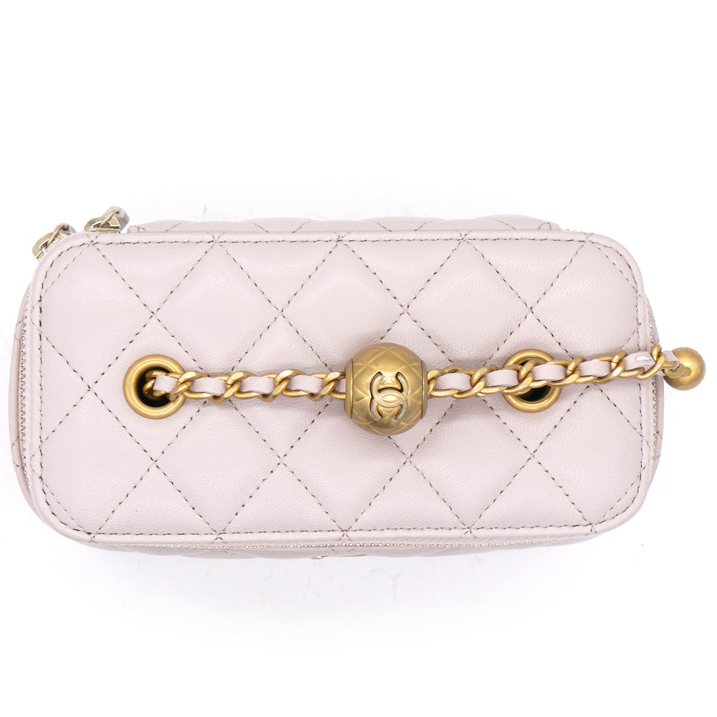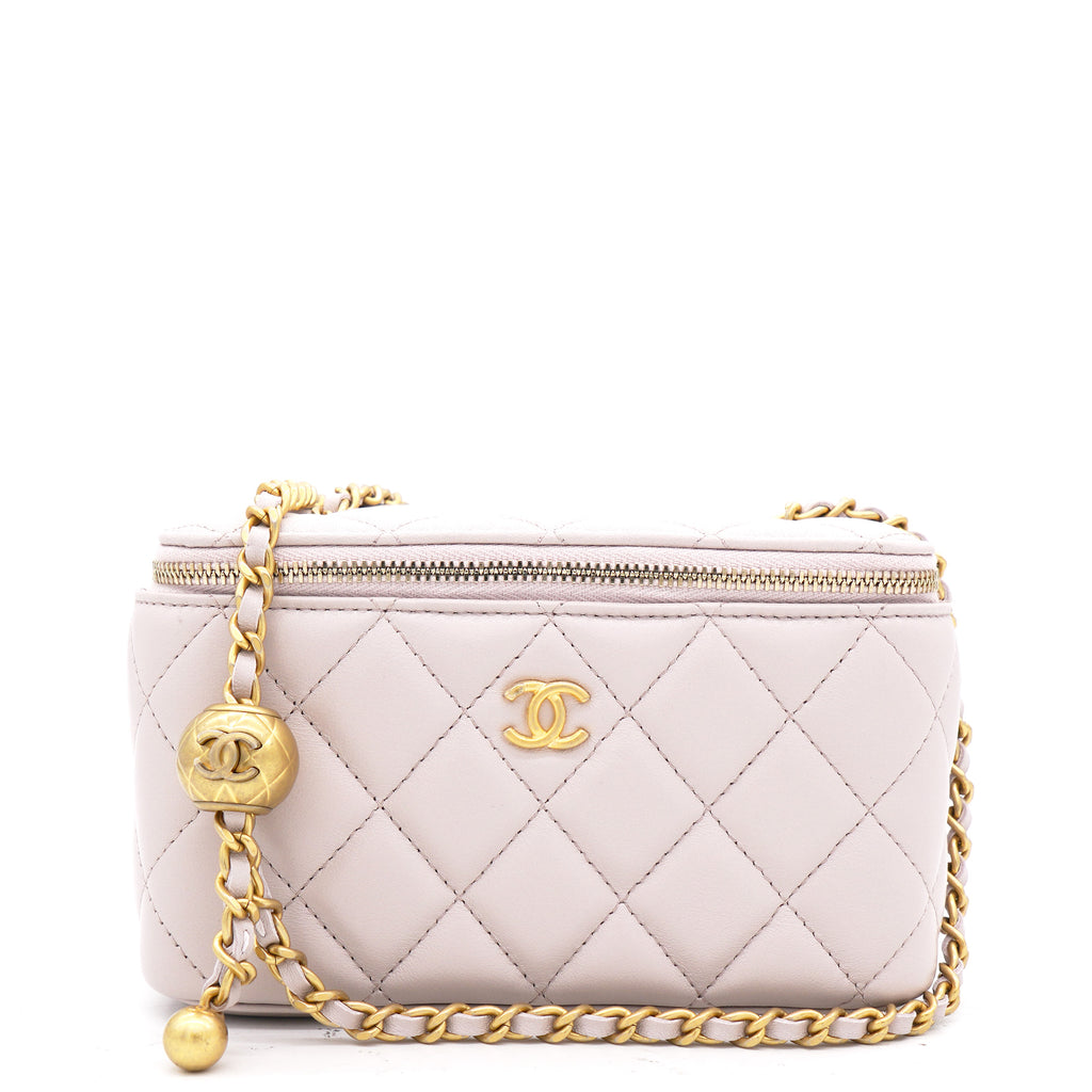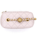 | This stylish crossbody is crafted of luxurious lambskin in highly coveted Lilac. It features a leather threaded aged gold chain-link shoulder strap and aged gold ball hardware to adjust the strap. The handbag features a 3/4 wrap-around zipper that opens to a metallic gold fabric interior. |