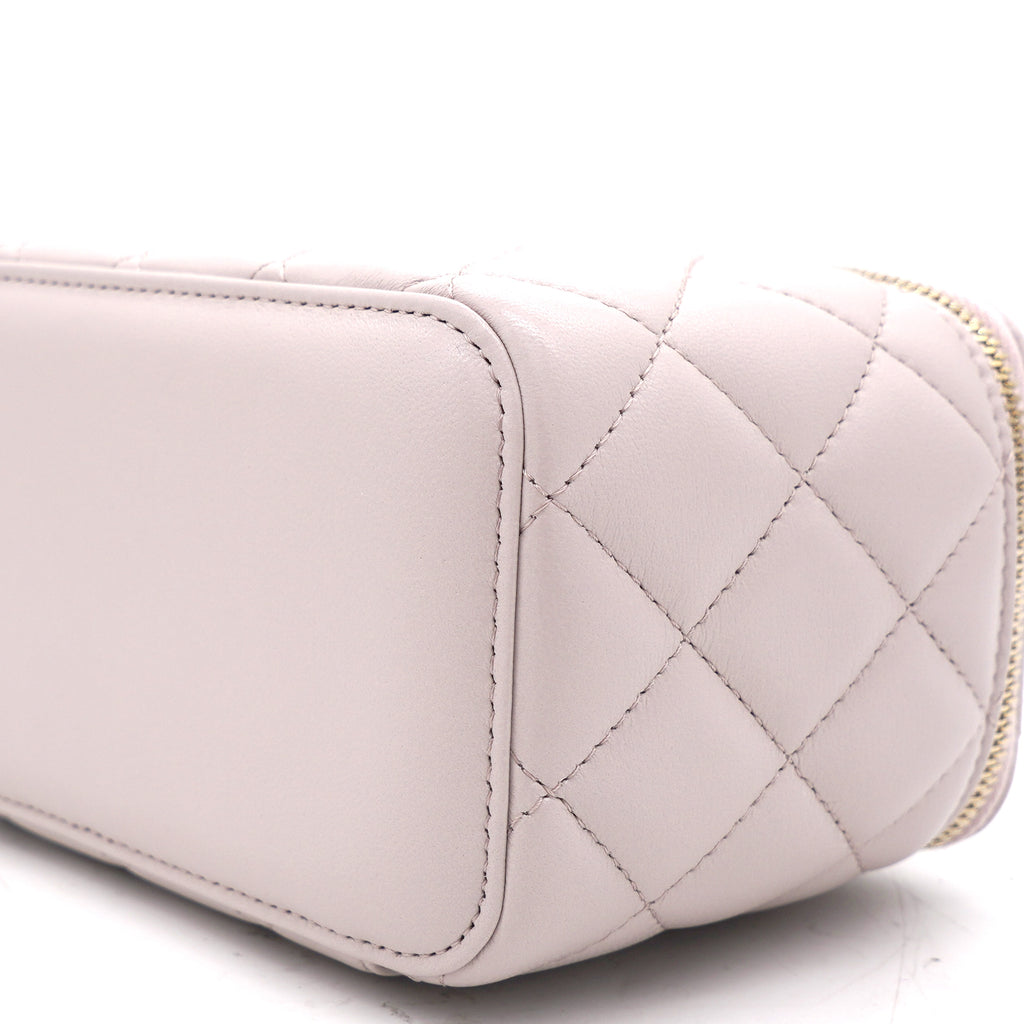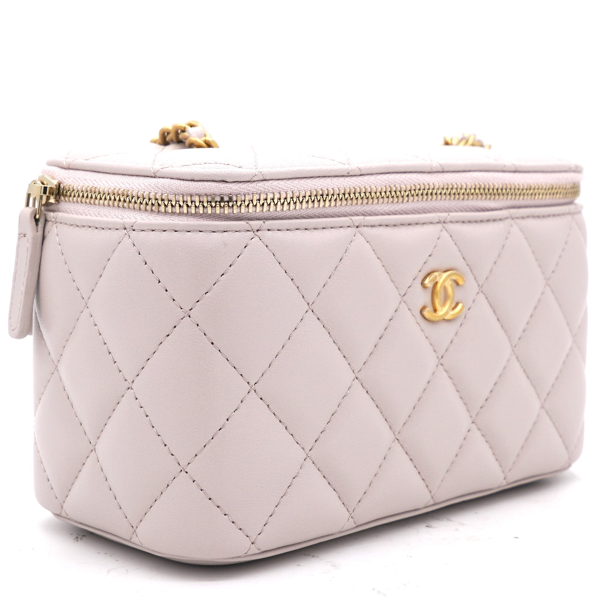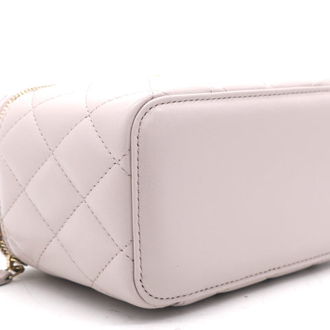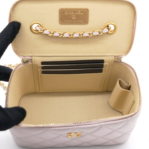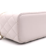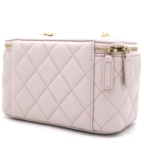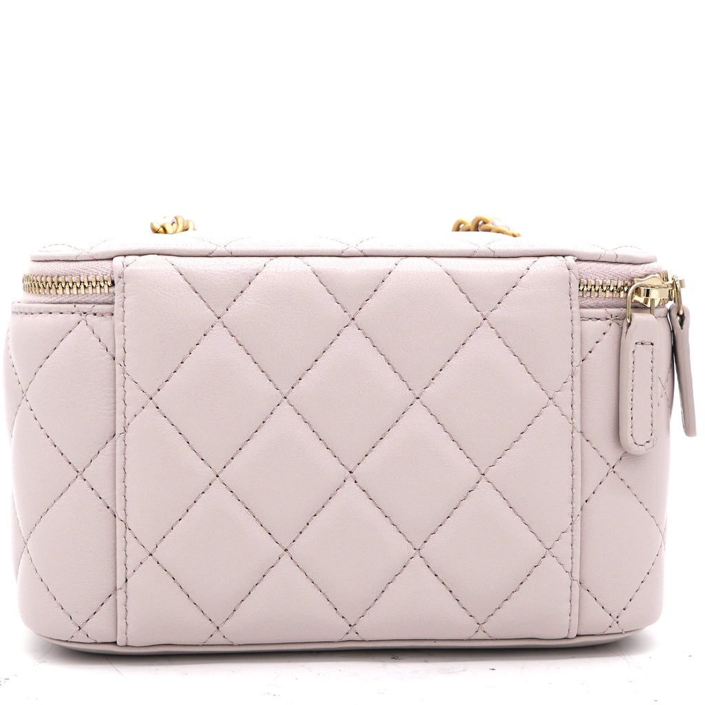 | This stylish crossbody is crafted of luxurious lambskin in highly coveted Lilac. It features a leather threaded aged gold chain-link shoulder strap and aged gold ball hardware to adjust the strap. The handbag features a 3/4 wrap-around zipper that opens to a metallic gold fabric interior. |
