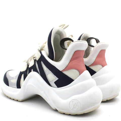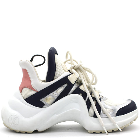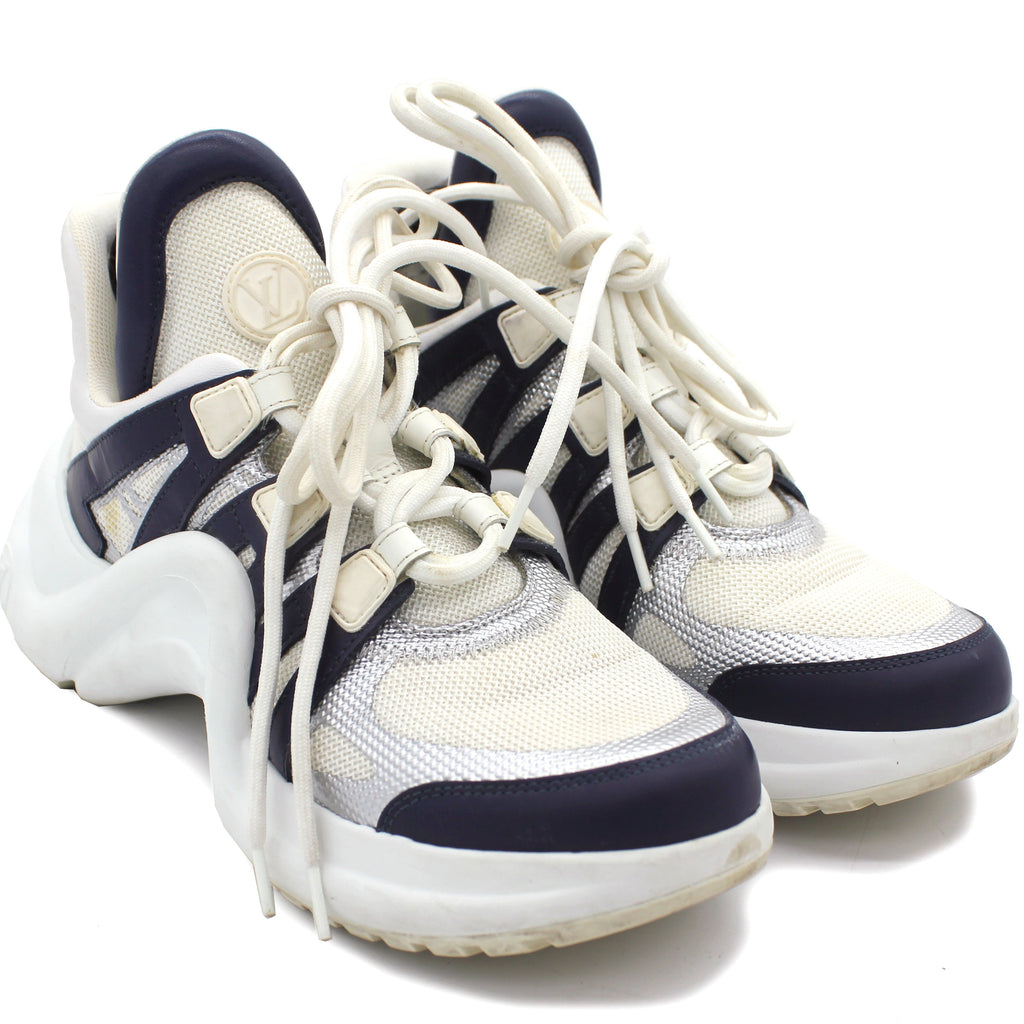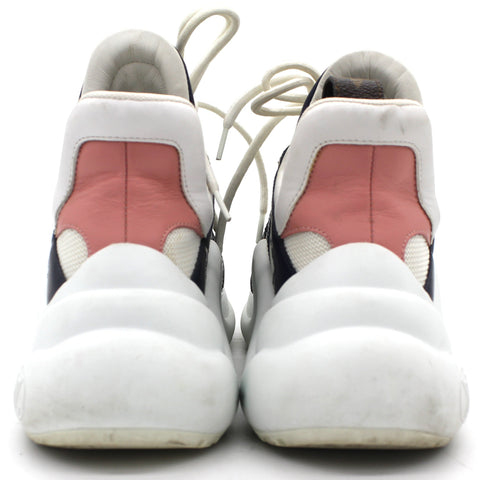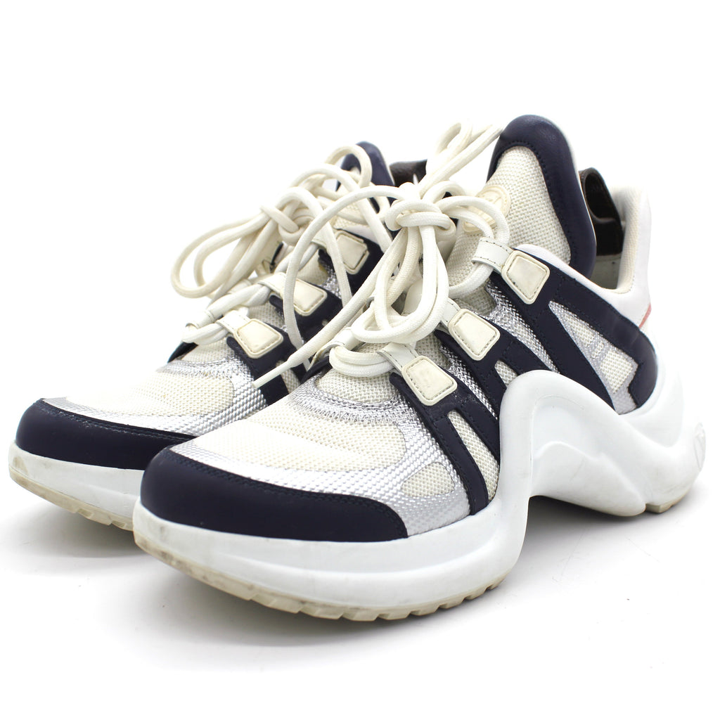| The statement look of Louis Vuitton's Spring/Summer 2018 fashion show, this futuristic sneaker balances a springy wave-shaped outsole and an oversized tongue with a low cut around the ankle for a delicate, feminine touch. |