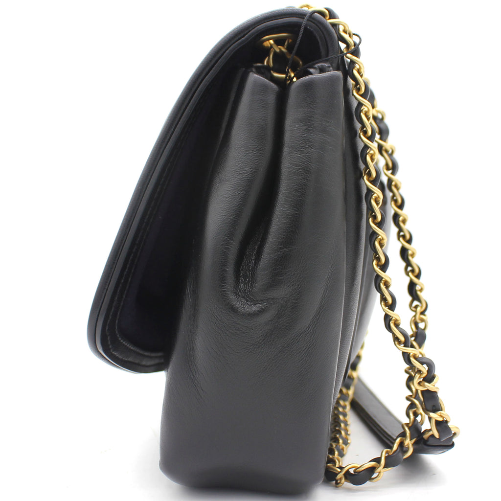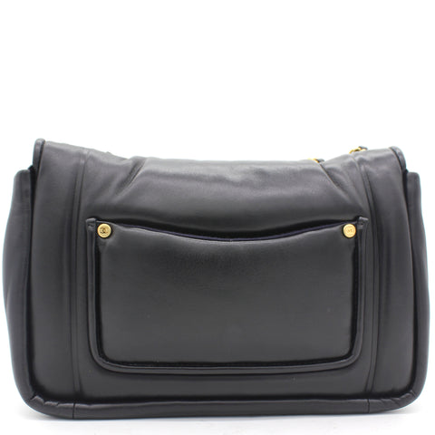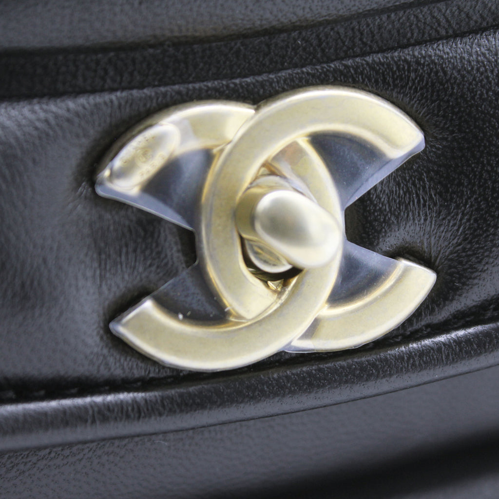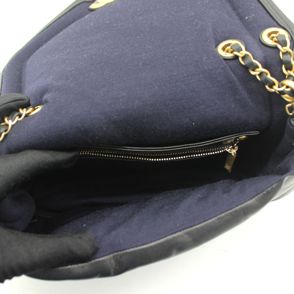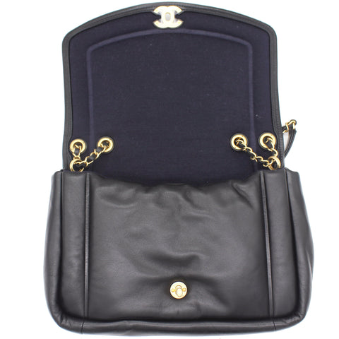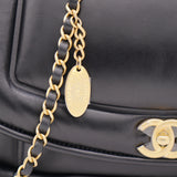 | This stylish shoulder bag is from the 2019 Fall Winter Collection Act 2, crafted in Luxurious black lambskin with antique gold-tone hardware and leather threaded chain strap featuring logo charm. It feature single patch back pocket for easy access and finished with navy blue fabric interior with a zipper pocket. The single and double chain options make it versatile bag to carry. It’s a great companion from day to night just from Chanel. |