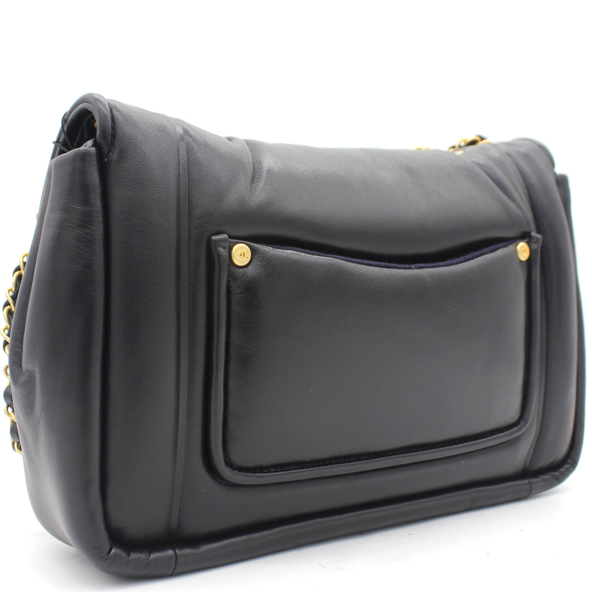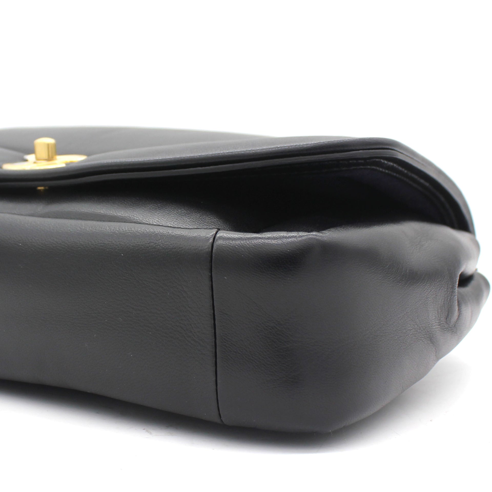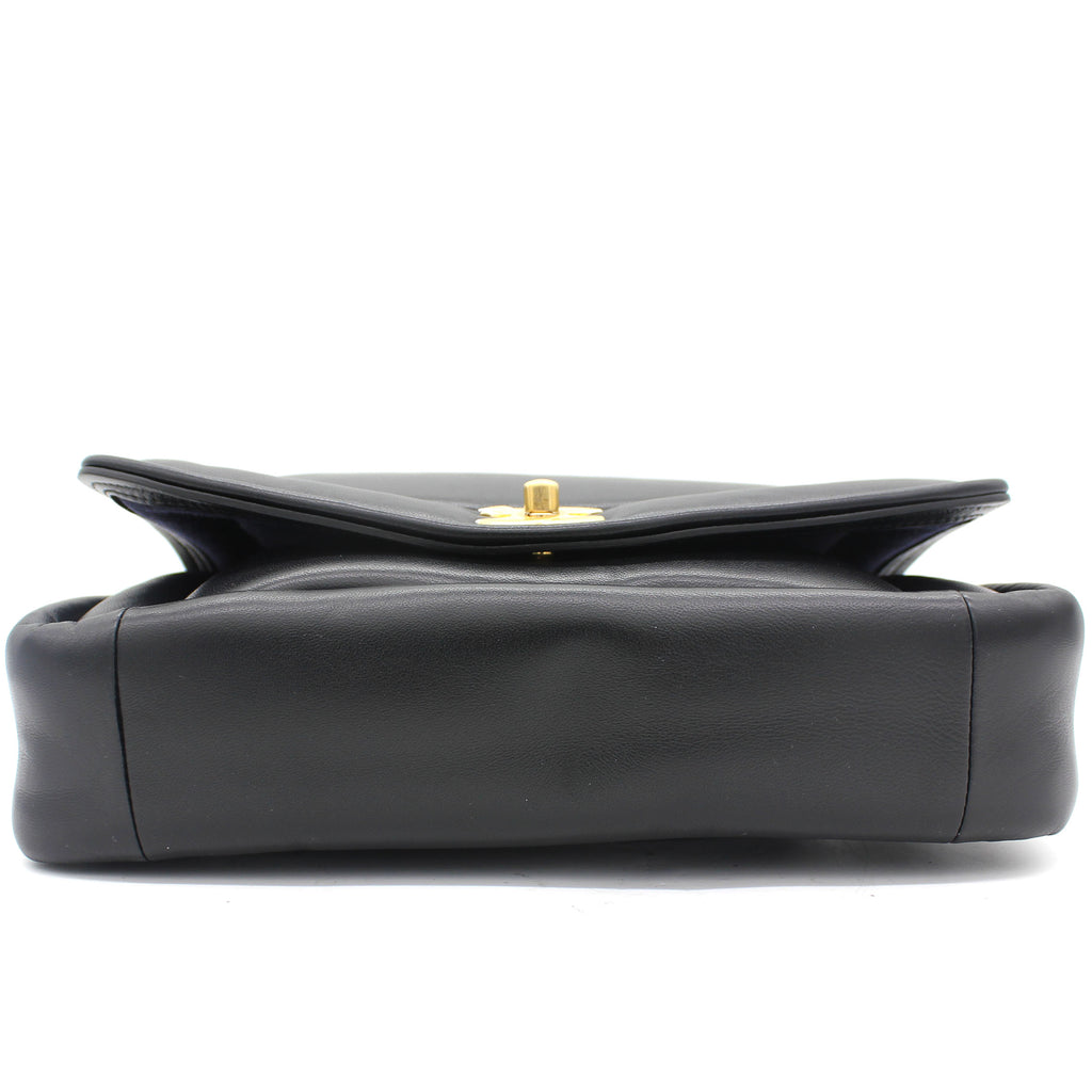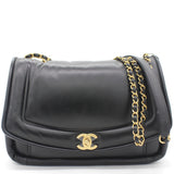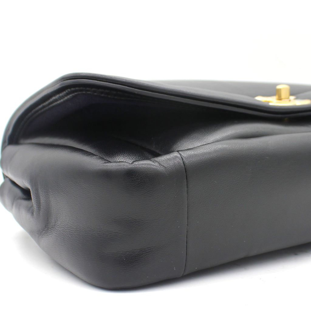 | This stylish shoulder bag is from the 2019 Fall Winter Collection Act 2, crafted in Luxurious black lambskin with antique gold-tone hardware and leather threaded chain strap featuring logo charm. It feature single patch back pocket for easy access and finished with navy blue fabric interior with a zipper pocket. The single and double chain options make it versatile bag to carry. It’s a great companion from day to night just from Chanel. |
