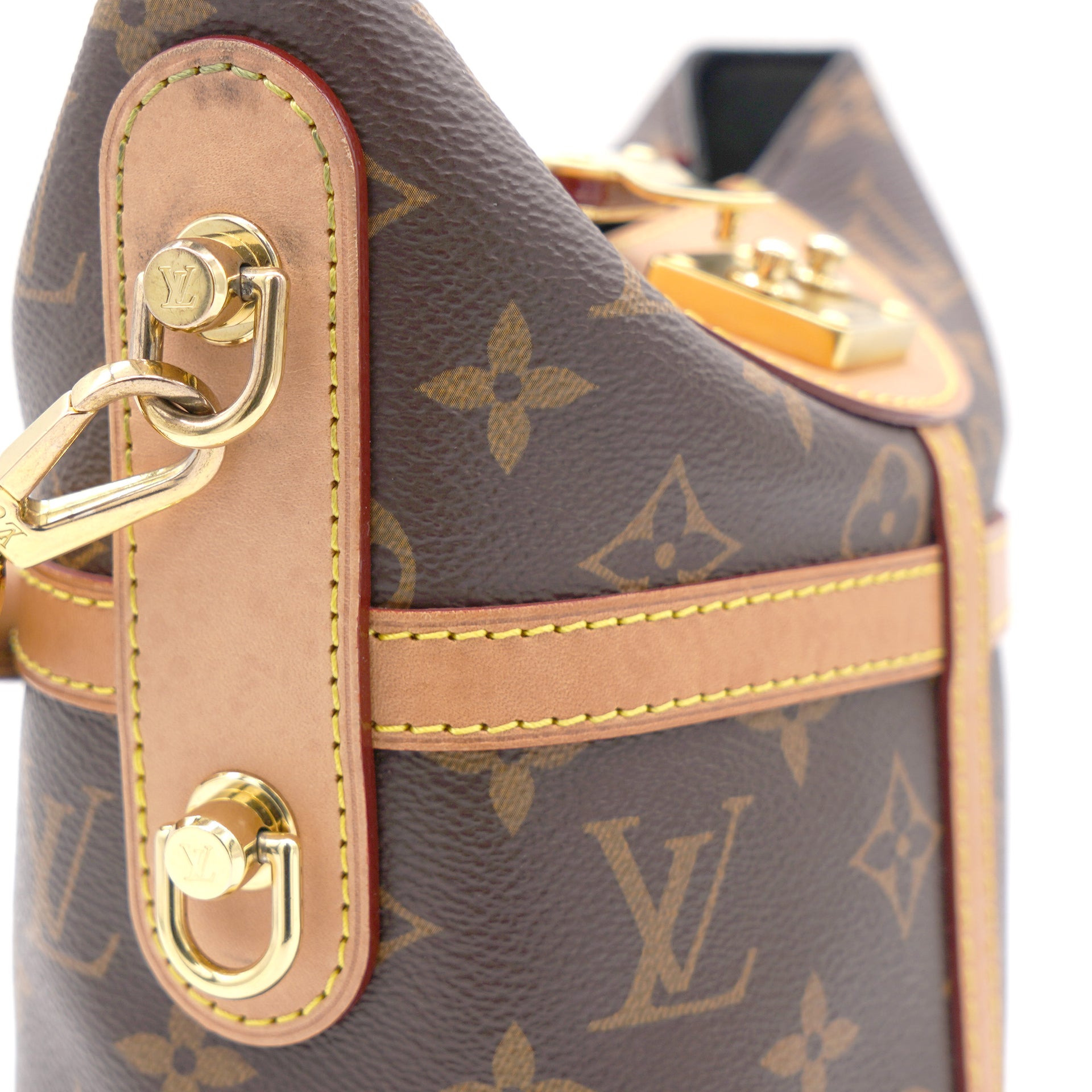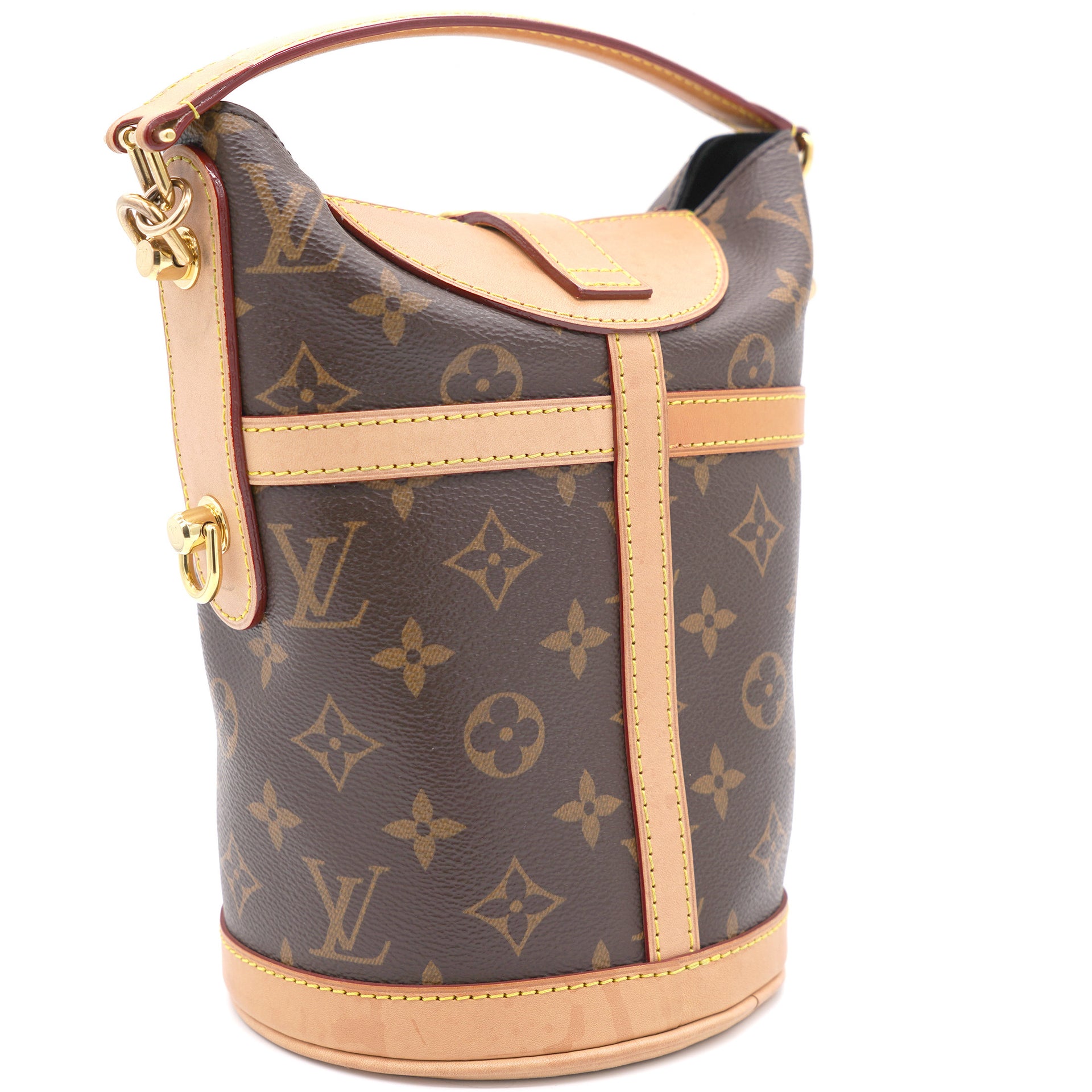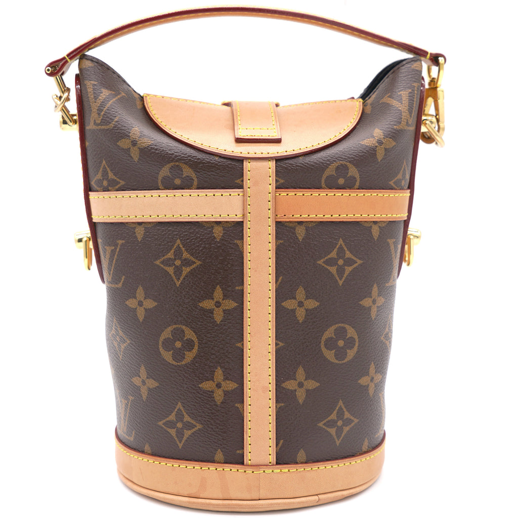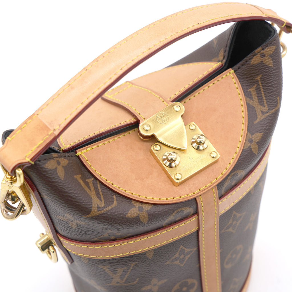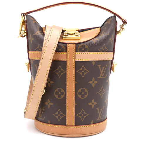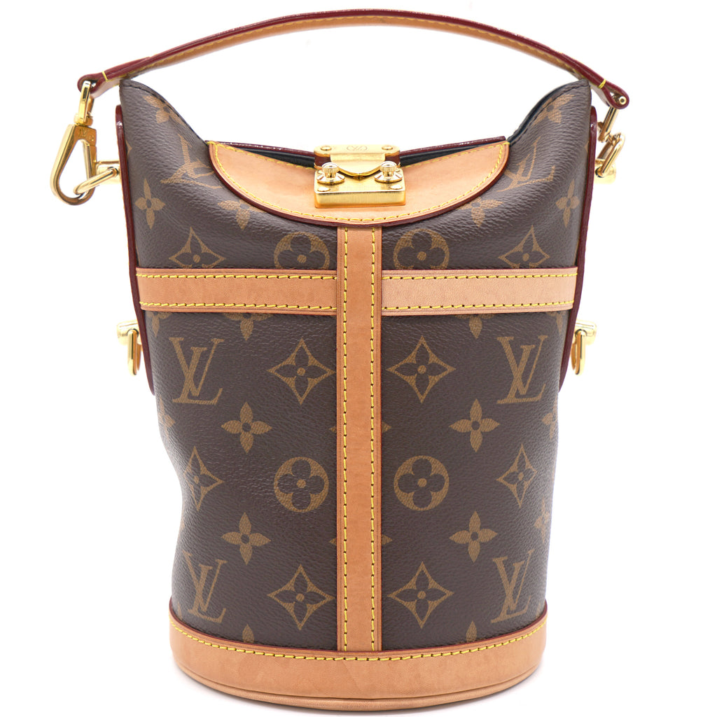 | The bucket shape reimagined by Nicolas Ghesquière as the Duffle tops the list of ‘’it bags’’ for SS 18. Crafted of supple Monogram canvas with a finely crafted signature S-Lock, it’s a stylish option for day-to-dark wear, carried by hand or over the shoulder |