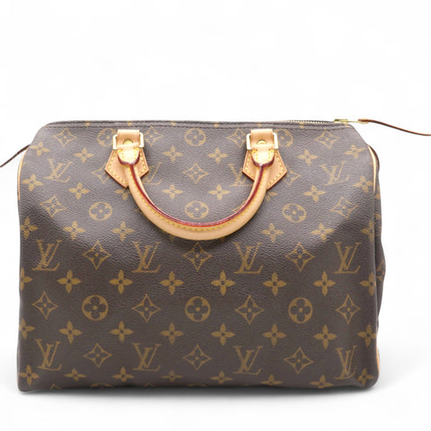 | This timeless handbag is crafted of Louis Vuitton monogram coated canvas in brown. The bag features vachetta cowhide leather rolled top handles and trim with brass hardware. The top zipper opens to a cocoa brown fabric interior with a hanging pocket. Please note that this is a strapless style. |