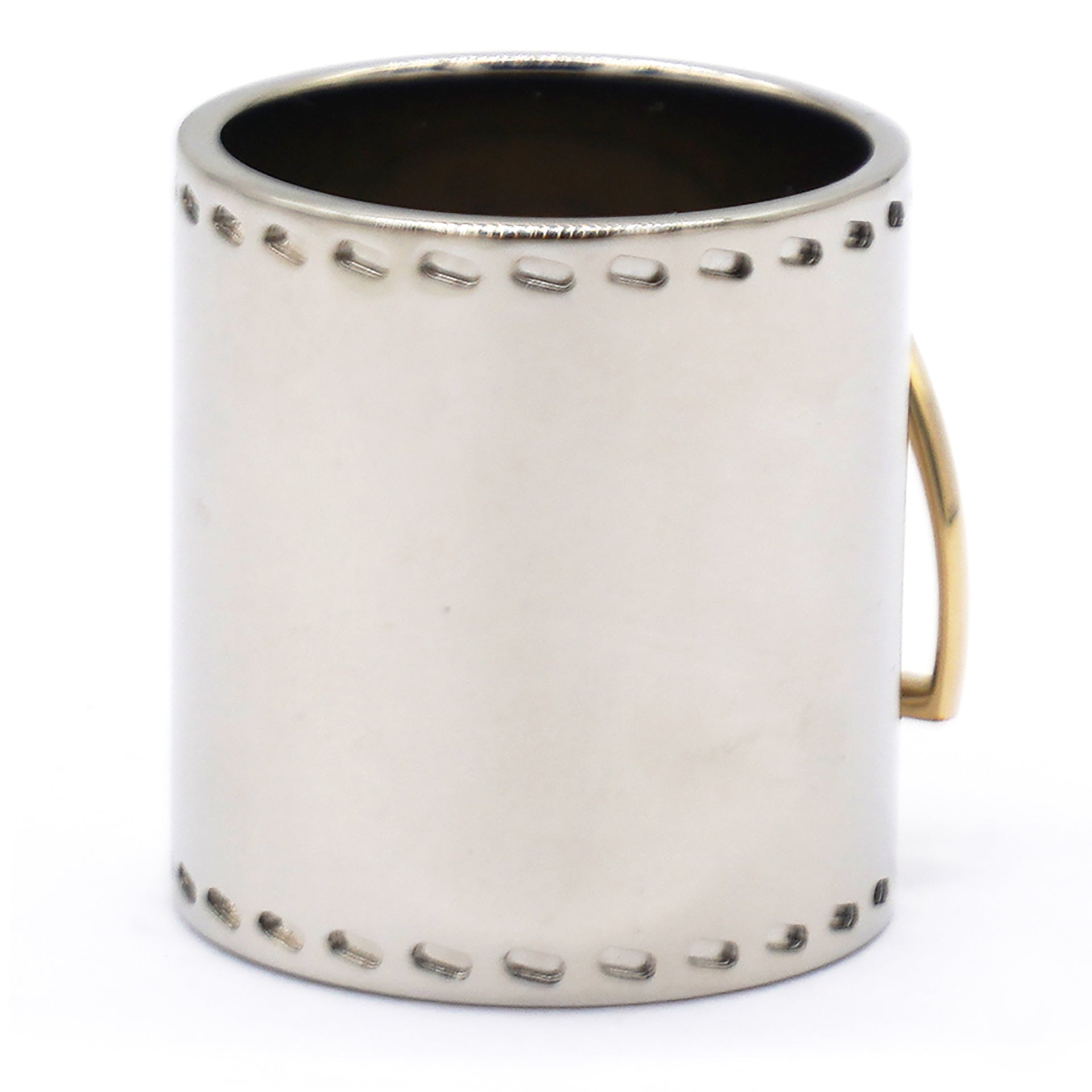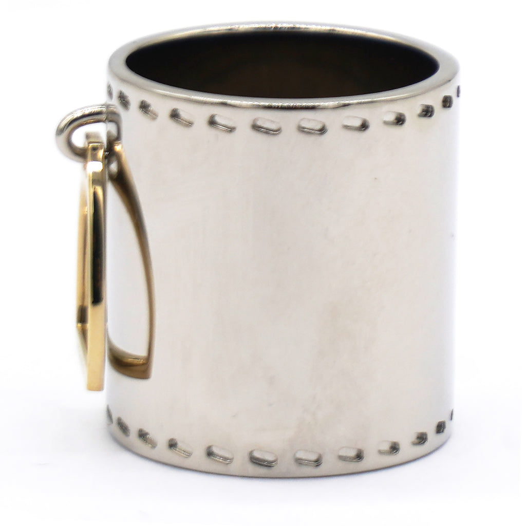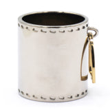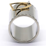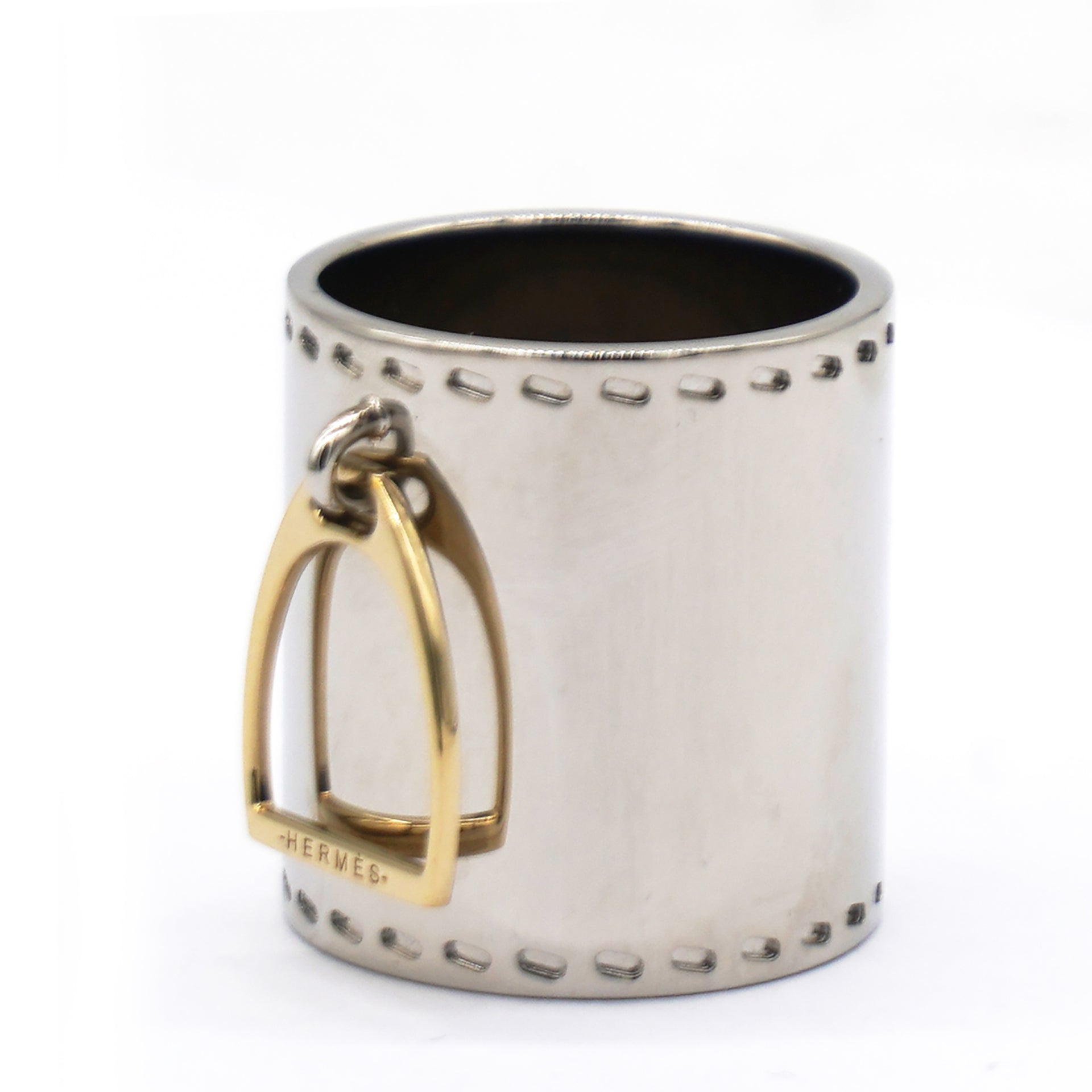 | This marvelous scarf ring is crafted in a silver tone and is used to secure the scarf at the neck or other creative ways. It features a charming horseshoe pendant. Enjoy this chic scarf ring for an exceptional look from Hermes! |
