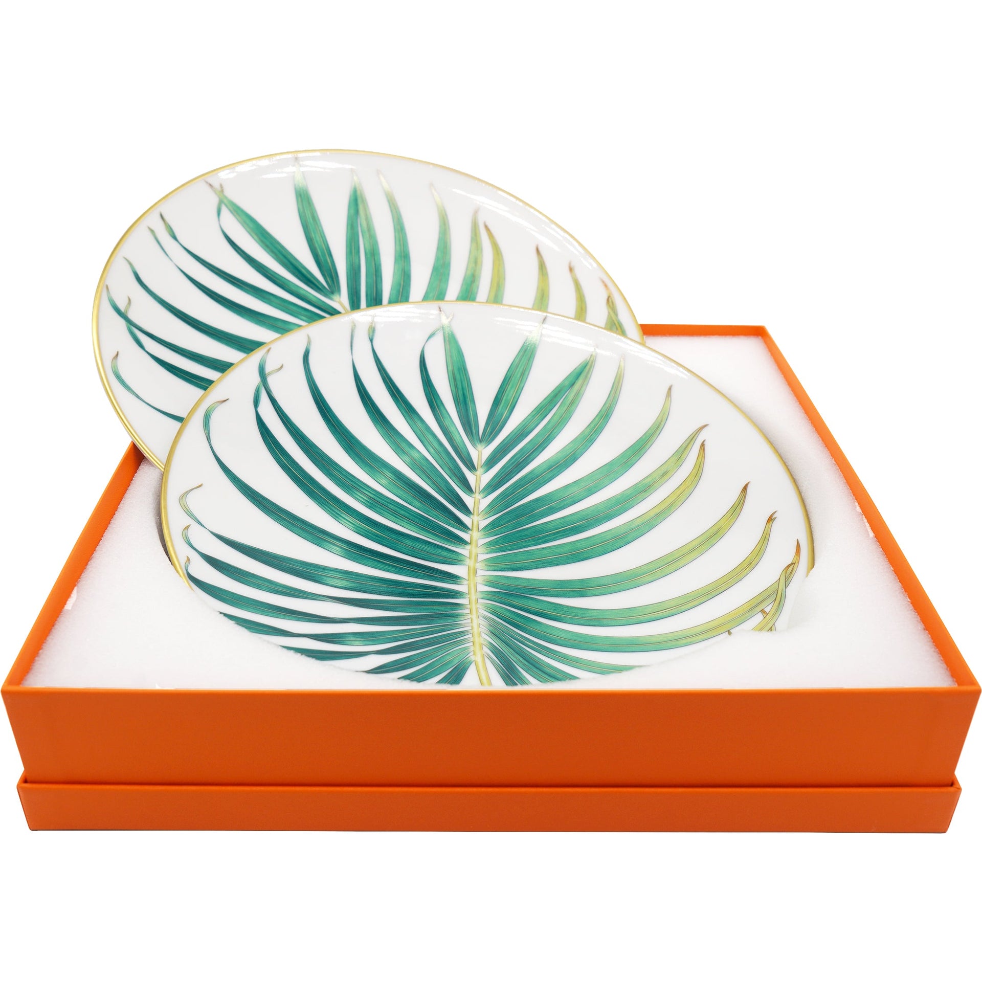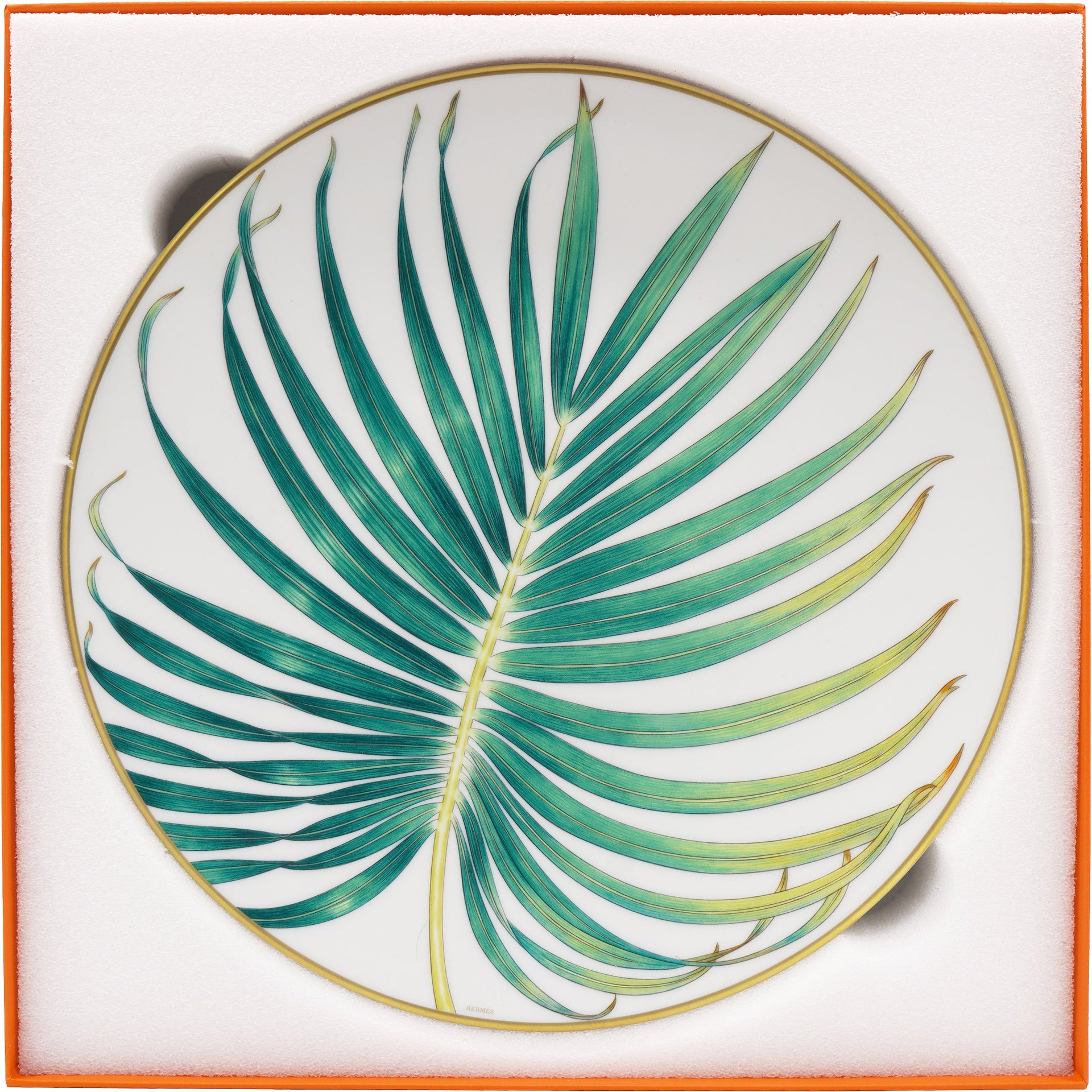 Tableware inspired by tropical mist nature, flower, palm leaves in the white summer heat. A must have for Hermes lover. Decorated using chromolithography
