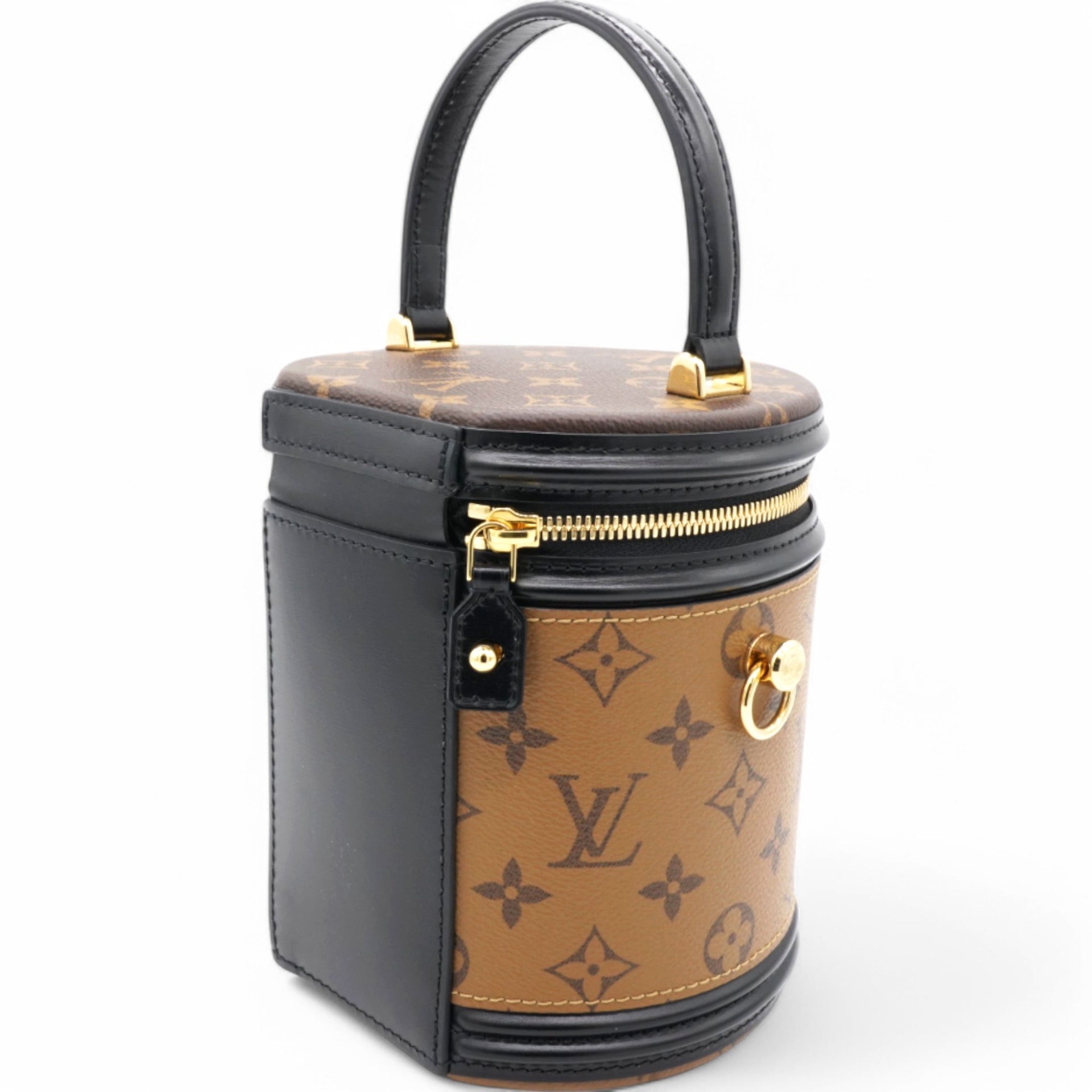| This chic bag is crafted of Louis Vuitton monogram and reverse monogram coated canvas. The bag features a black leather top handle, an optional black leather shoulder strap, and trim with polished brass hardware. The wrap-around zipper opens to a black microfiber interior. |
