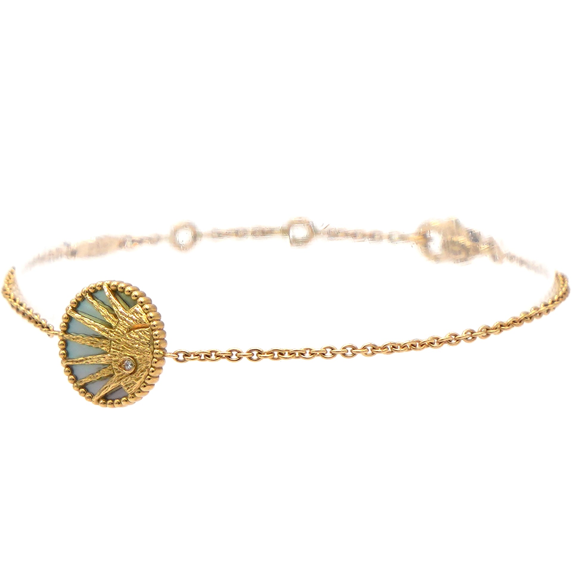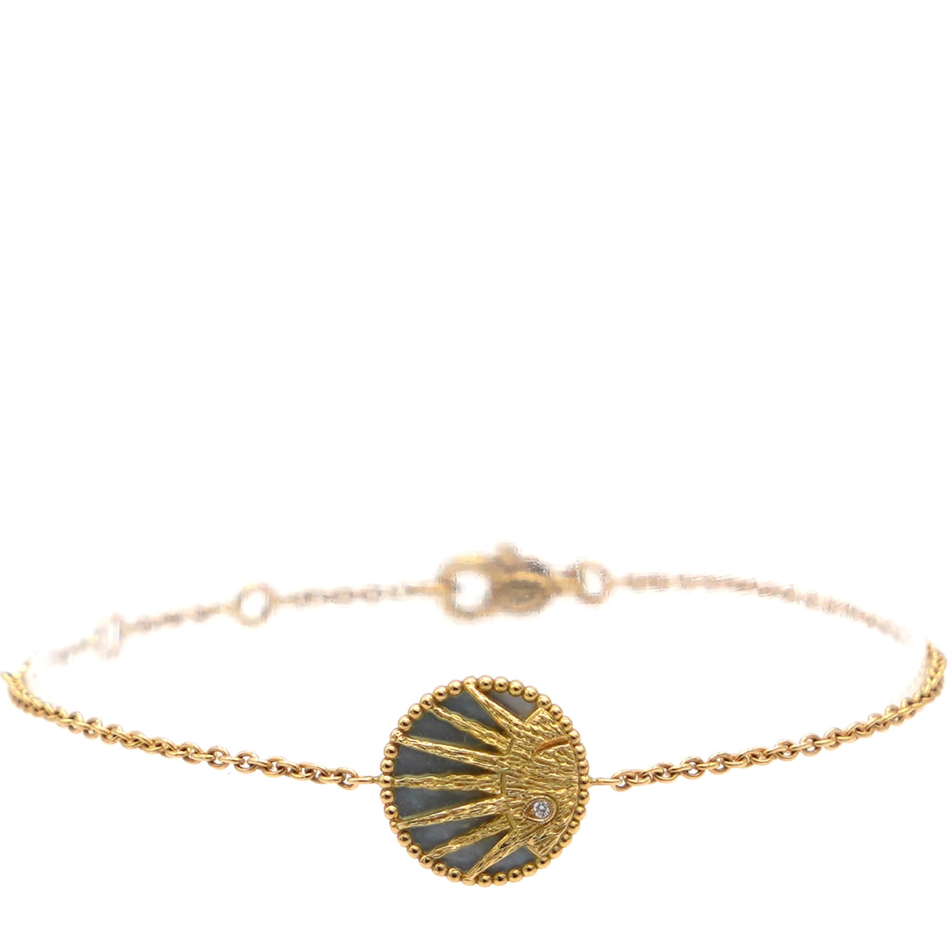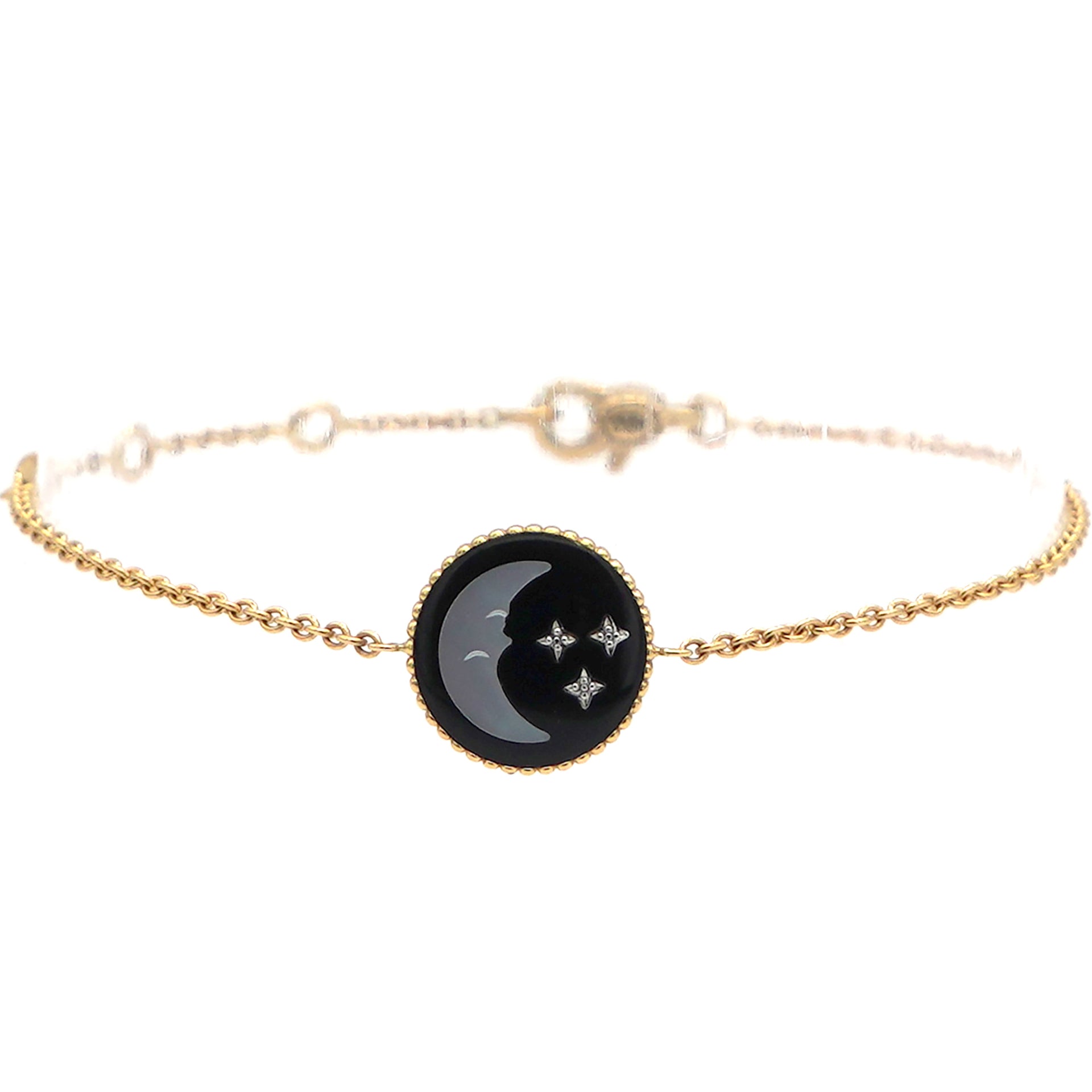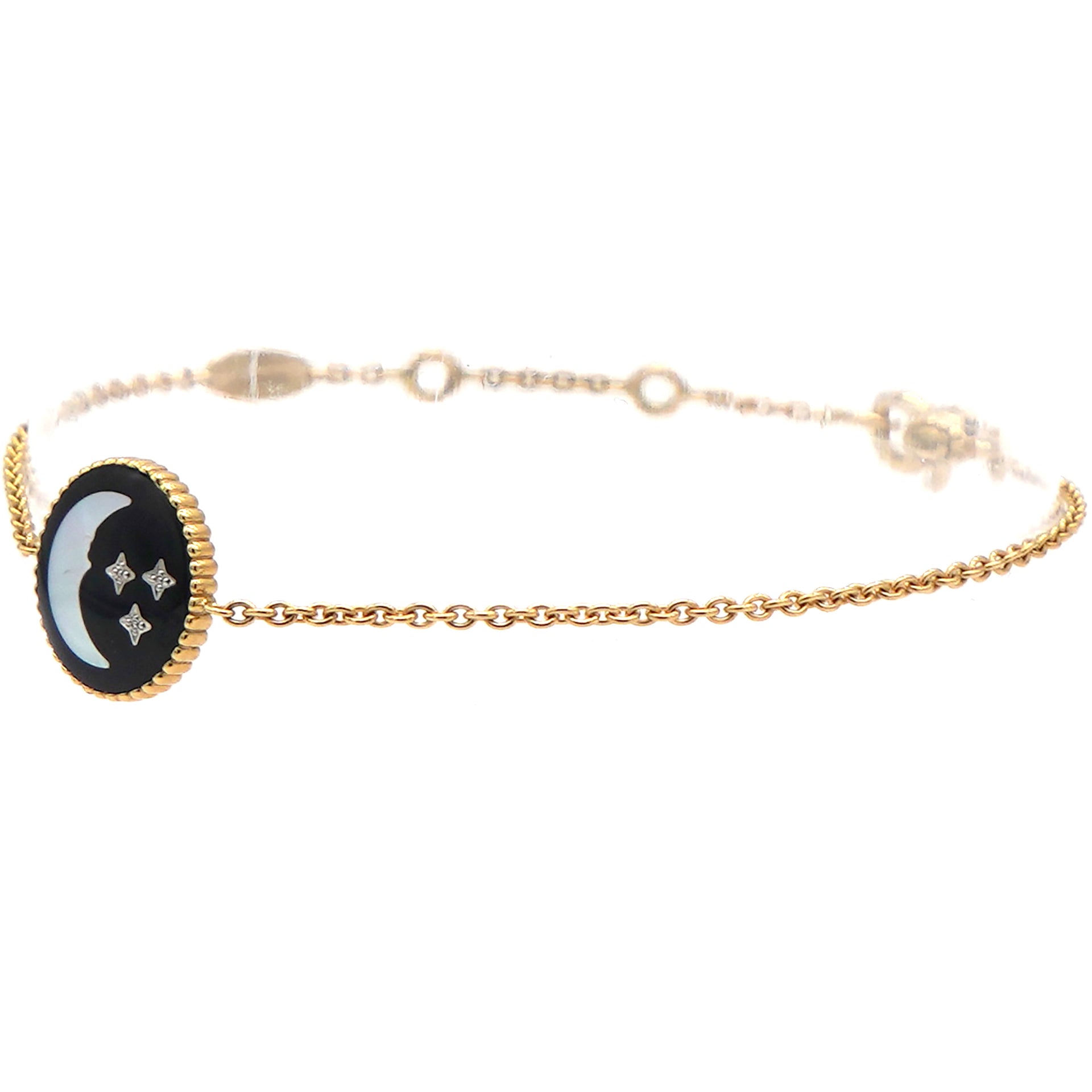 Material: 18k yellow and white gold; Diamond(0.01ct); Mother-of-pearl; Onyx Accessories:Box