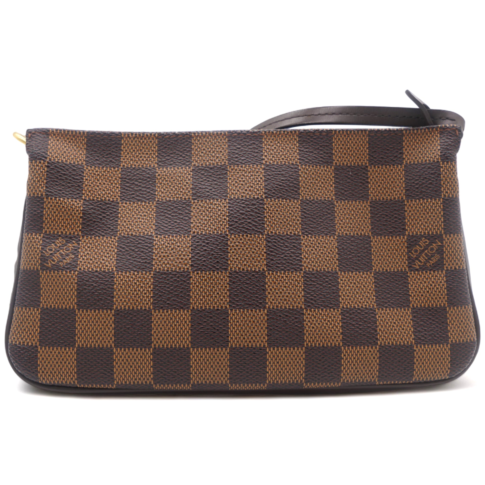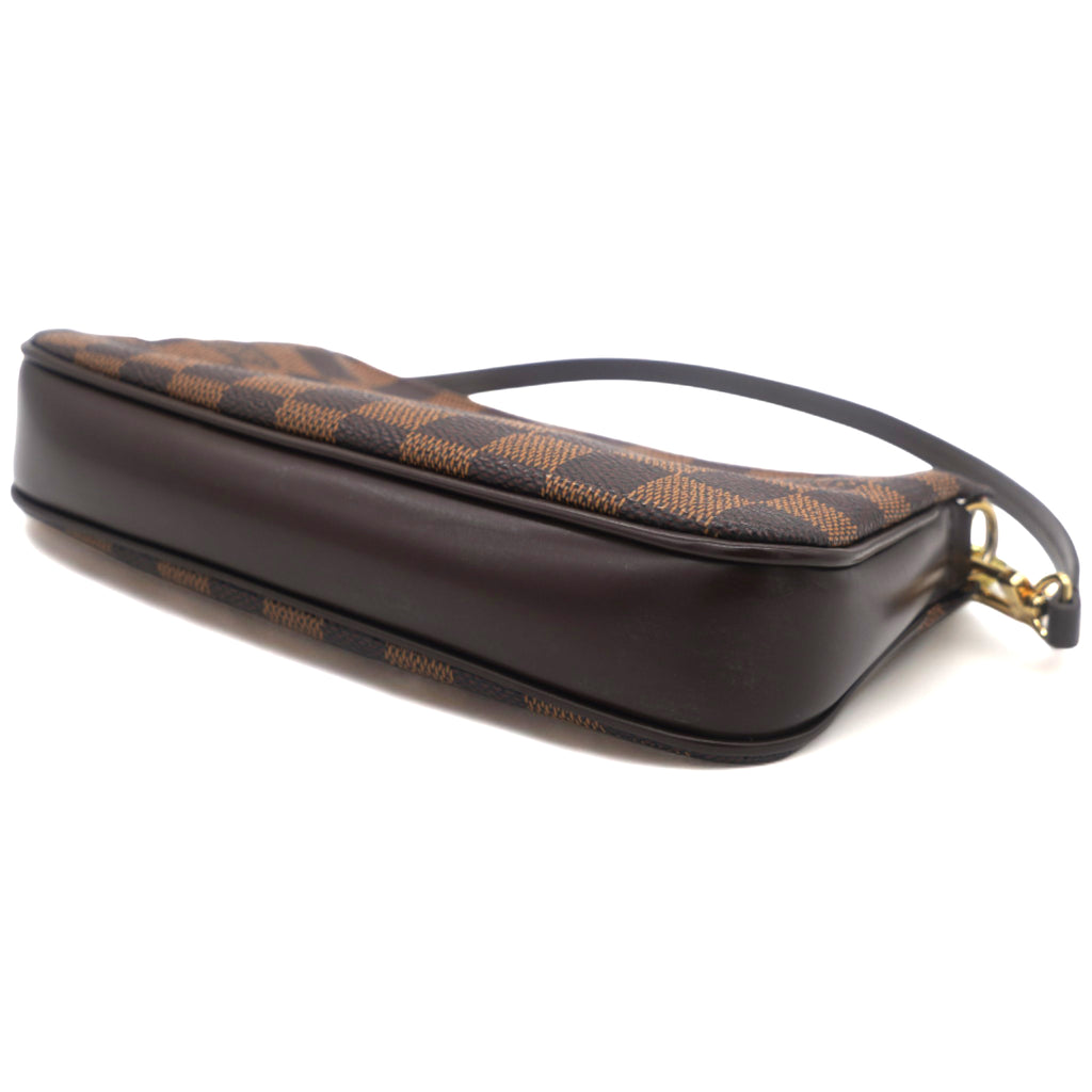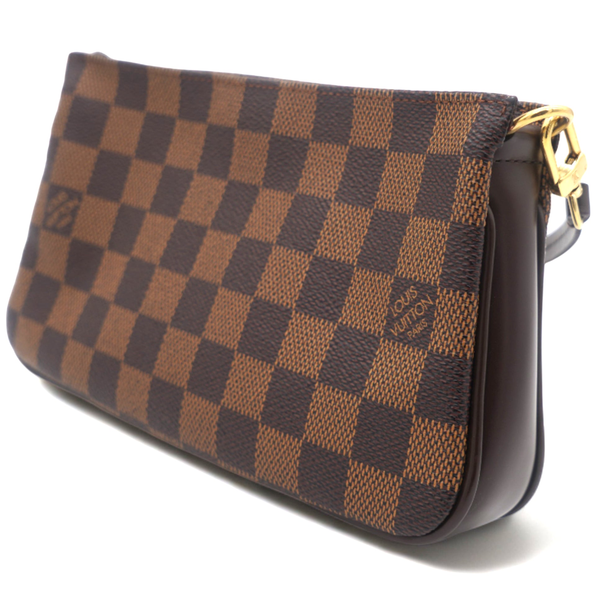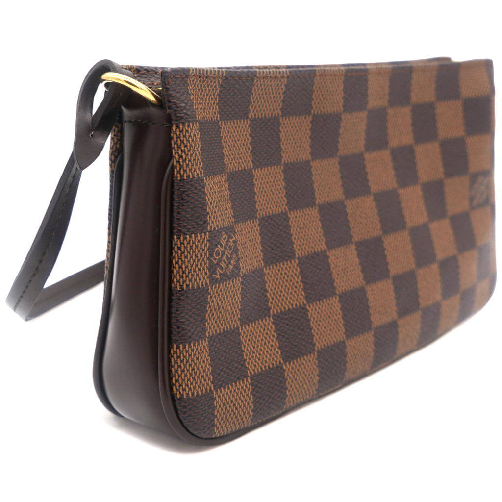 | This Navona clutch bag from Louis Vuitton Pre-Owned featuring brown, signature Damier Ebène canvas, leather trim, single detachable top handle, top zip fastening, main compartment, internal logo patch, gold-tone hardware and circa. |