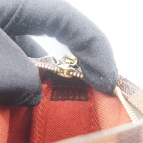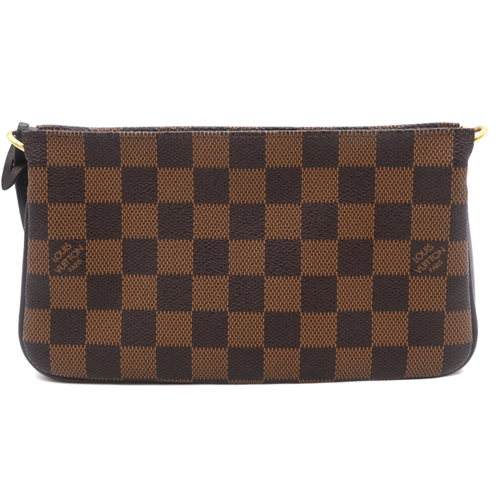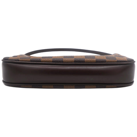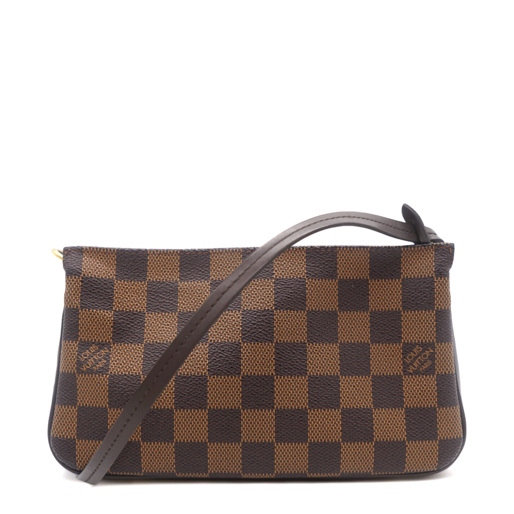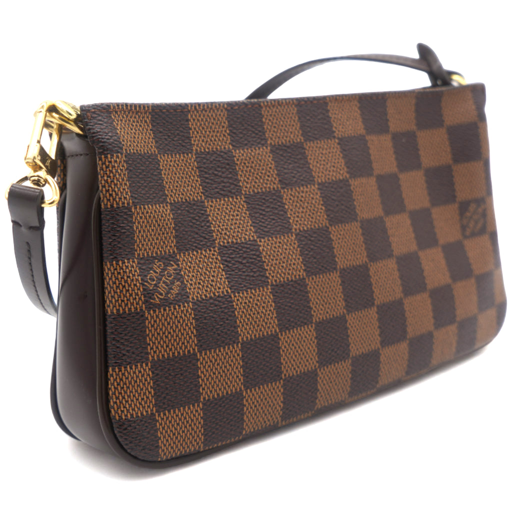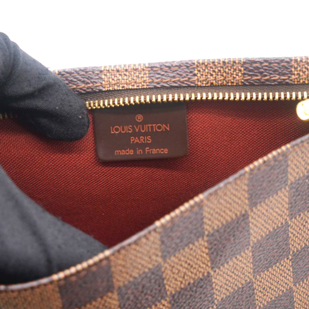 | This Navona clutch bag from Louis Vuitton Pre-Owned featuring brown, signature Damier Ebène canvas, leather trim, single detachable top handle, top zip fastening, main compartment, internal logo patch, gold-tone hardware and circa. |