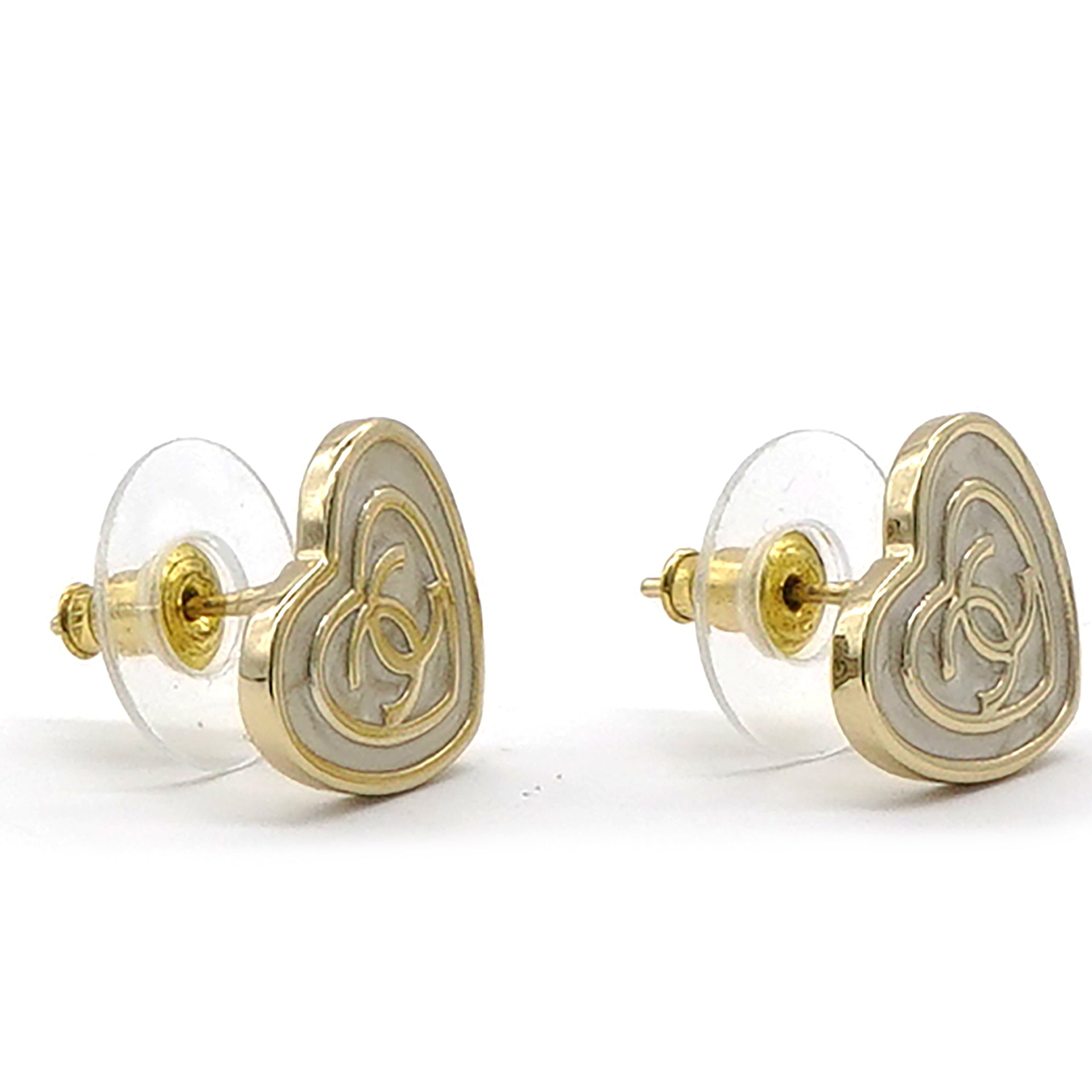 | Elevate your accessory collection with these Chanel White & Gold Heart Earrings, a stunning blend of classic design and modern luxury. Featuring a beautifully crafted heart shape in pristine white, accented by a lustrous gold rim, these earrings exude elegance and charm. Perfect for adding a touch of sophistication to any outfit, they are ideal for both day-to-day wear and special occasions. With their iconic Chanel craftsmanship, these earrings are a true statement piece, capturing both romance and refined style in one timeless design. |