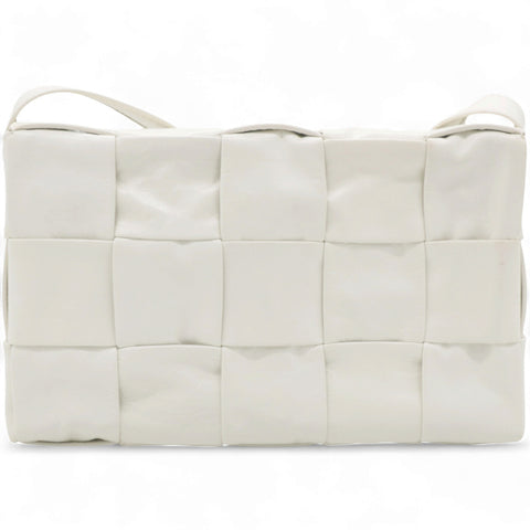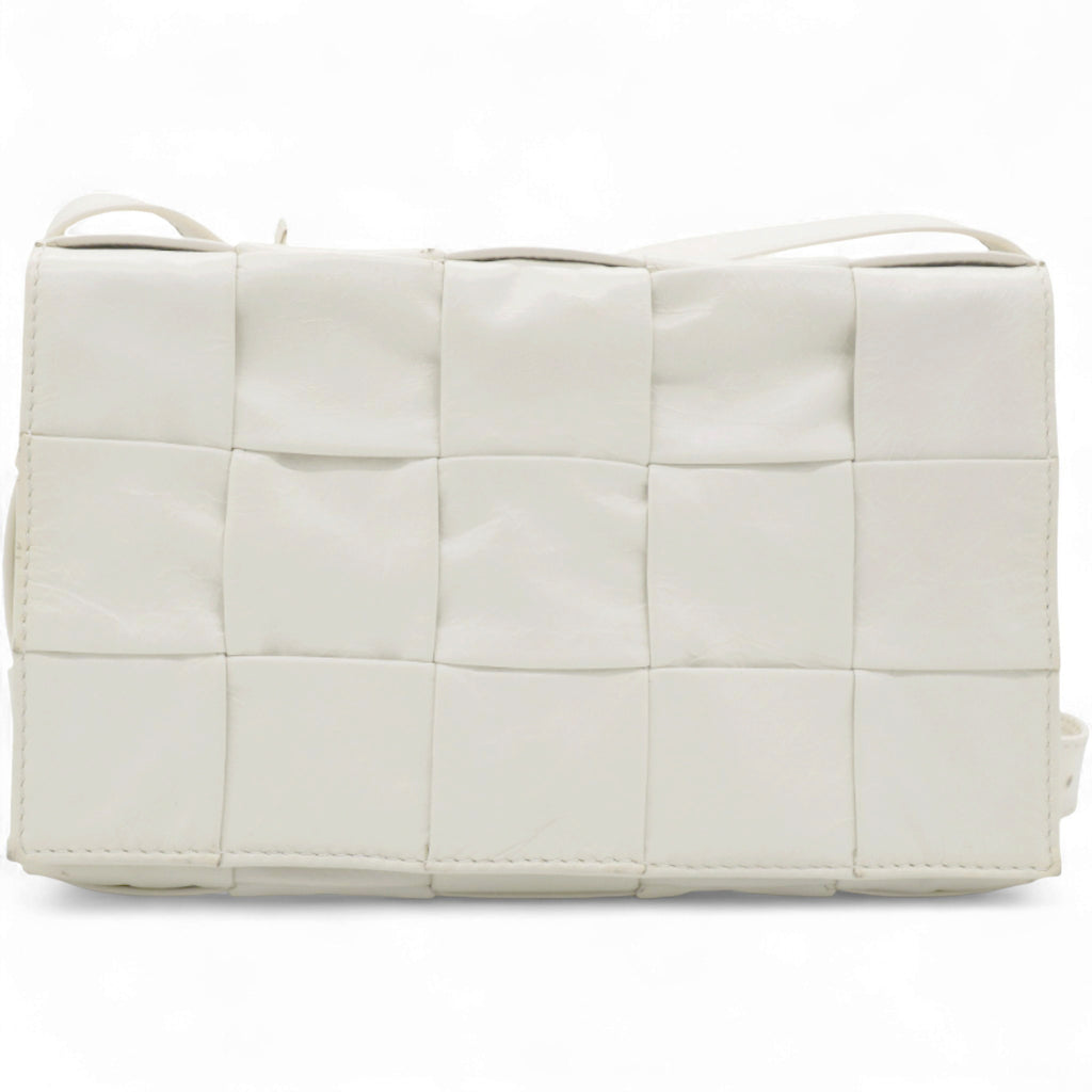 Lambskin Maxi Intrecciato Small Cassette Crossbody Bag White