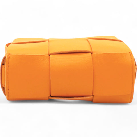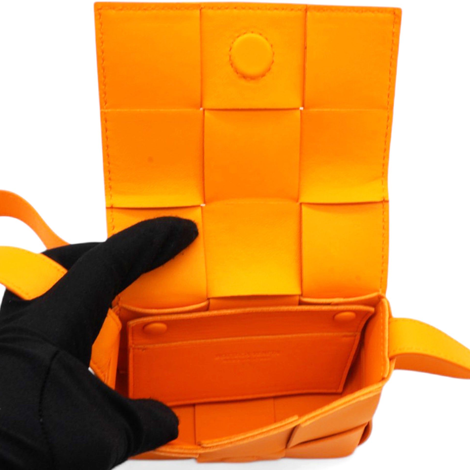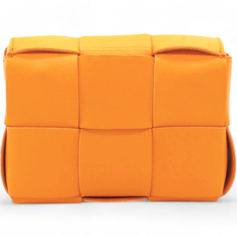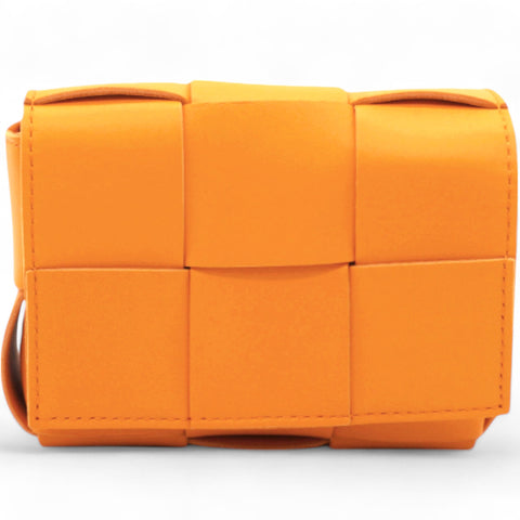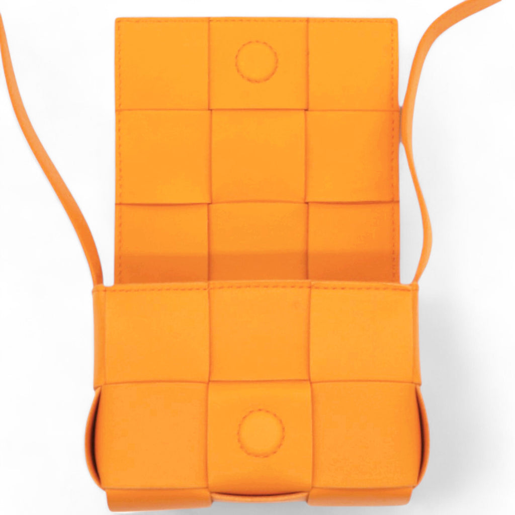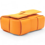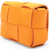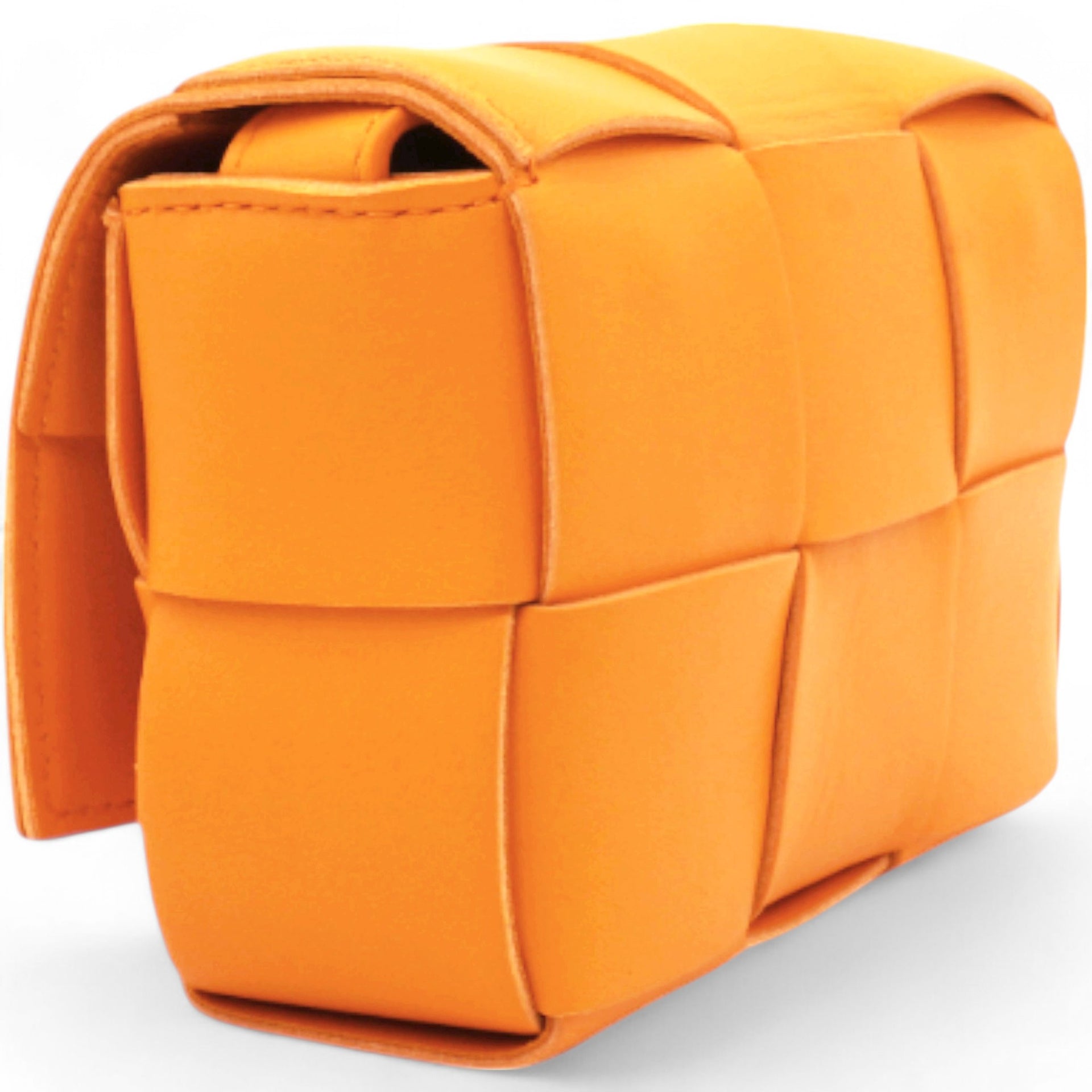 | This stylish messenger bag is crafted of leather in orange. The bag features a matching adjustable crossbody strap and a front flap that opens to a matching interior with a card slot. |