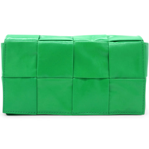 | This stylish messenger bags crafted of tightly woven intrecciato bright green leather. The bag features a matching adjustable belt strap with and a front flap. The flap opens to a leather interior with a hanging patch pocket. |