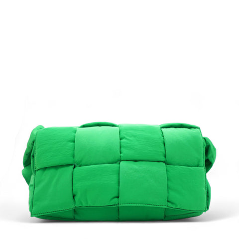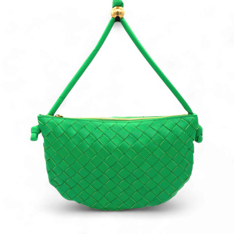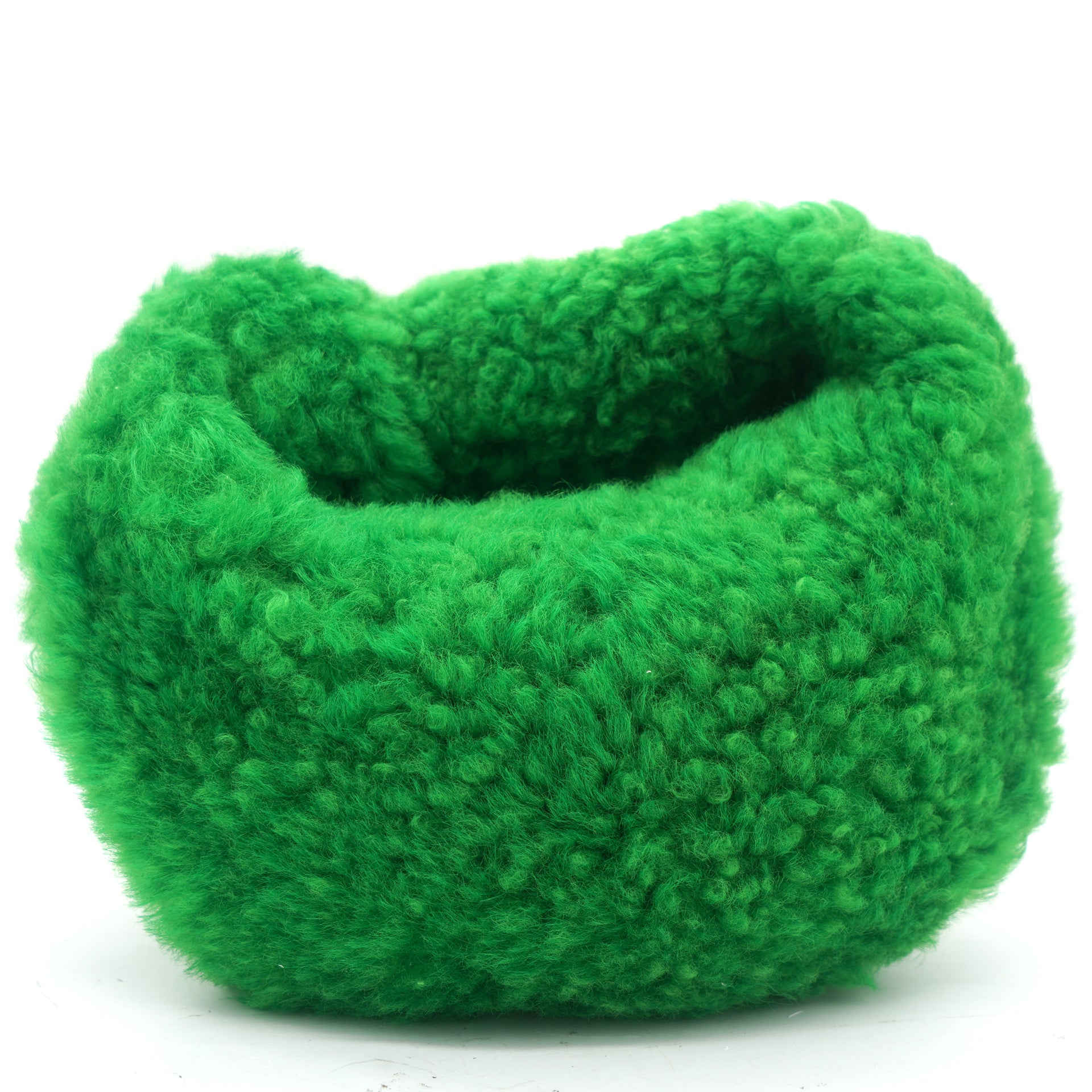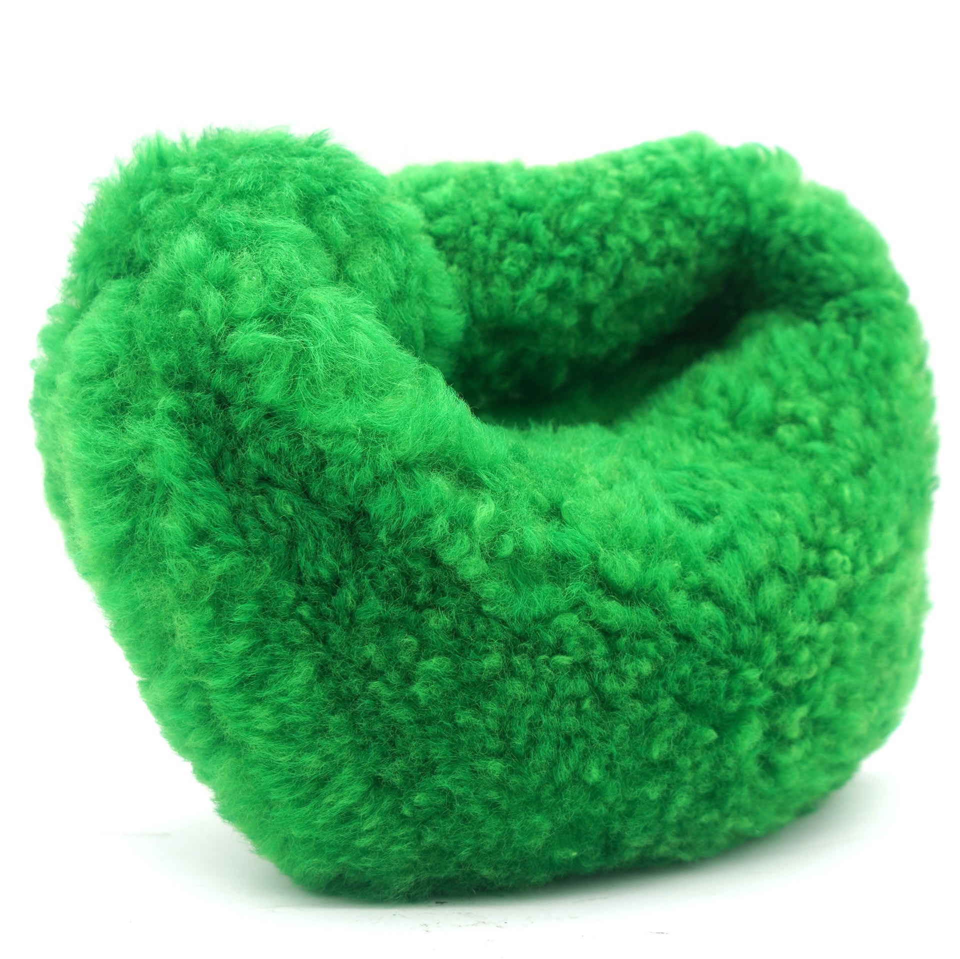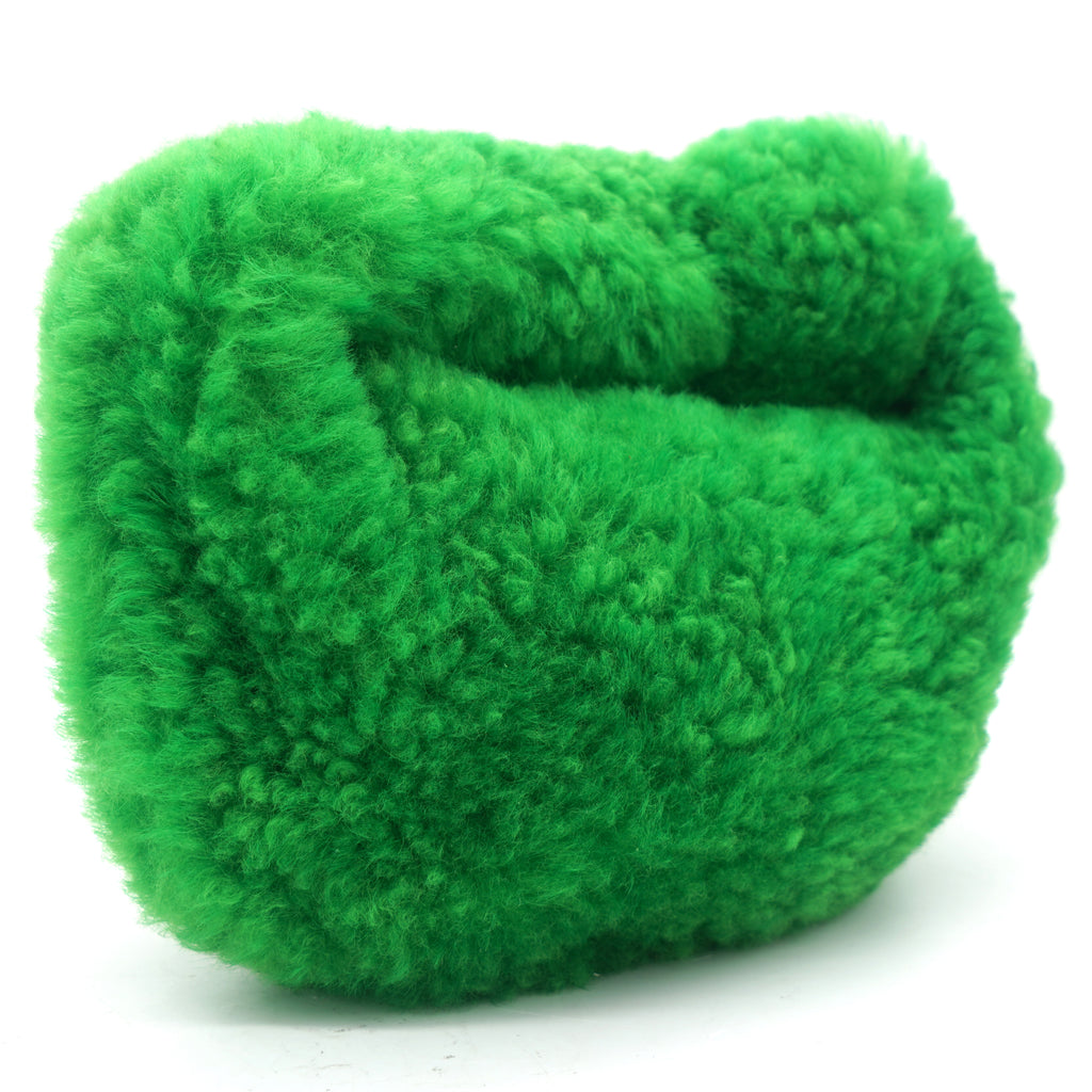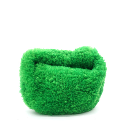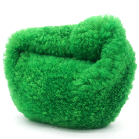 | This stylish shoulder bag is beautifully crafted of soft shearling in green. The shoulder bag features a matching handle and a gold top zipper that opens to a compact matching leather interior. |