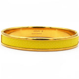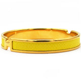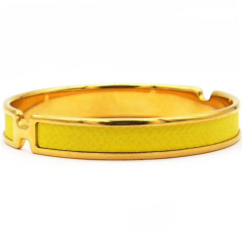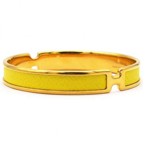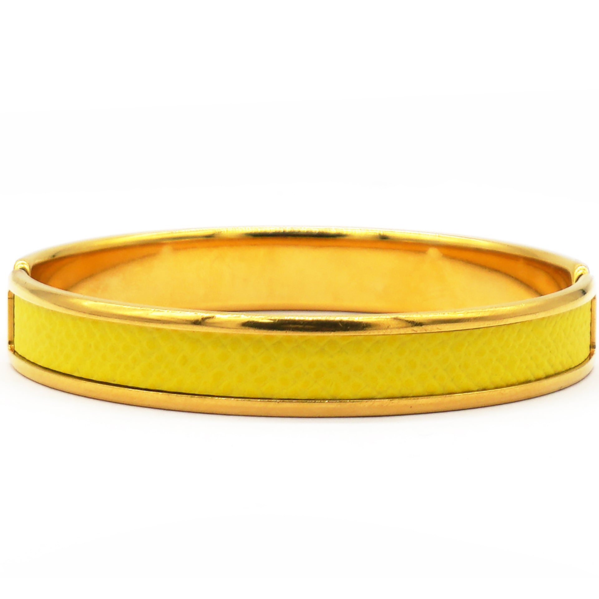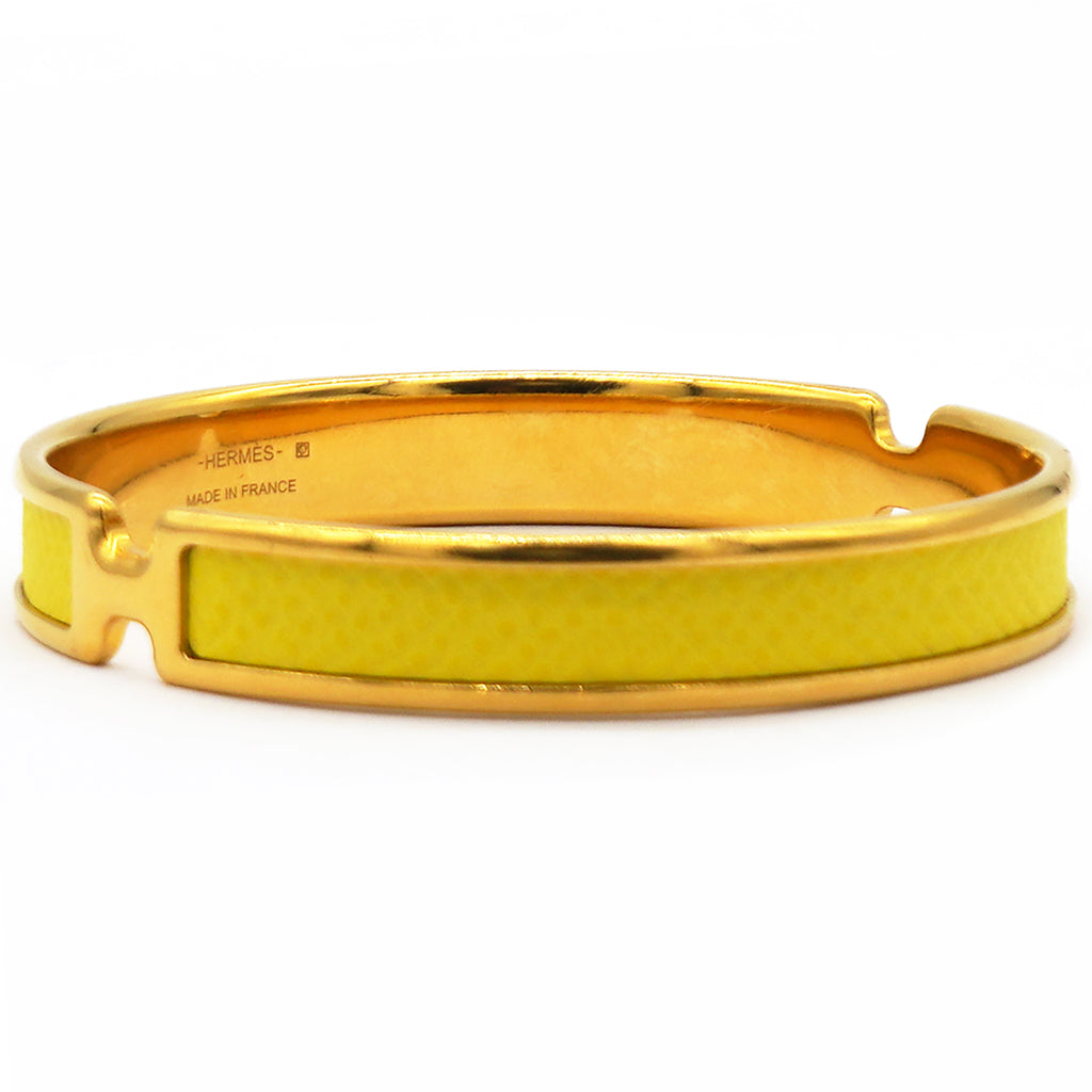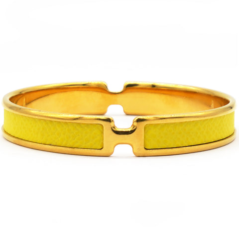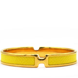 | This striking H motif bracelet is crafted of calfskin in a shade of yellow on a rose gold plated cuff. |