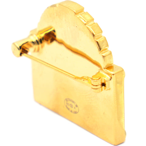 | Insipired by the flagship 31 Rue Cambon Boutique entrance architecture, this half dome shape with rectangular brooch surely is a collector piece. Decorate your favorite Chanel tweed jacket, cardigan or bag. |