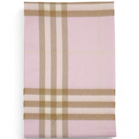 | This authentic Burberry Giant Check Scarf offers an updated version of the British fashion house's iconic check design. Fabricated in Scotland from 100% cashmere, this oblong scarf presents a giant check motif in ice pink, beige, and ivory. A fringe trim embellishes the extreme ends for a luxurious finishing touch. Pair this designer scarf with your favorite quilted coat, a luxury satchel, and leather booties to be weekend ready! |