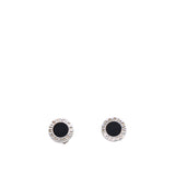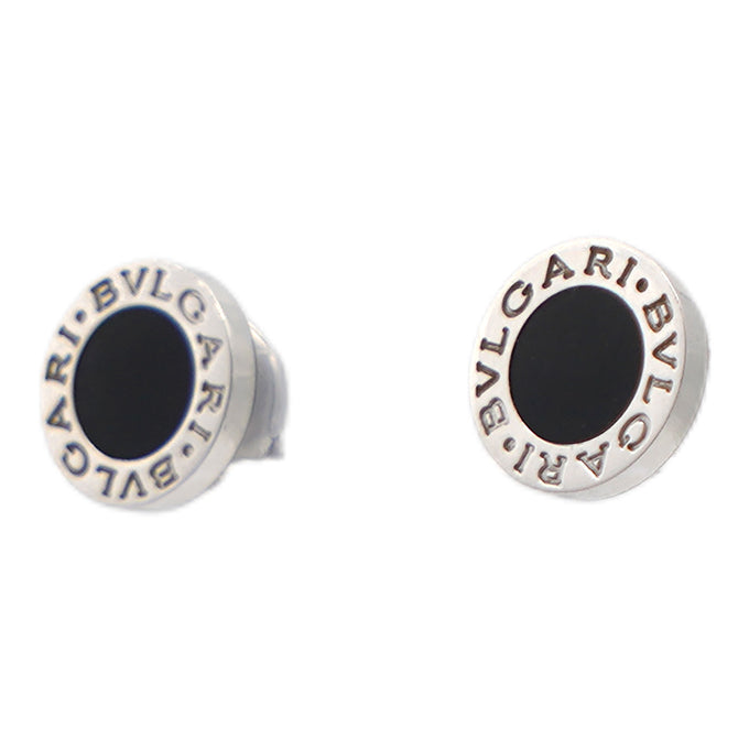 | These are authentic BULGARI 18K White Gold Black Onyx BVLGARI BVLGARI Stud Earrings. These stylish earrings of feature black onyx encircled by the BVLGARI name logo on a flat disk of 18 karat white gold. This beautiful set of earrings defines the classical elegance of BVLGARI! |