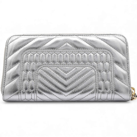 Authentic Leather Long Wallet Serpenti Forever Silver Rare