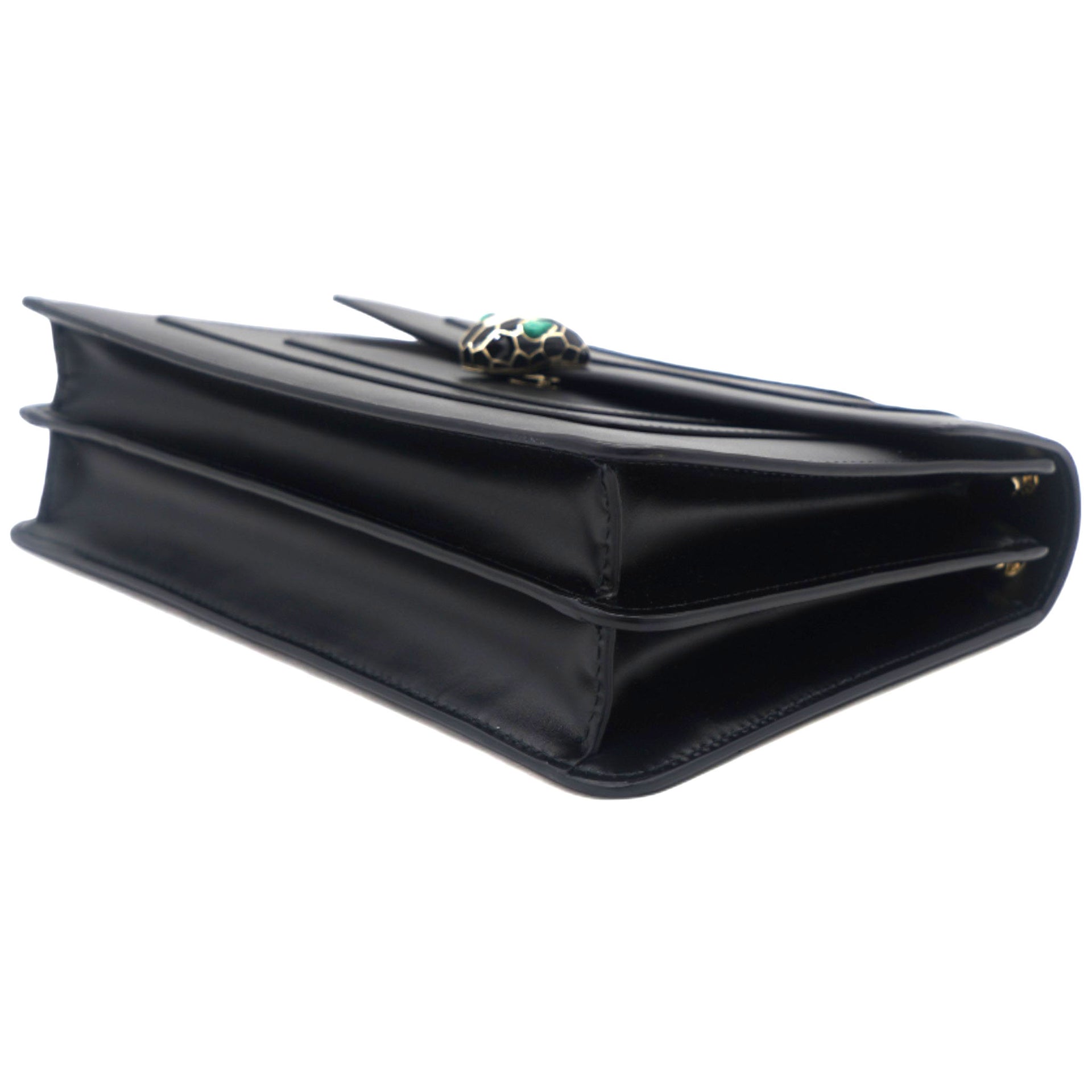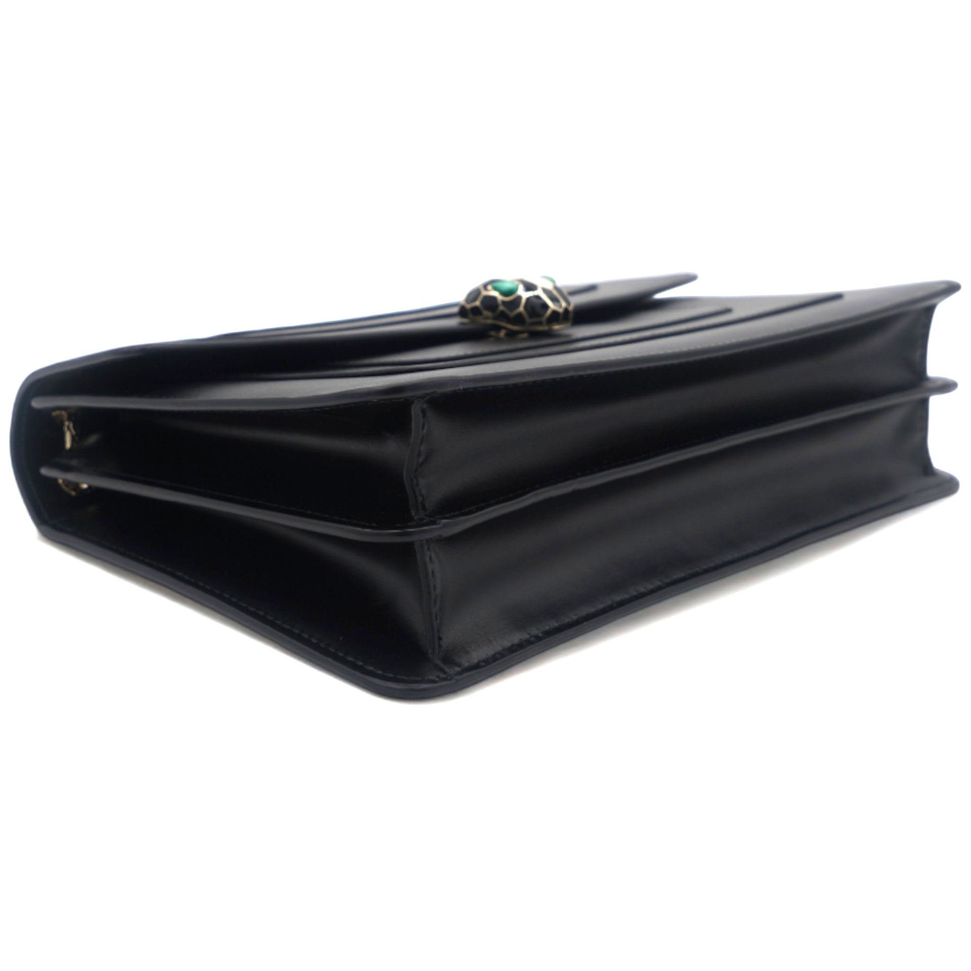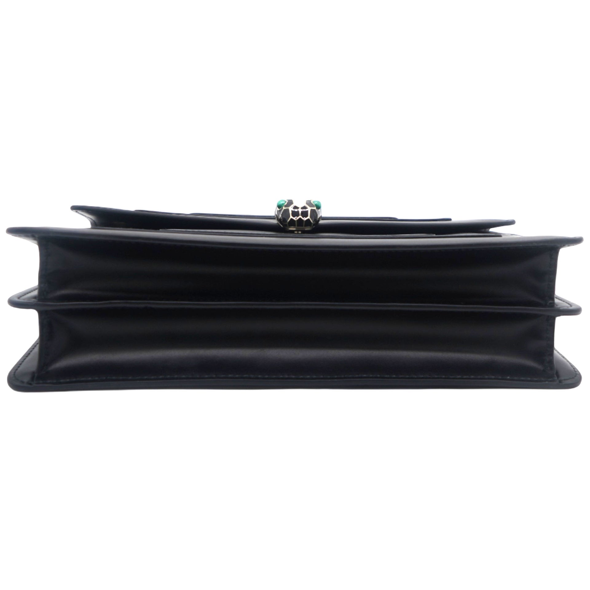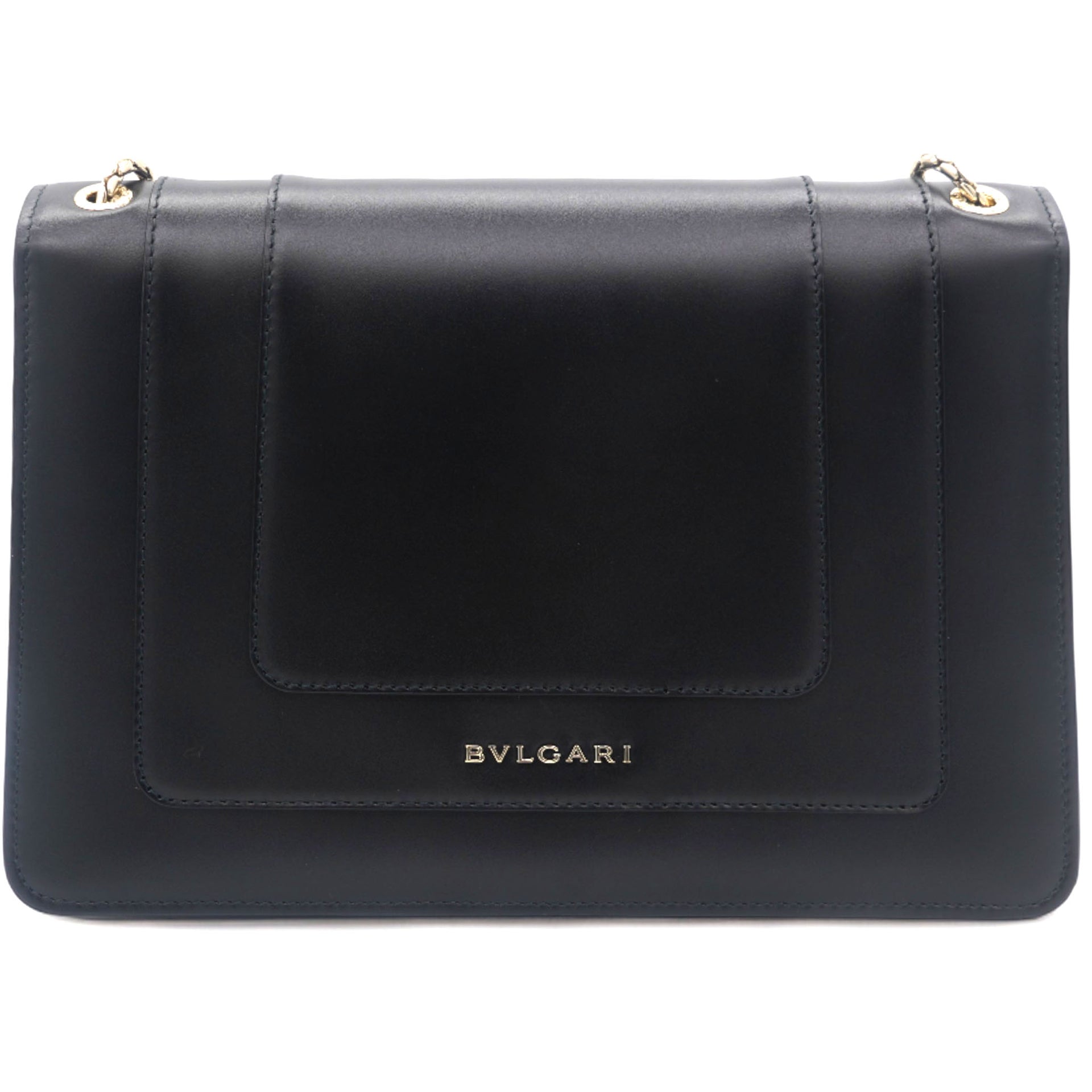 | Dazzle the eyes that fall on you when you swing this stunning Bvlgari creation. Crafted from leather in a breathtaking black hue, the shoulder bag is styled with a flap that has the iconic Serpenti head closure. The bag has a spacious canvas interior and a gorgeous gold-tone chain link for an easy carrying experience. |