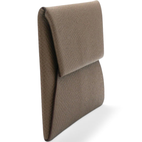 This chic coin purse is crafted of grained epsom calfskin leather in grey and opens with a snap closure to a matching interior.