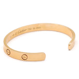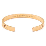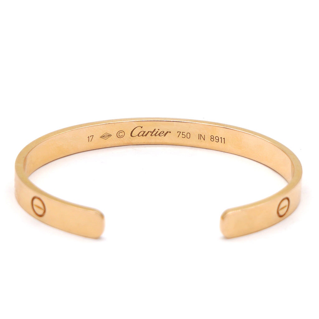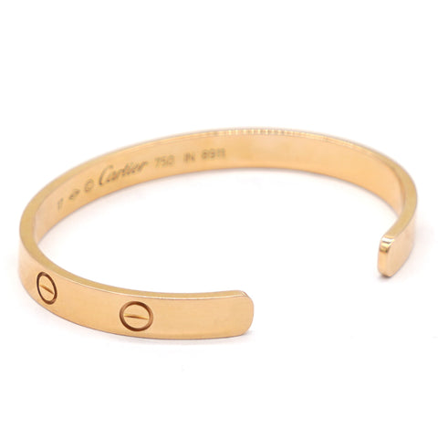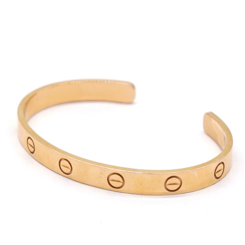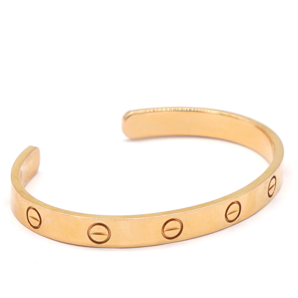| One of the most loved designs from the house of Cartier, this stunning love open bracelet is an icon of style and luxury. Constructed in 18k Rose gold, this bracelet feature screw details all around the surface as symbols of a sealed and secured bond with open back. This bracelet sure to become your everyday essential. |