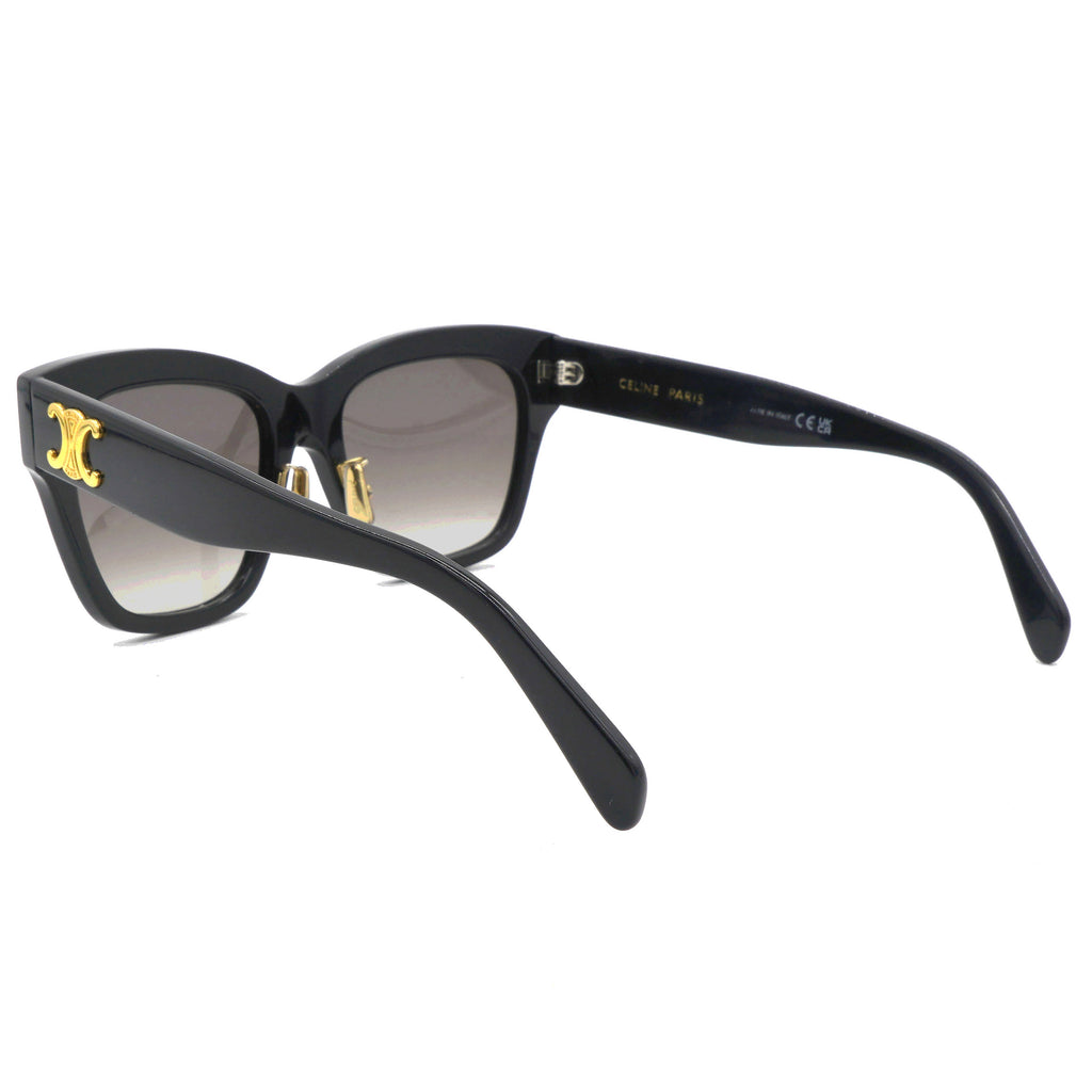 | These sunglasses feature black acetate rims, gradient lenses, and gold Triomphe logos at the temples. |