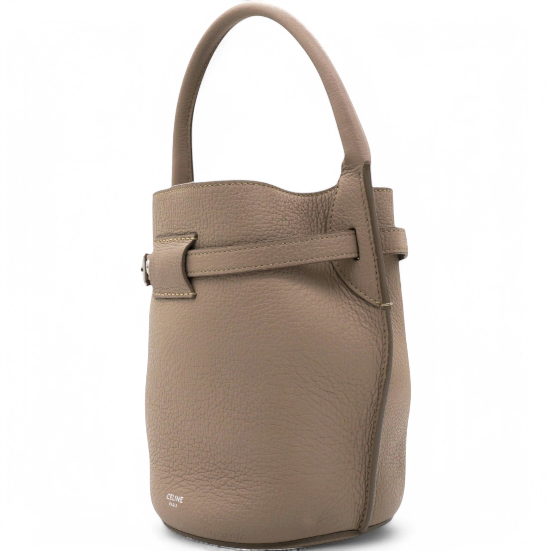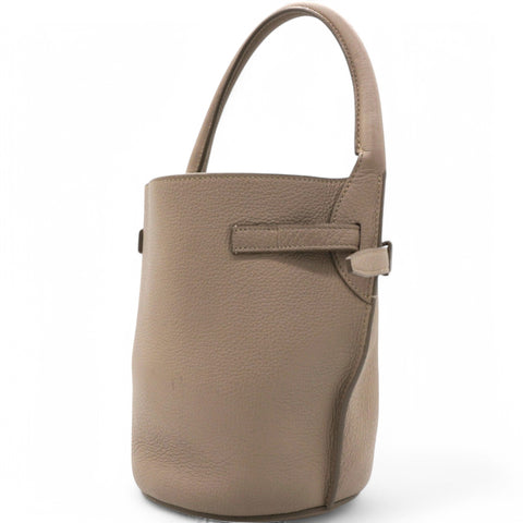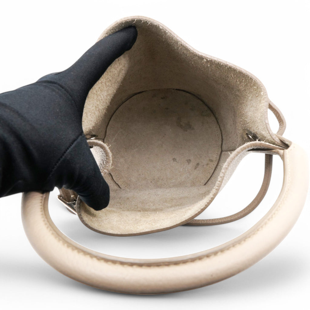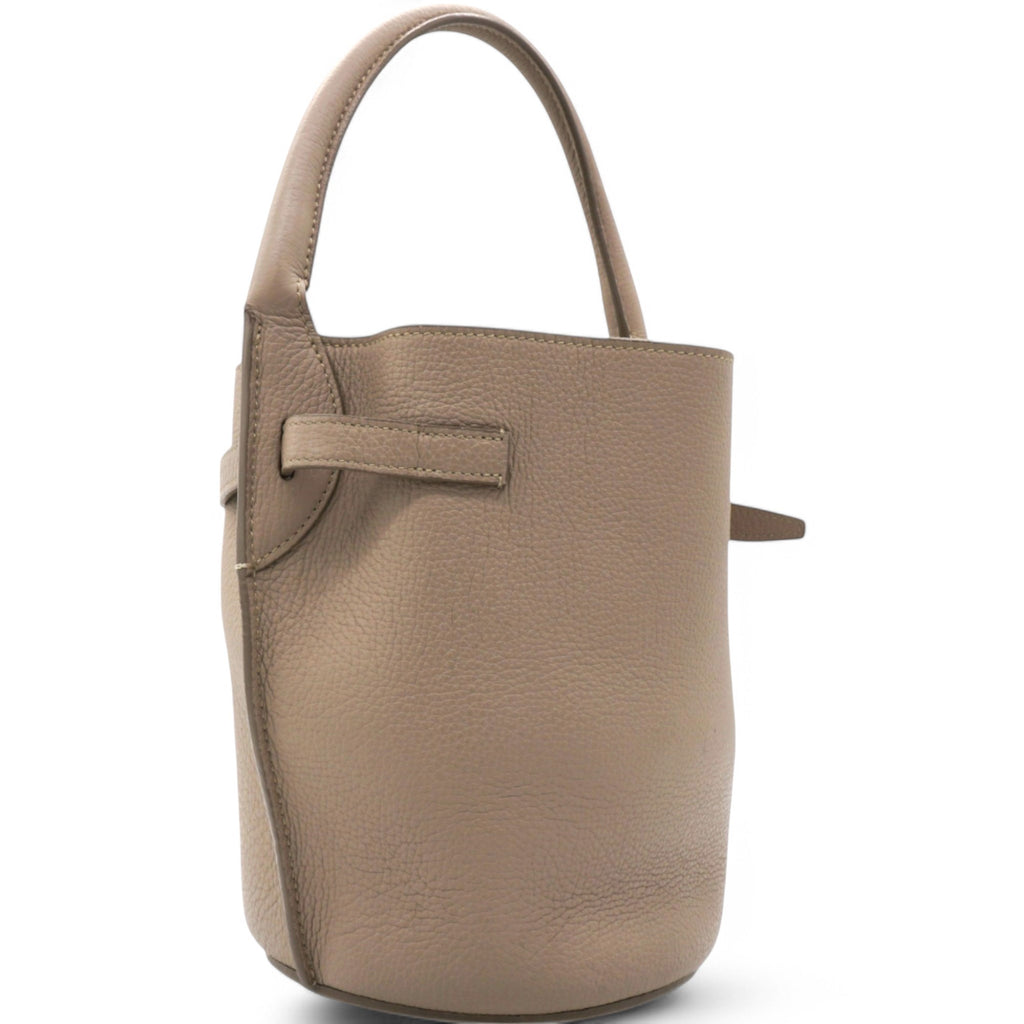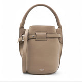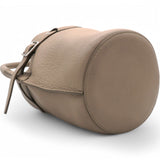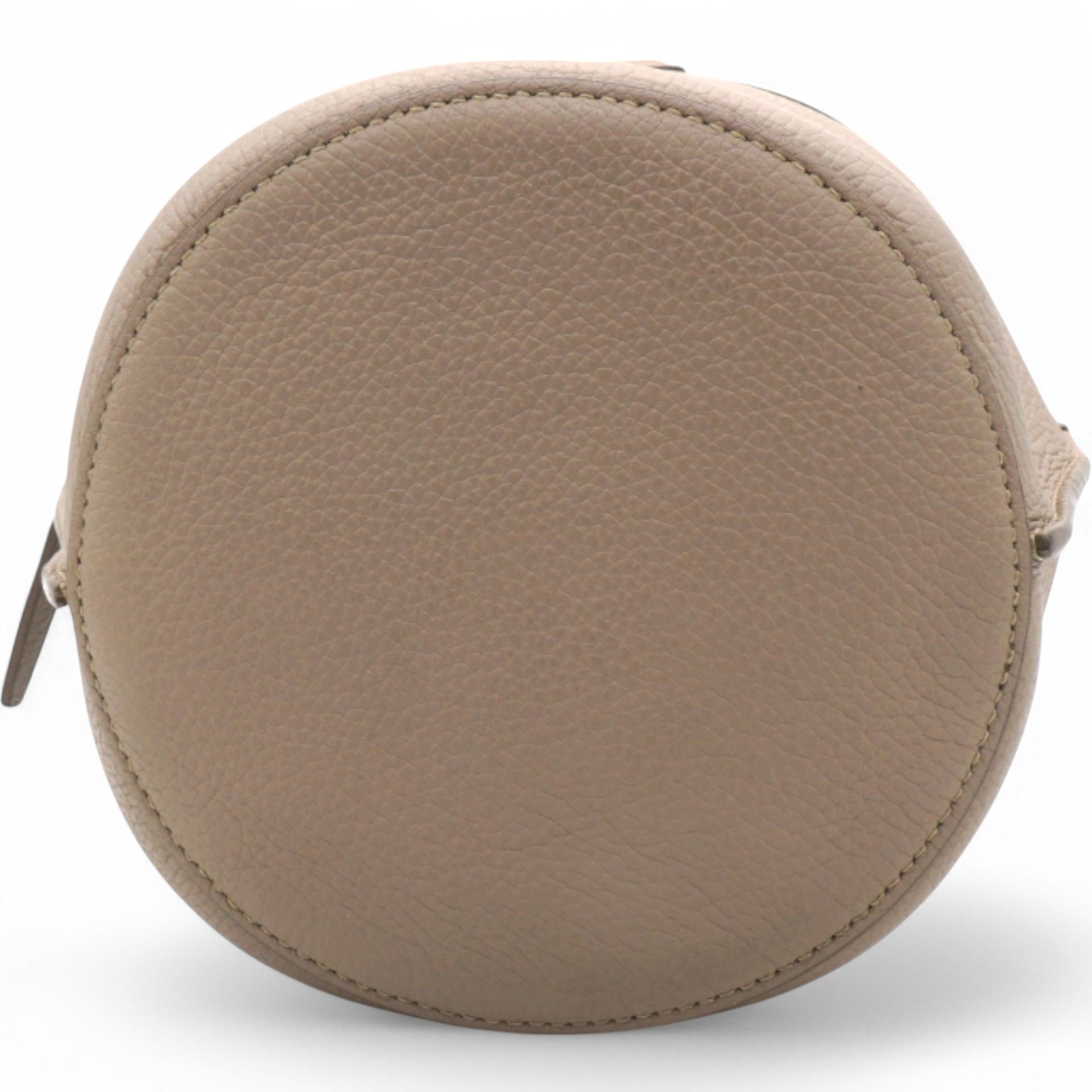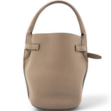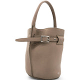 | This bag is crafted of leather in light taupe.This bag features an adjustable leather shoulder strap, a leather handle, a belt bucket to tighten the bag and silver-tone hardware.The interior is suede lining. |